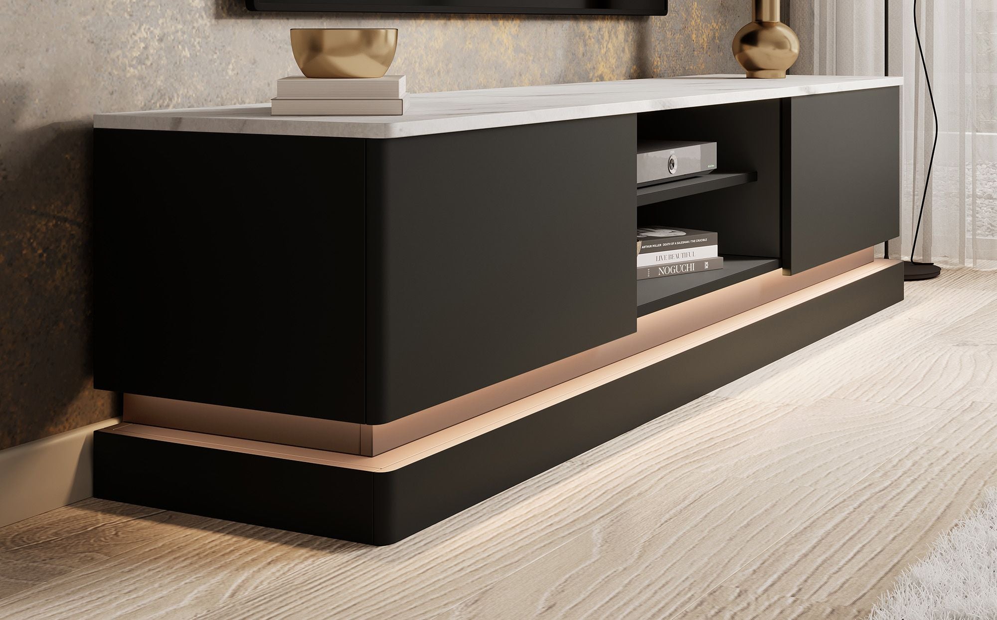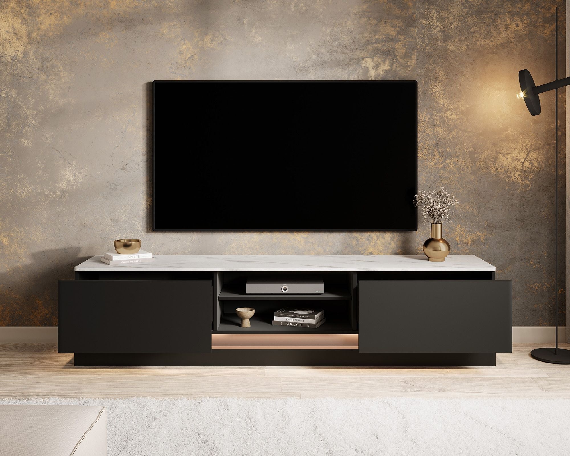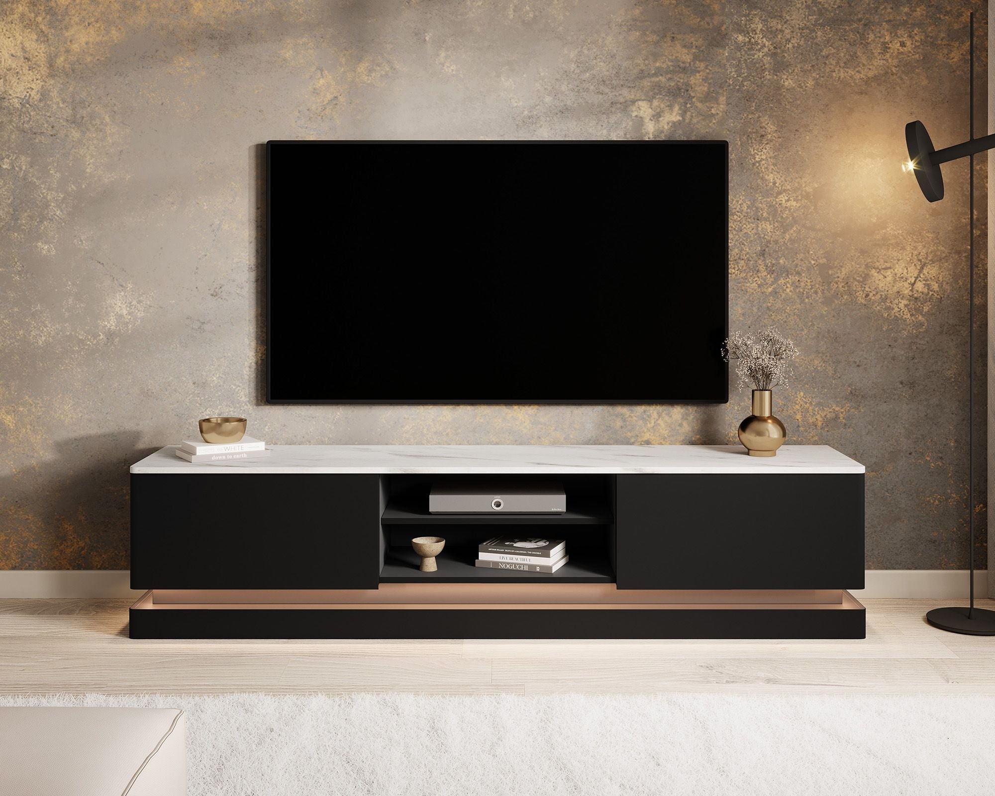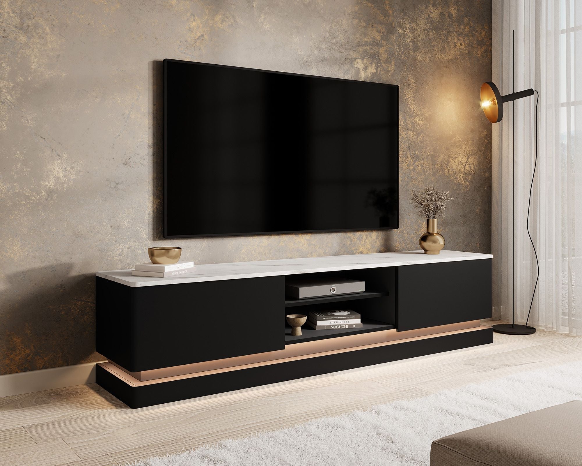 Meubella - TV-Meubel Daley - Zwart - 190 cm - Met LED