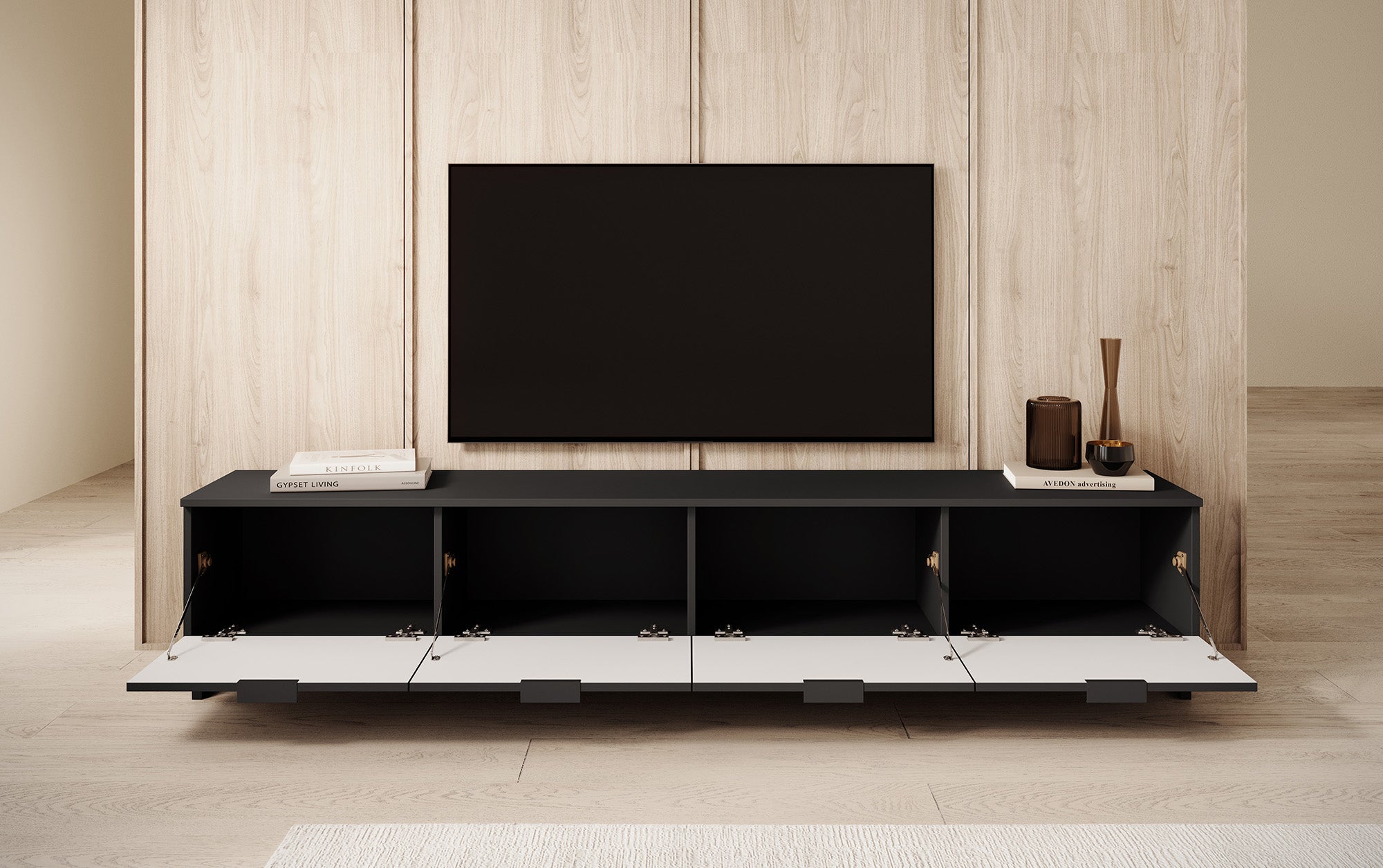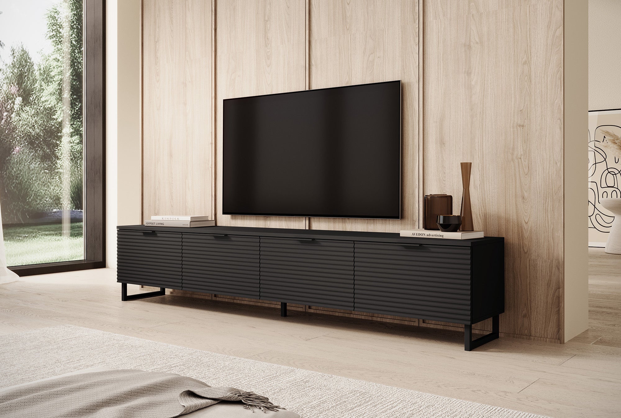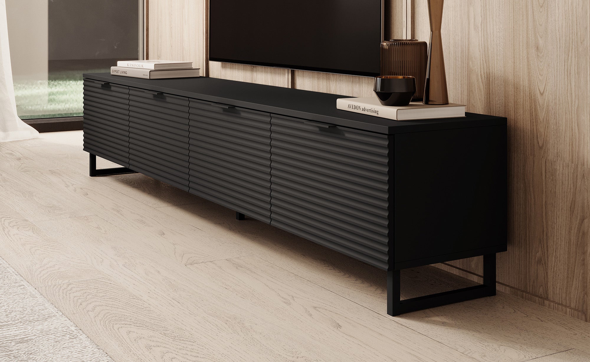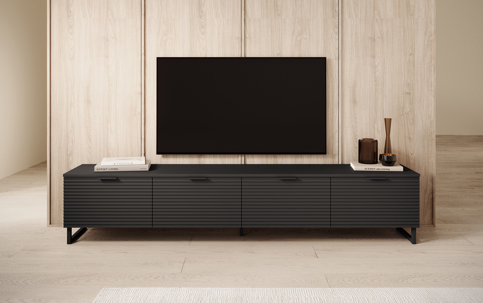 Meubella - TV-Meubel Delgado - Mat zwart - 200 cm