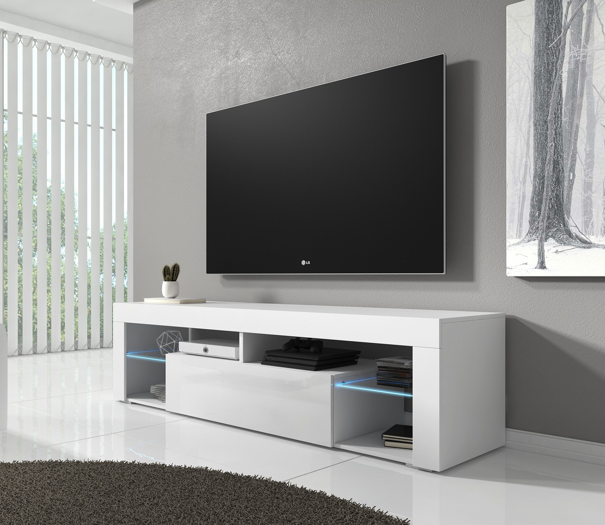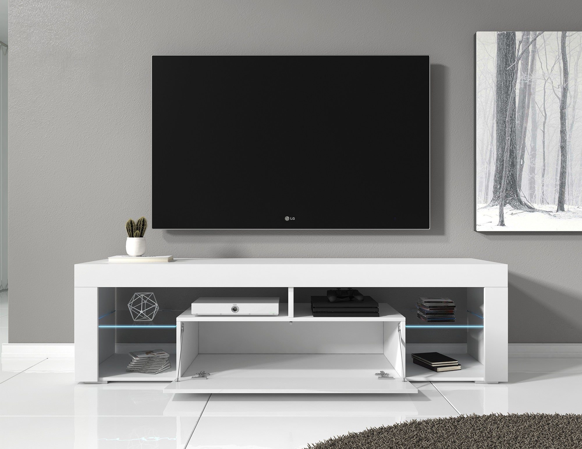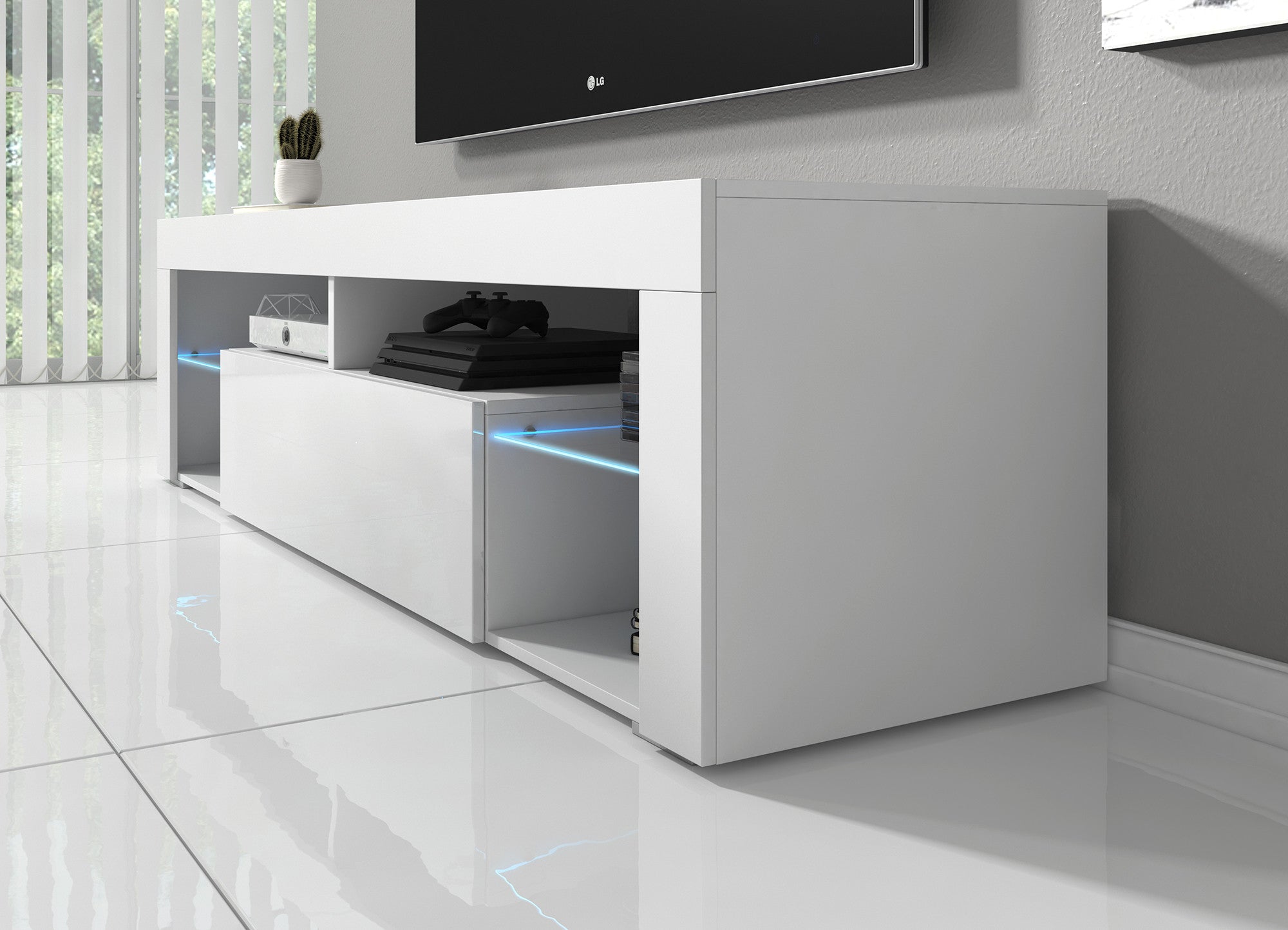 Meubella - TV-Meubel Fancy - Wit - 140 cm - Met LED