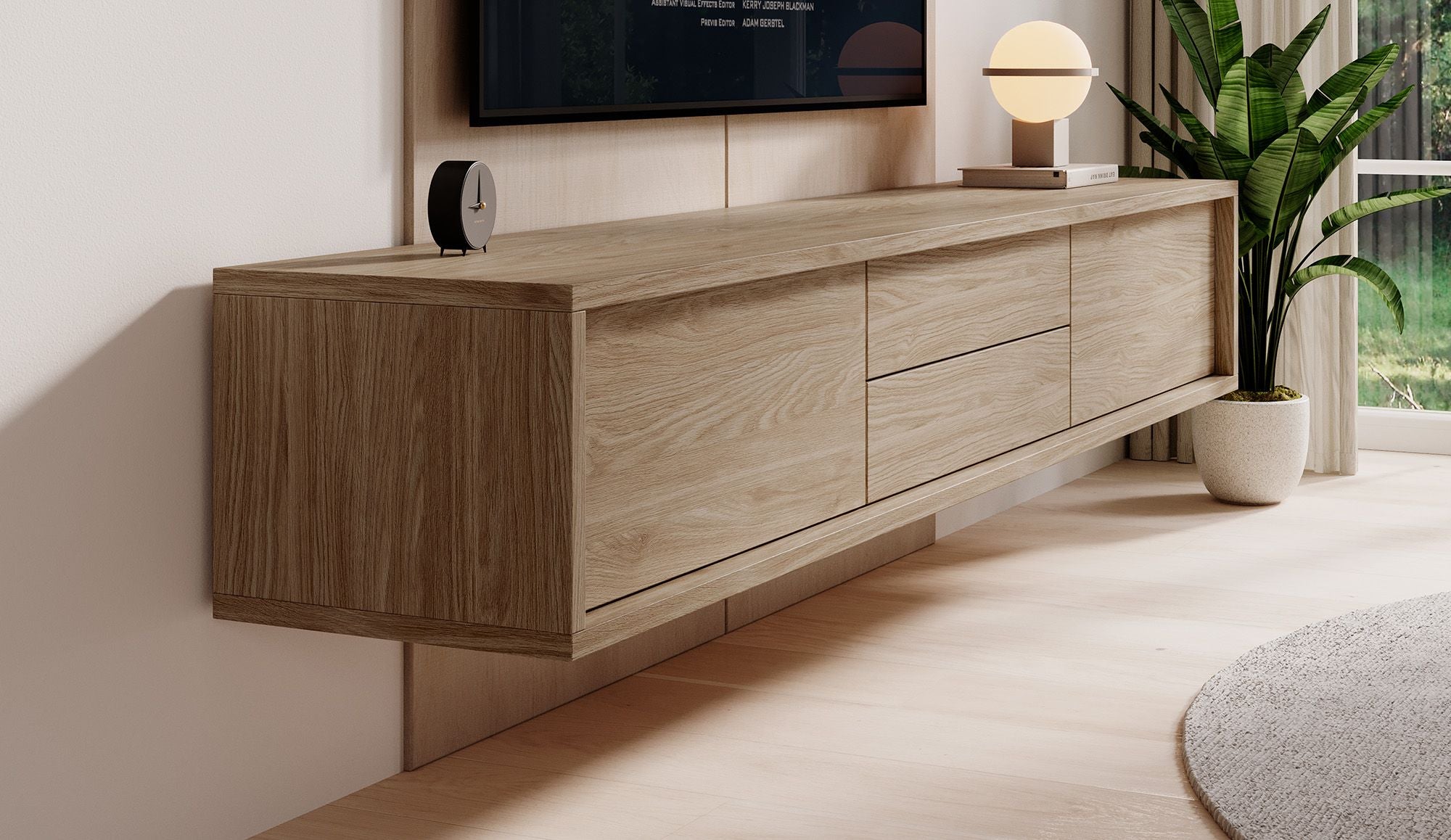 Meubella - TV-Meubel Fortunato - Eiken - 180 cm - Met lades