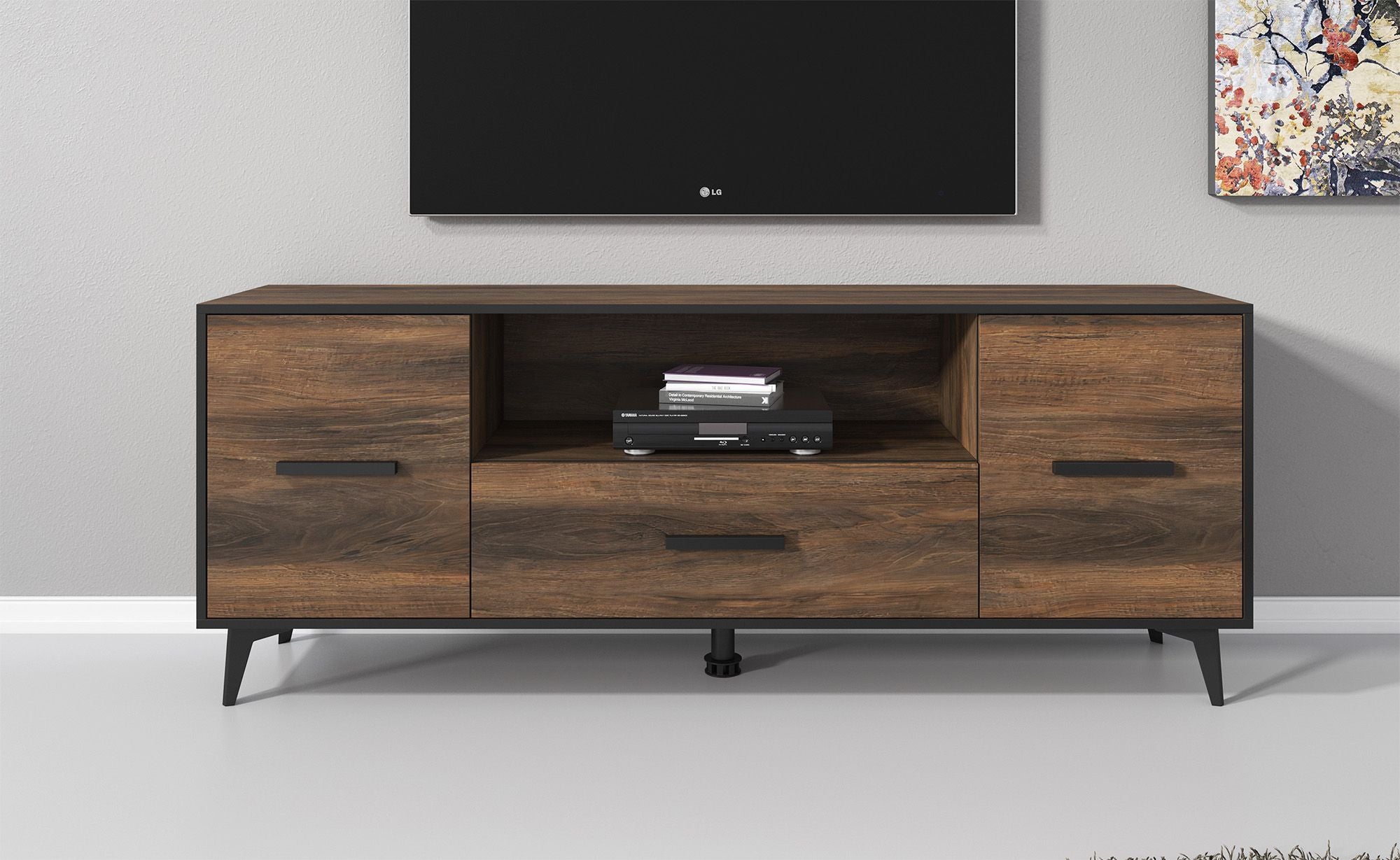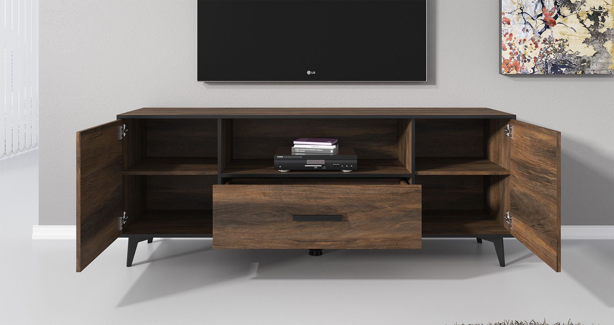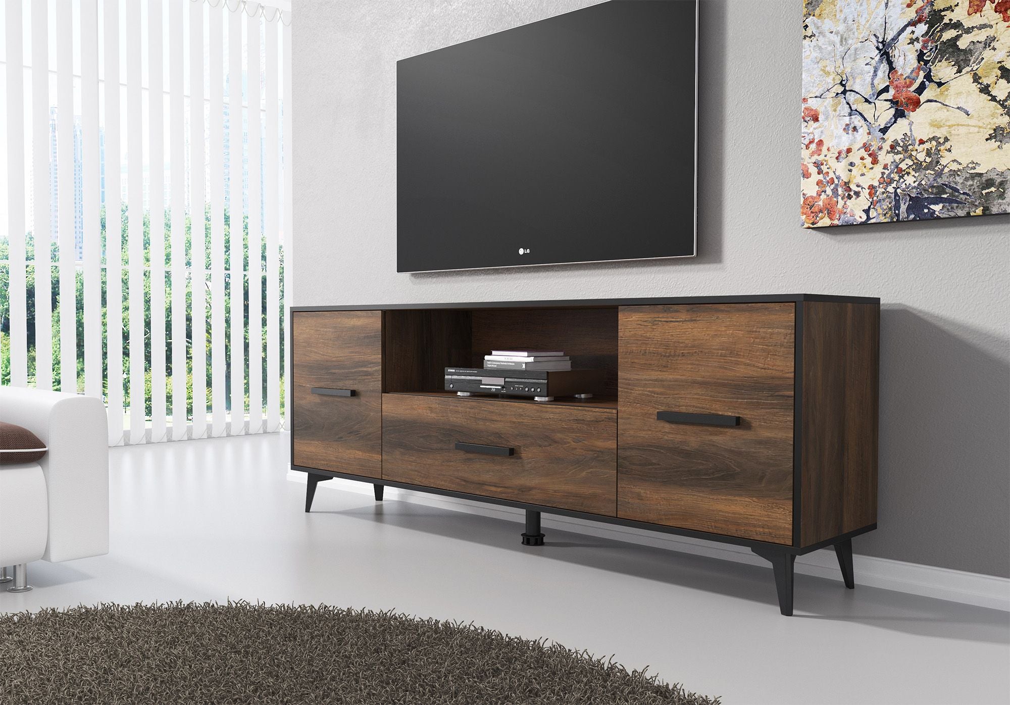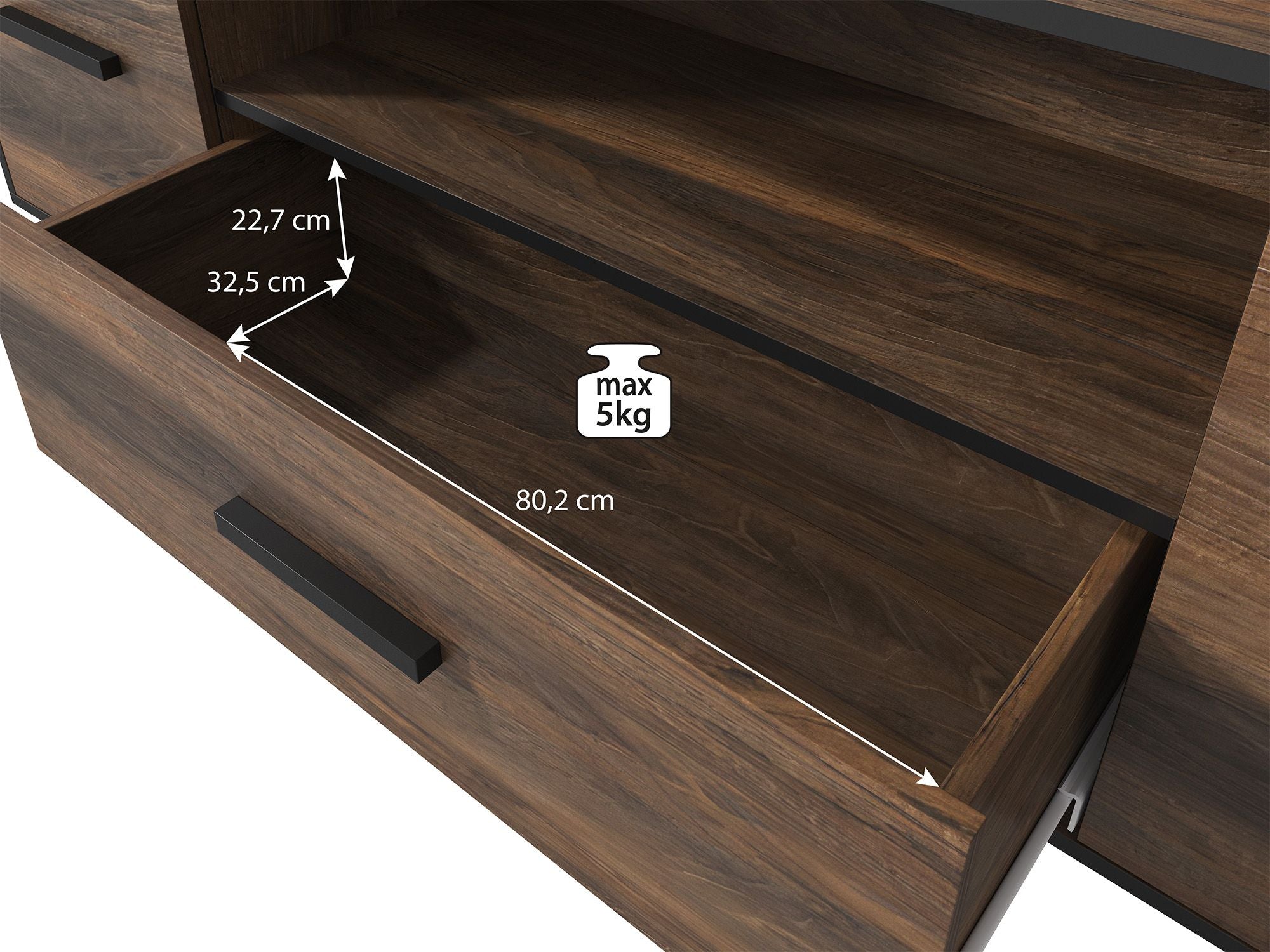 Meubella TV-Meubel Frey - Donker eiken - Zwart - 179 cm
