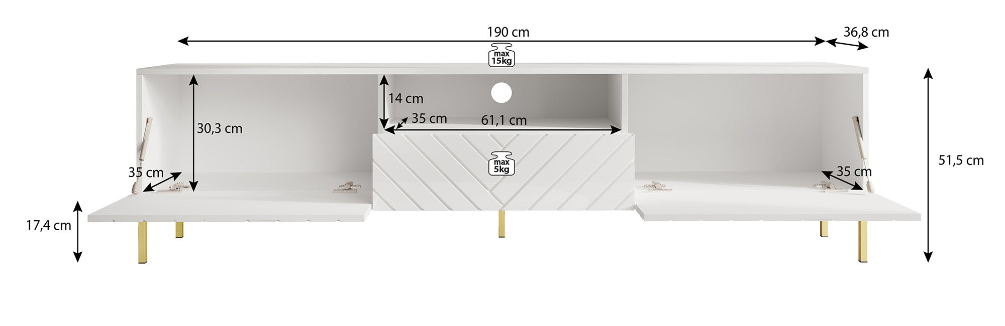 | Maat | H 52 x B 190 x D 37 cm |