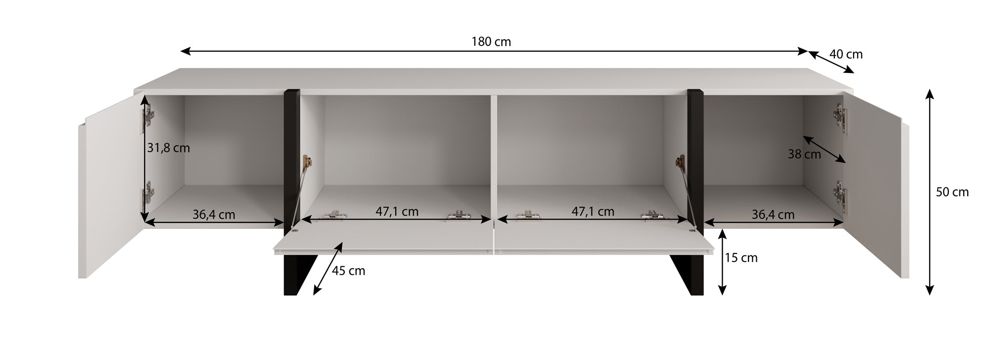 Meubella TV-Meubel Kelton - Beige - Zwart - 180 cm