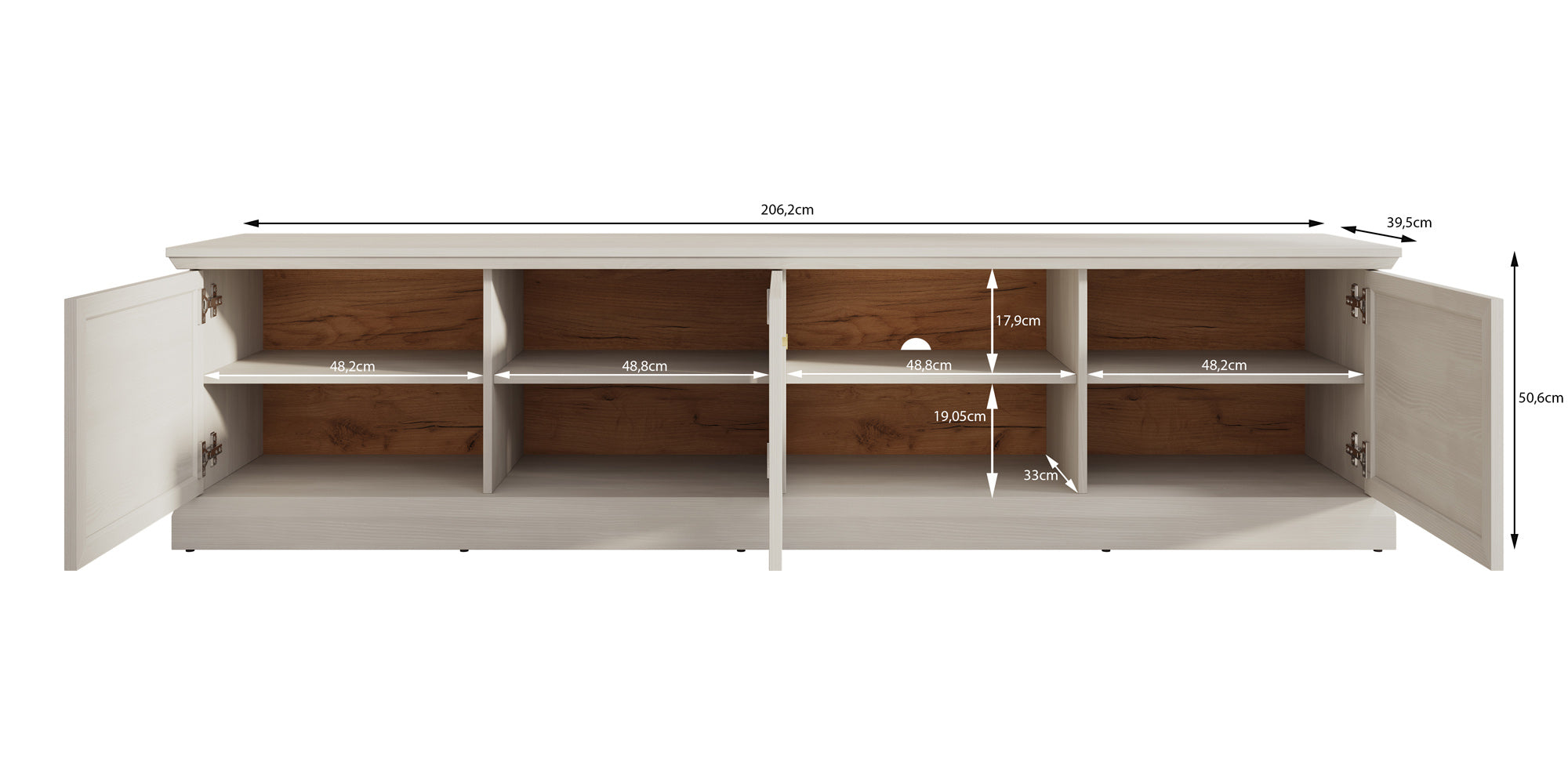 Meubella - TV-Meubel Leroy - Wit eiken - 206 cm