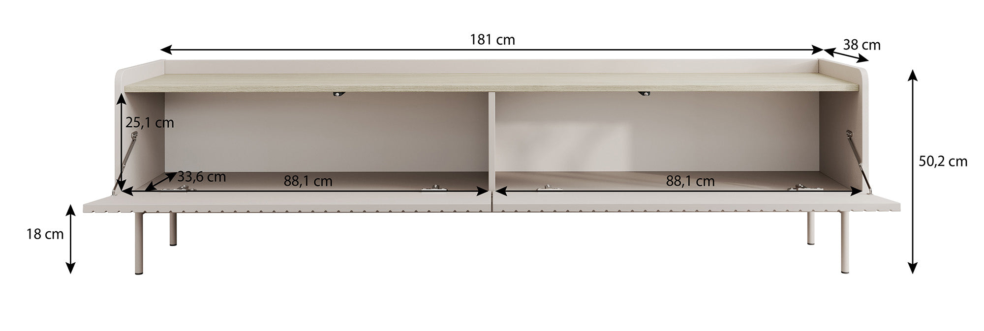 | Maat | H 50 x B 181 x D 38 cm |