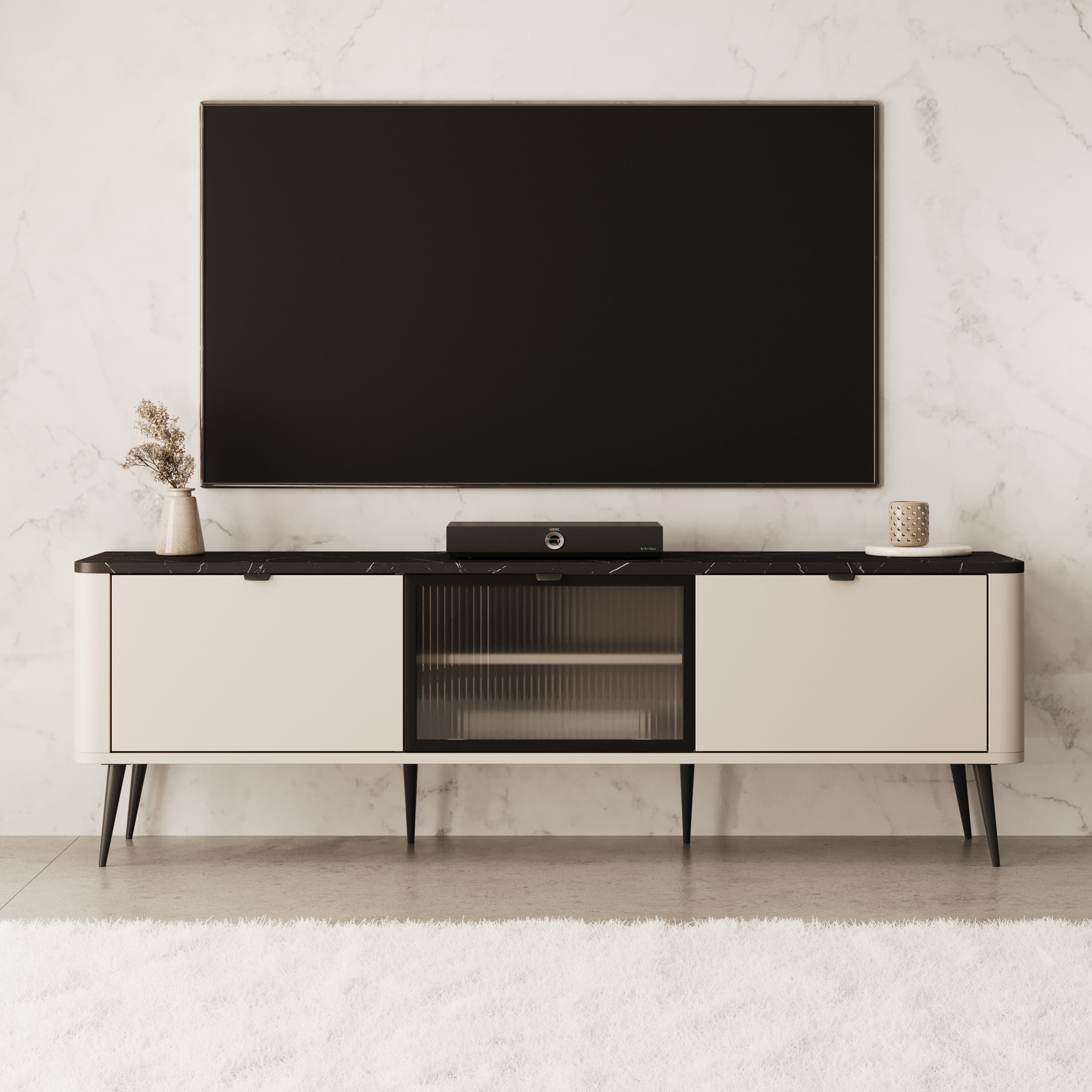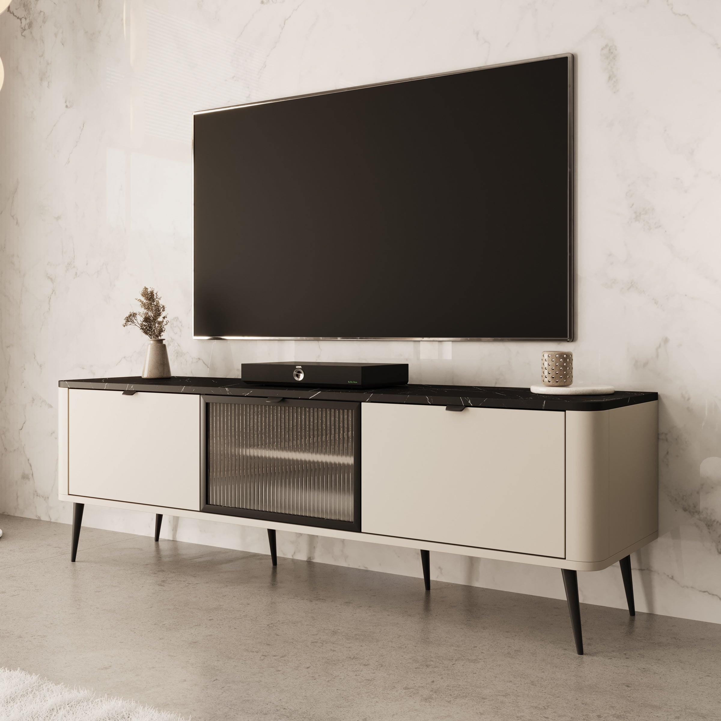 Meubella - TV-Meubel Mace - Beige - 160 cm - Met glas