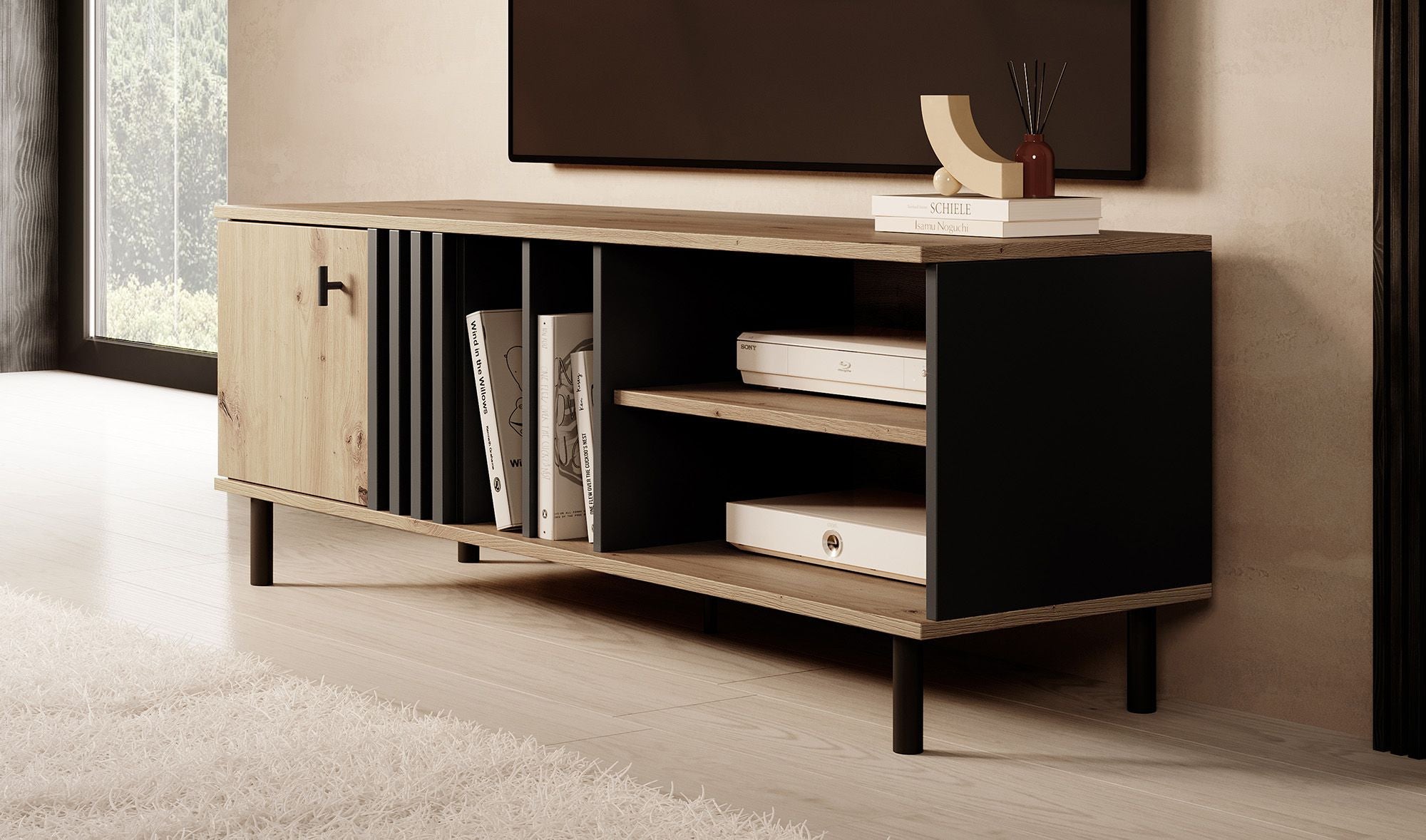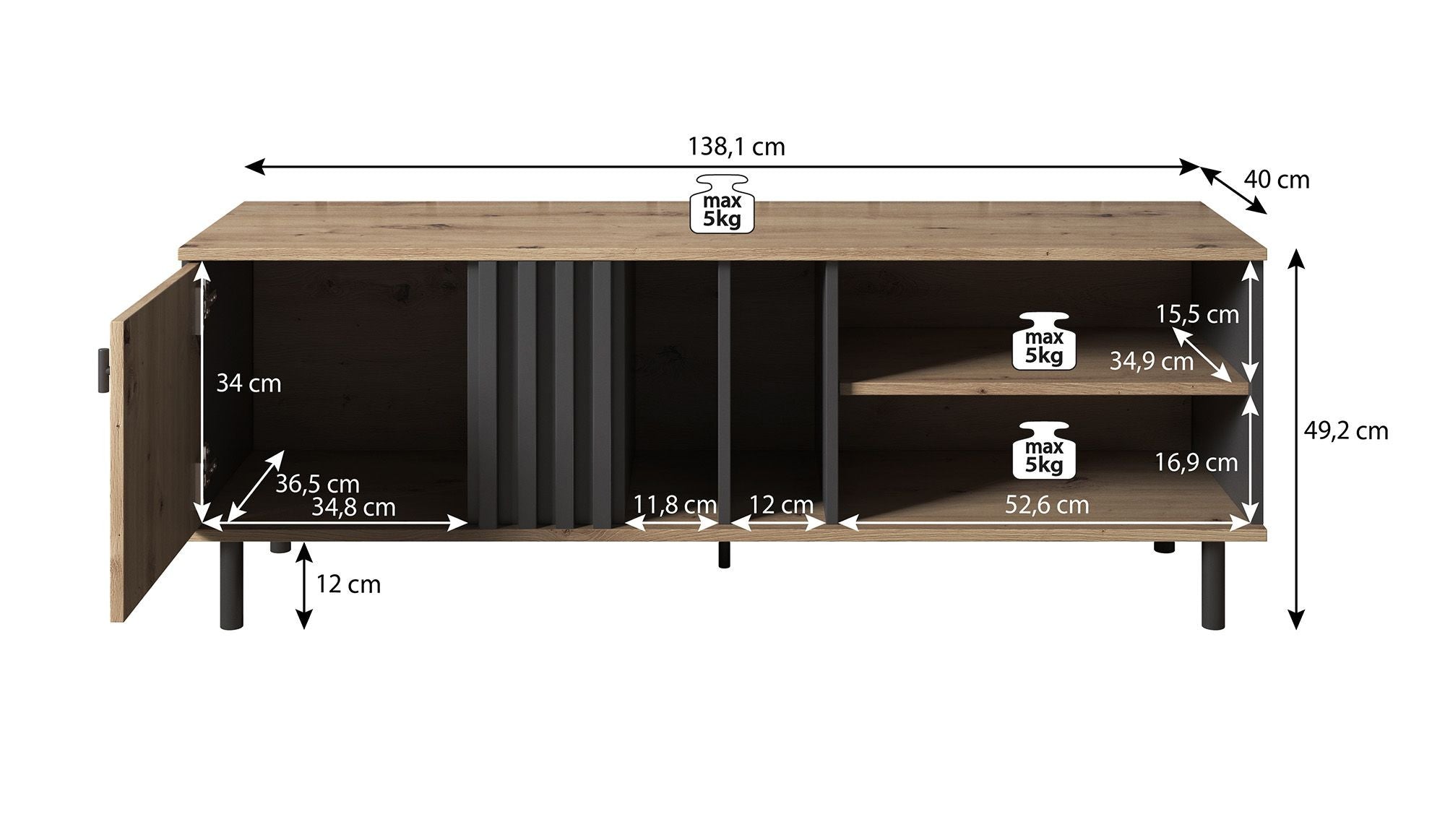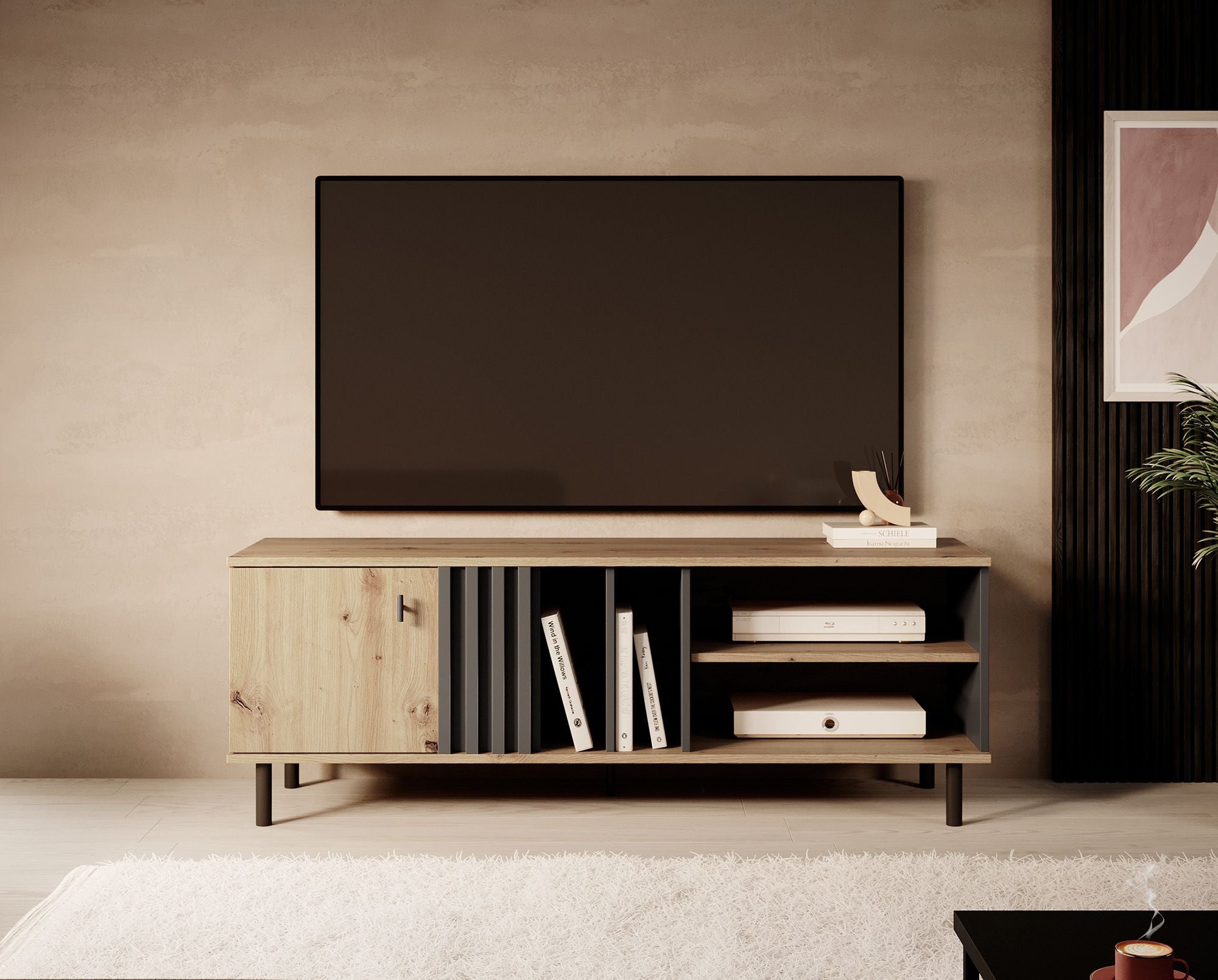 Meubella TV-Meubel Marcos - Eiken - Antraciet - 138 cm