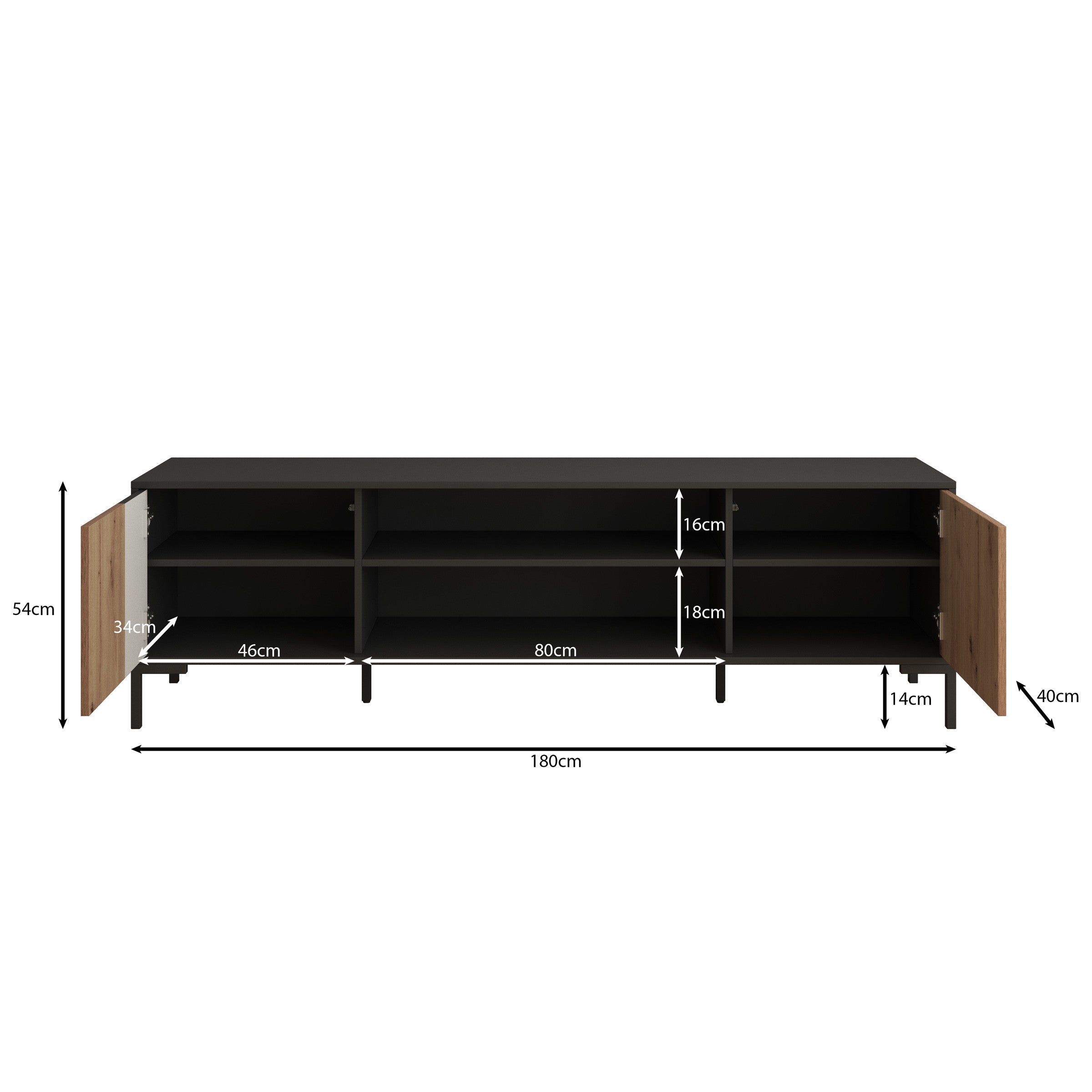 Meubella - TV-Meubel Molina - Zwart - 180 cm