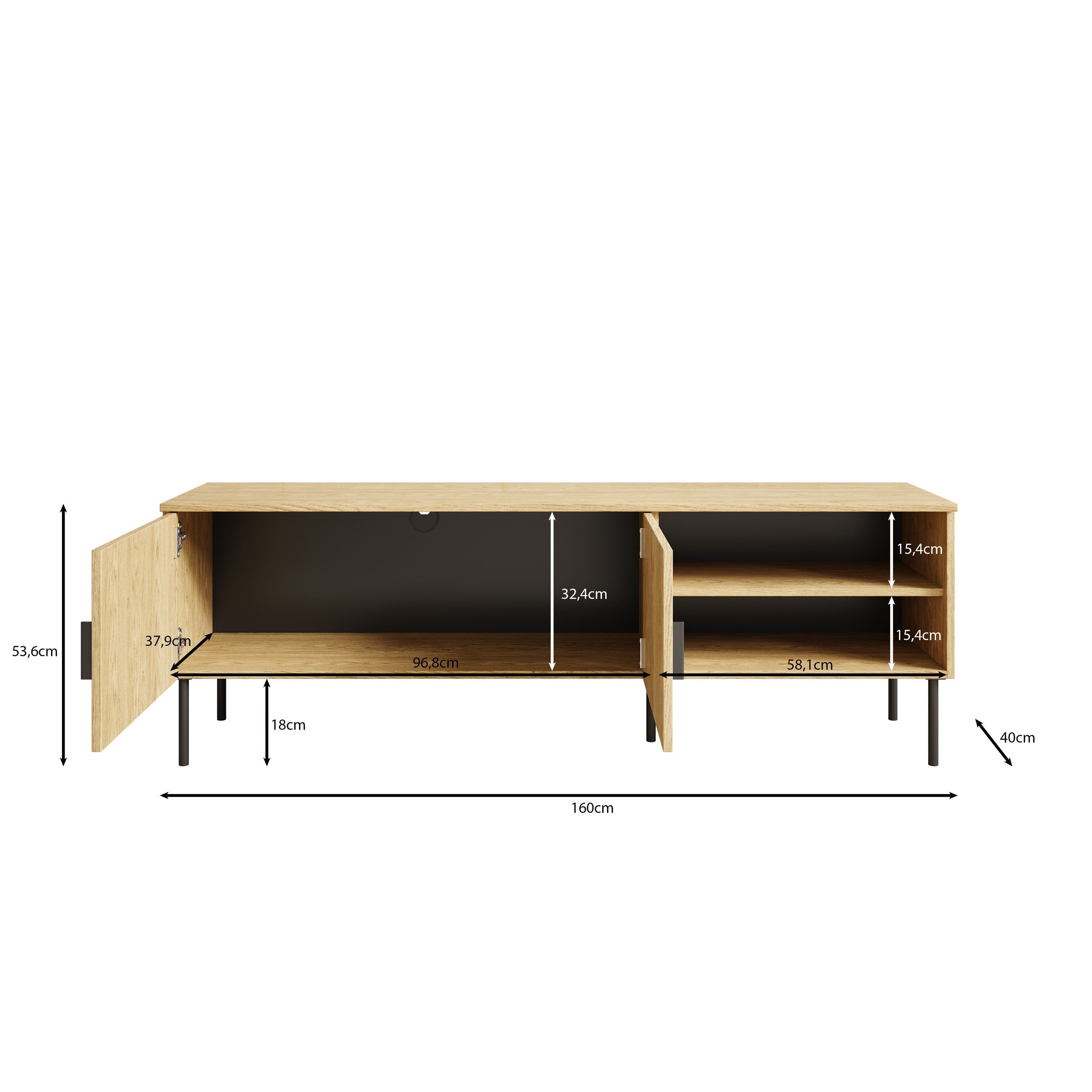 Meubella - TV-Meubel Monor - Zwart eiken - 160 cm