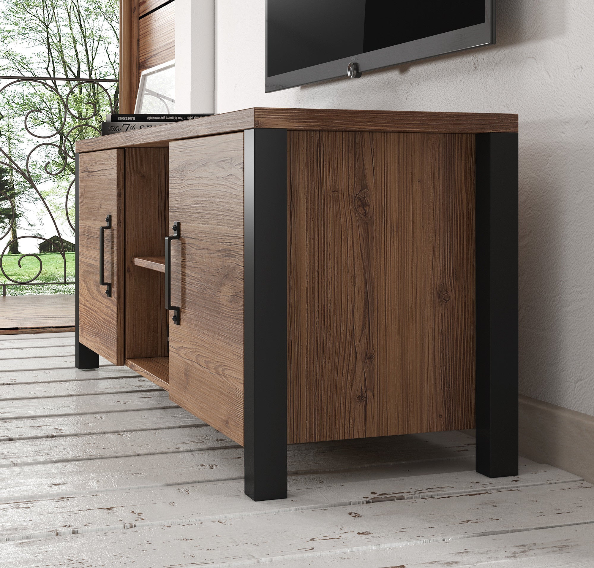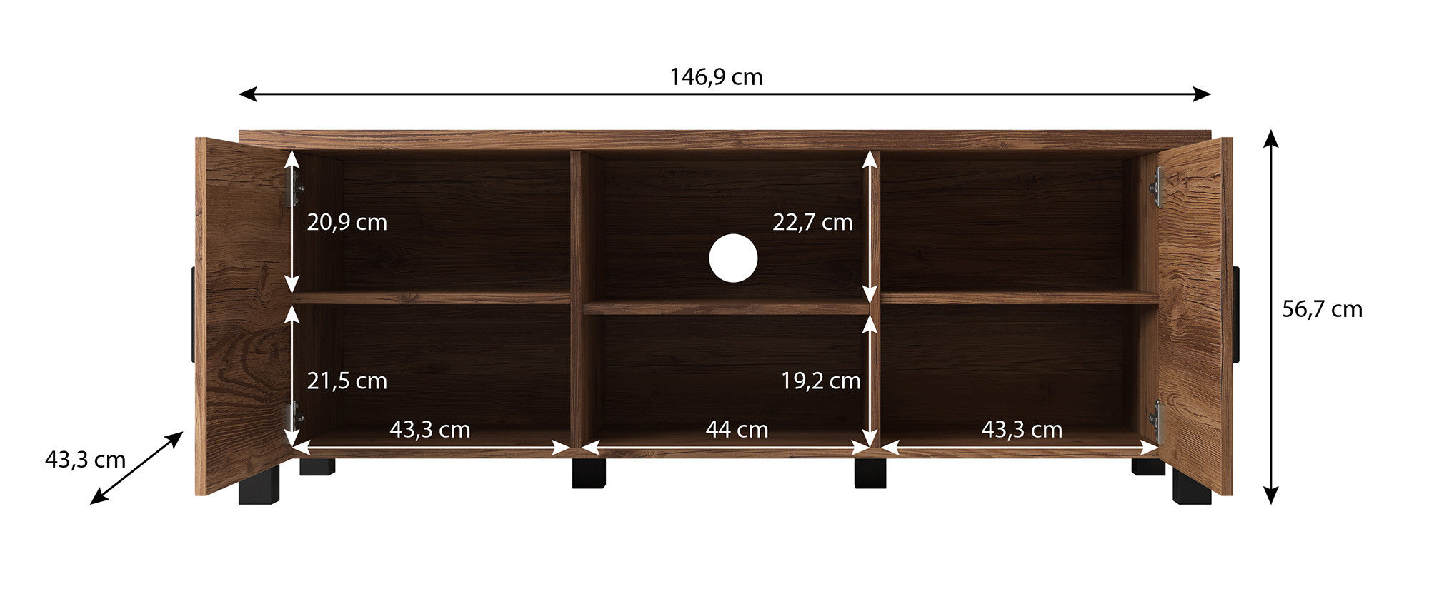 Meubella TV-Meubel Olivia - Zwart - Eiken - 147 cm