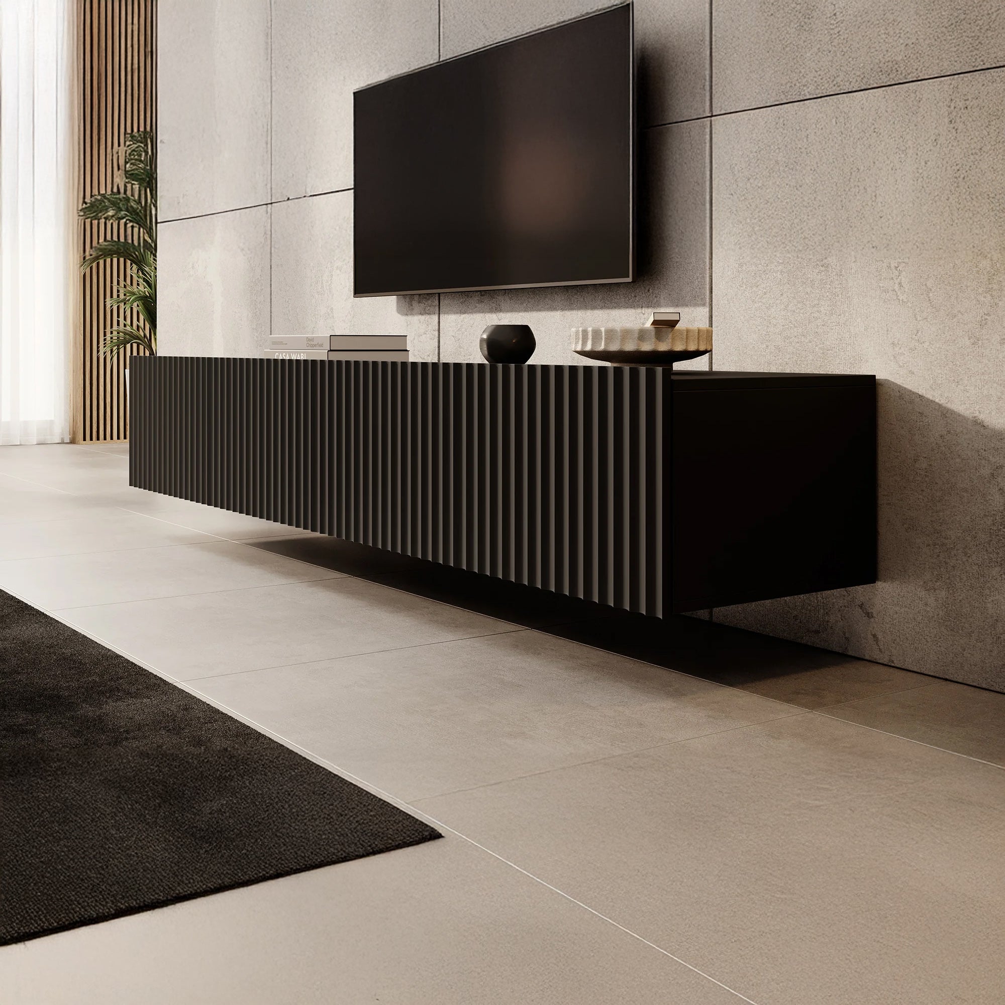 Meubella - TV-Meubel Pepinos - Mat zwart - 200 cm