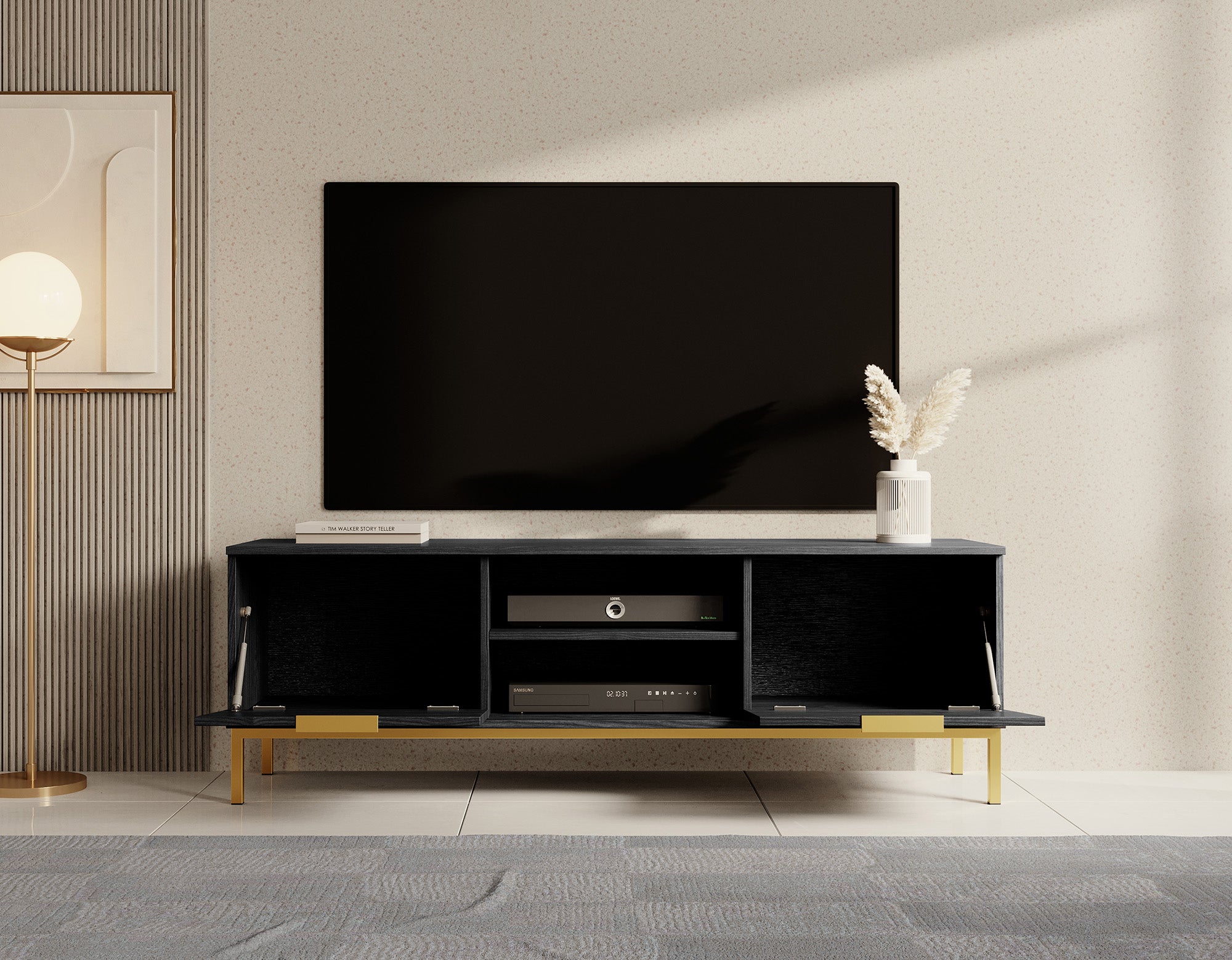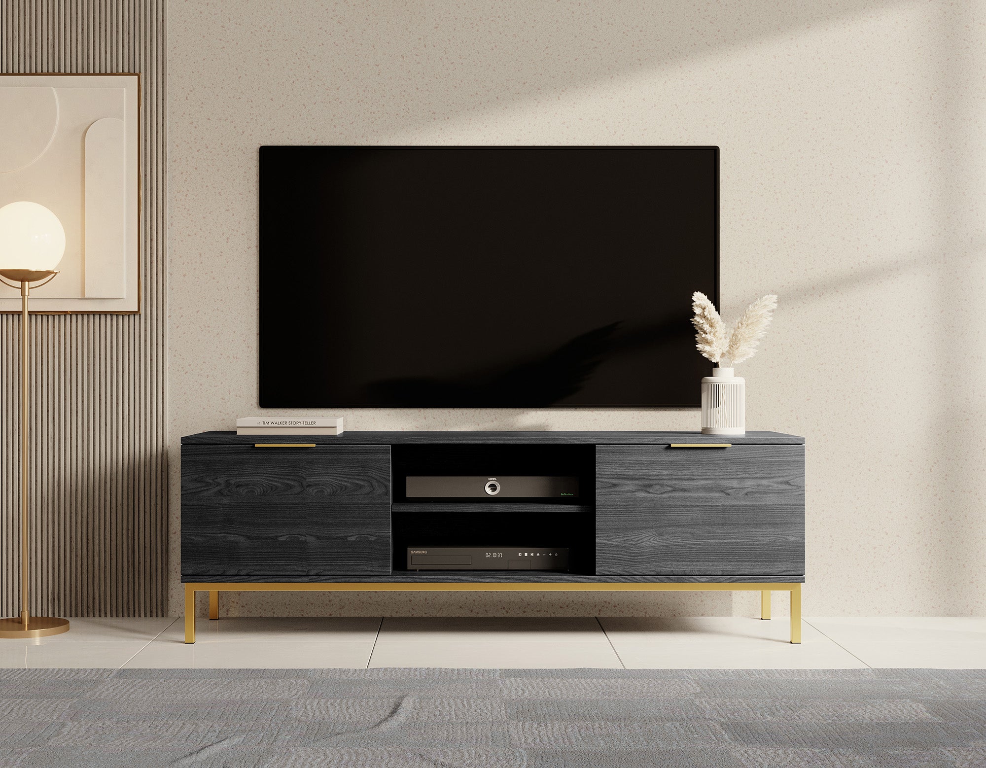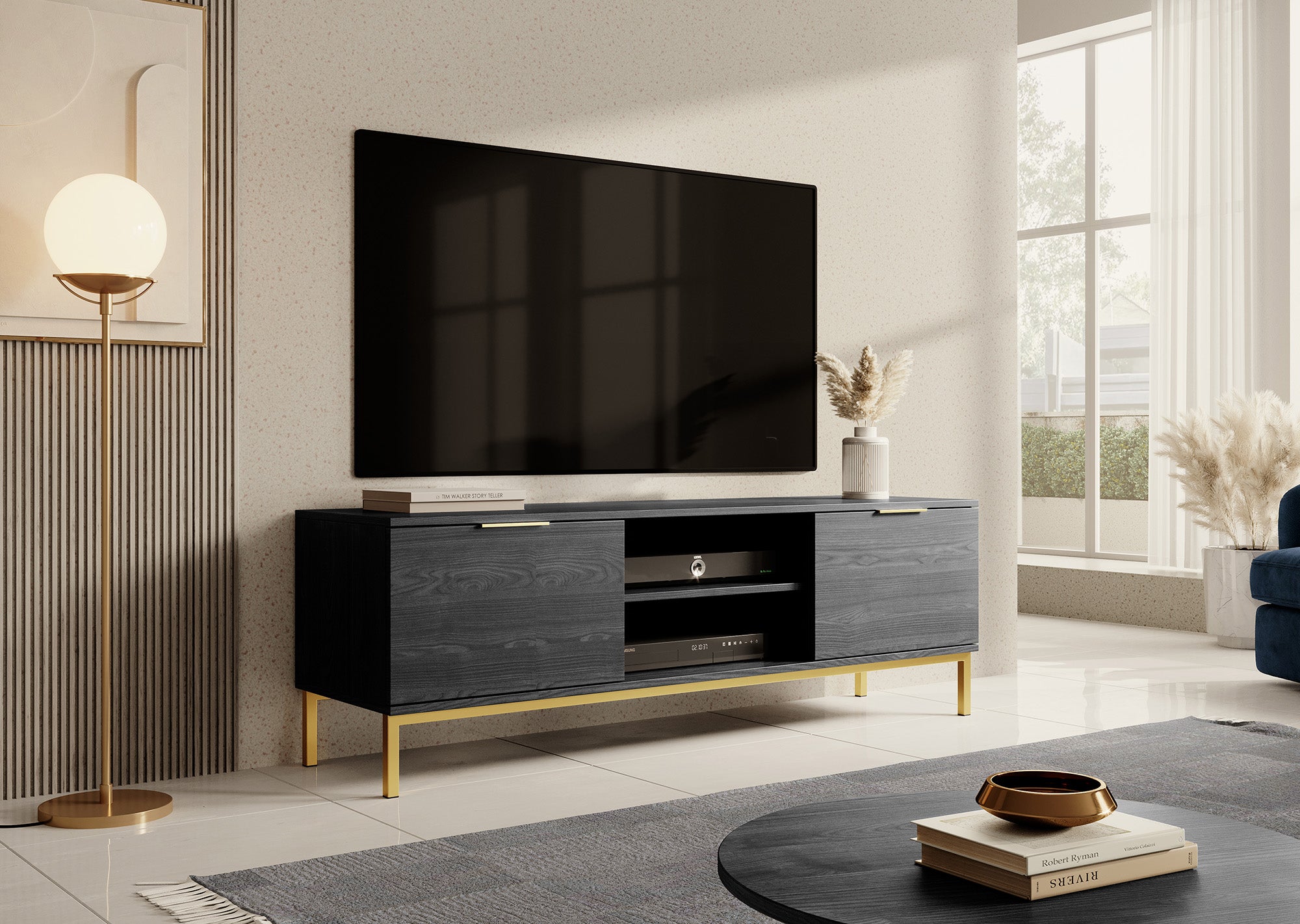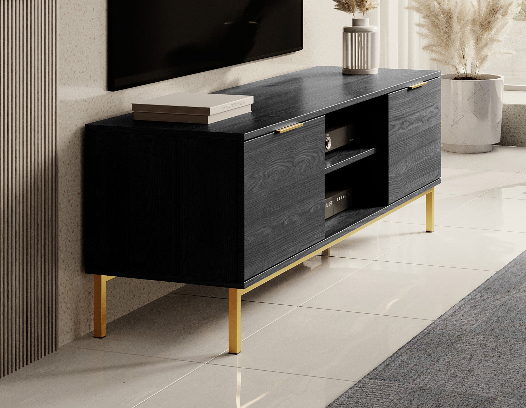 Meubella TV-Meubel Ponchi - Zwart eiken - 150 cm