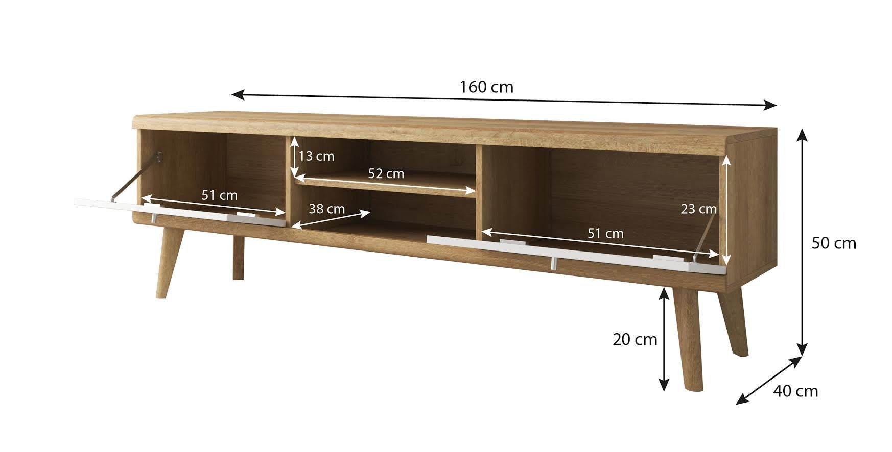 Meubella TV-Meubel Primavera - Wit - Licht eiken - 160 cm