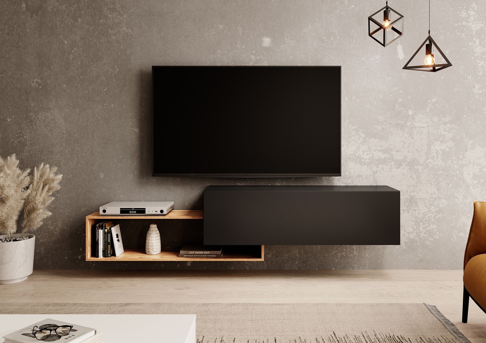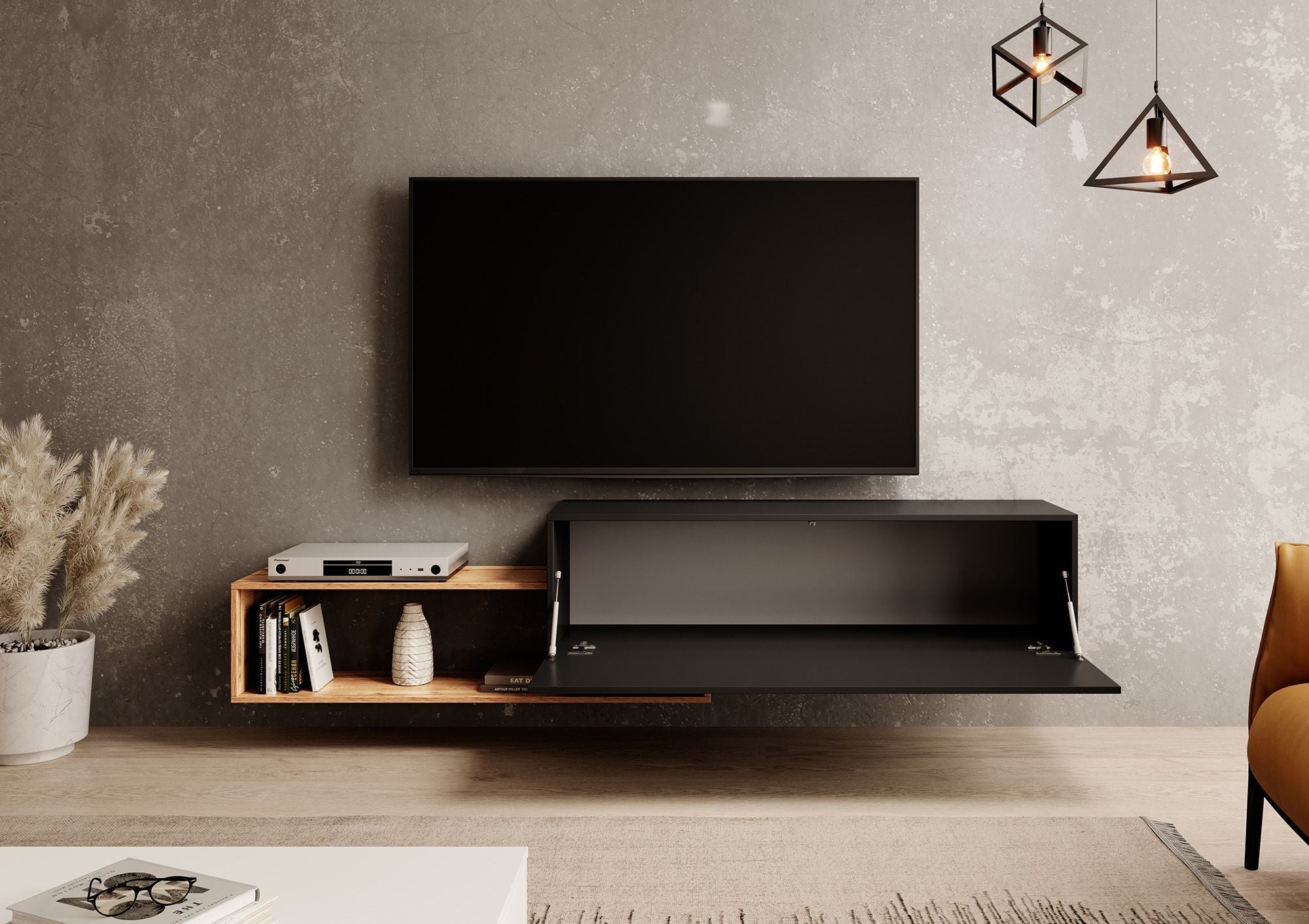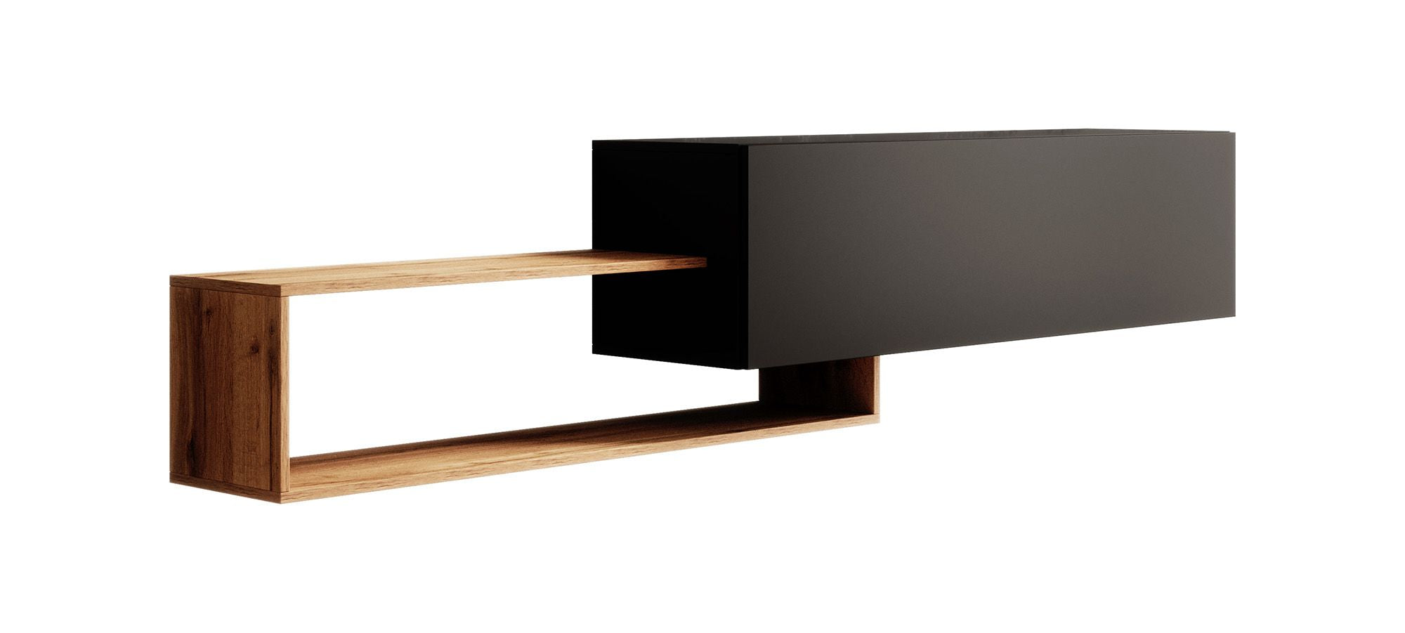 Meubella - TV-Meubel Valdix - Mat zwart - Eiken - 210 cm