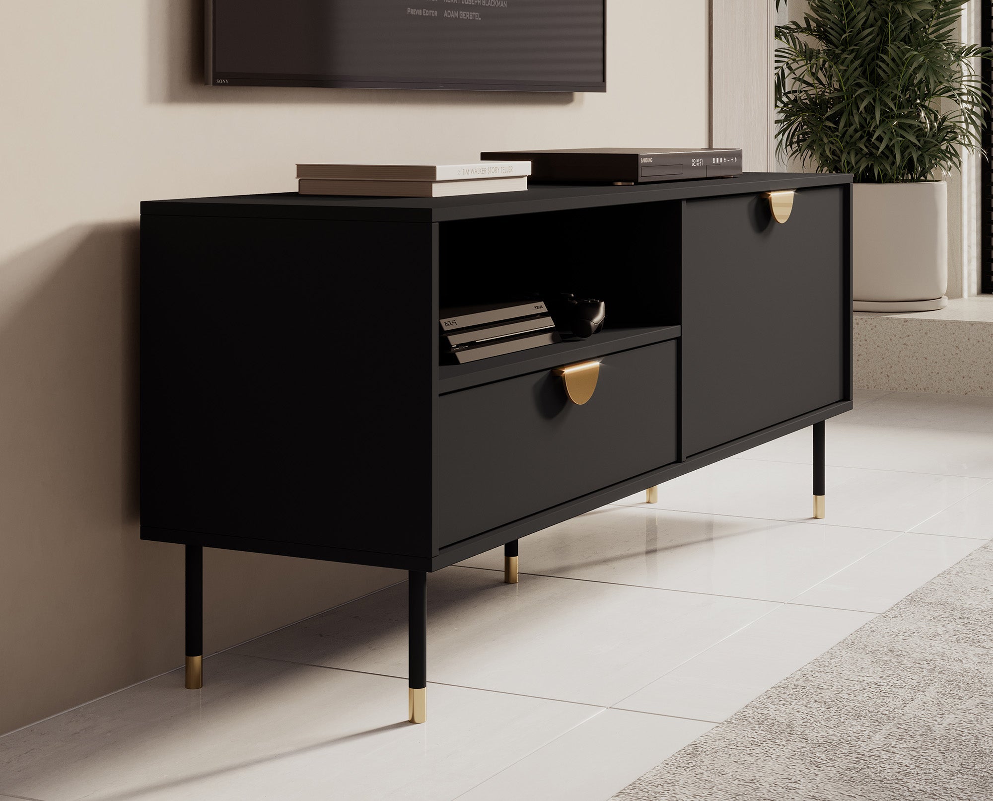 Meubella - TV-Meubel Veerle - Zwart - 140 cm