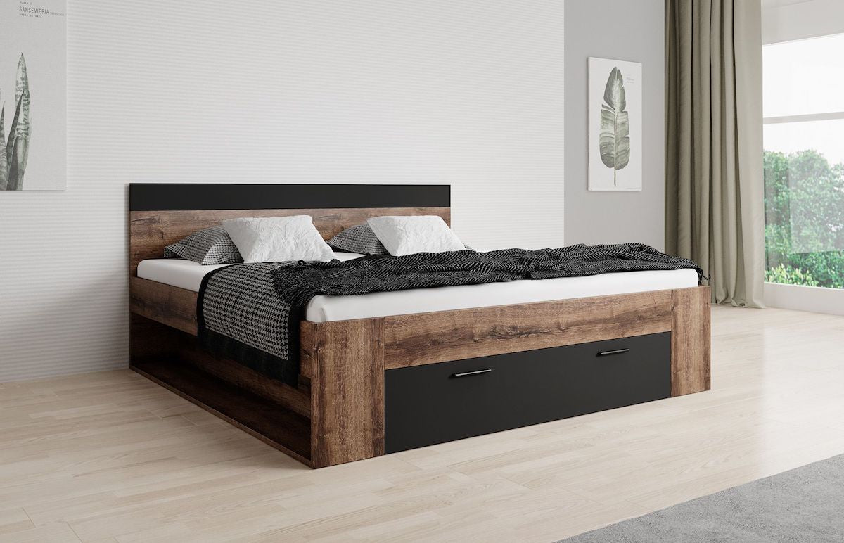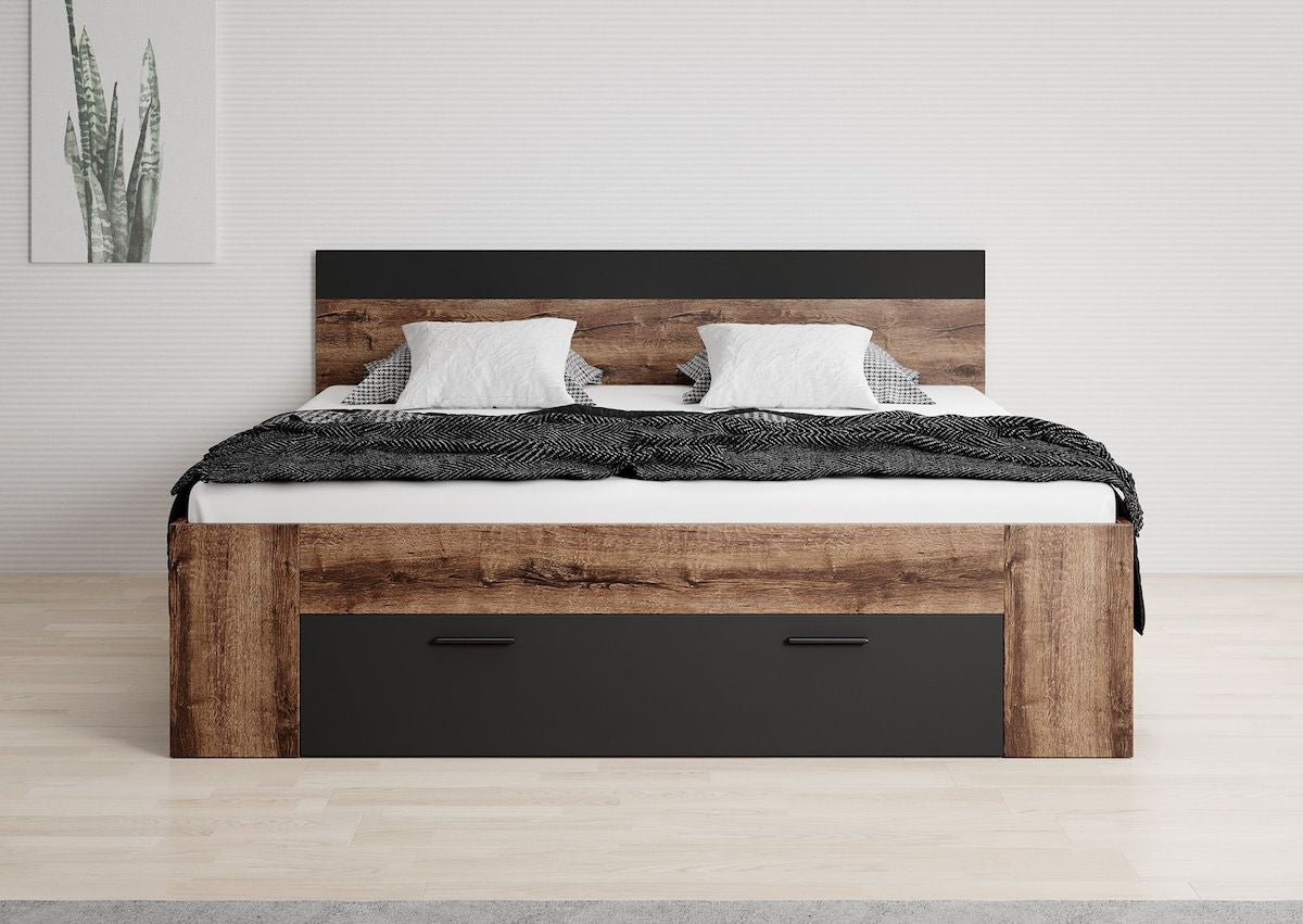 Meubella - Tweepersoonsbed Brown - Zwart - Eiken - 180x200 cm