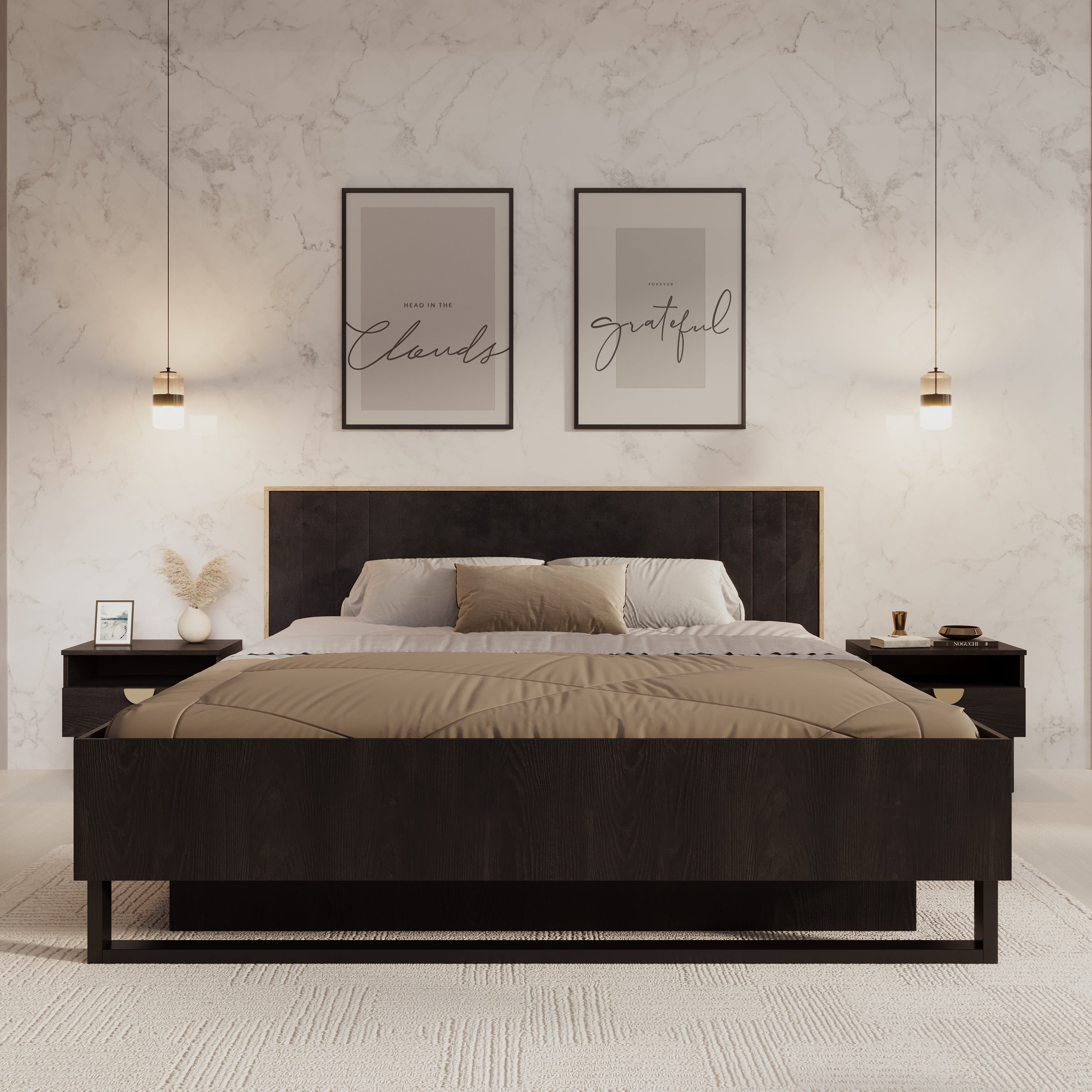 Meubella Tweepersoonsbed Monor - Zwart eiken - 180x200 cm - Met gaslift