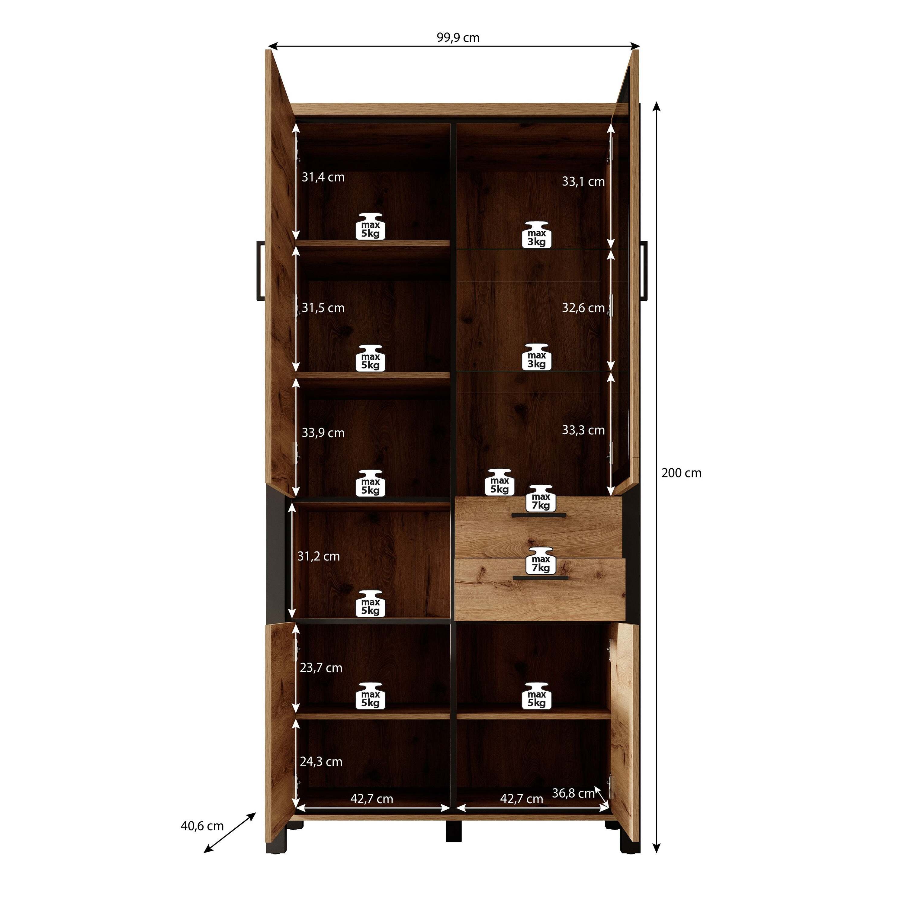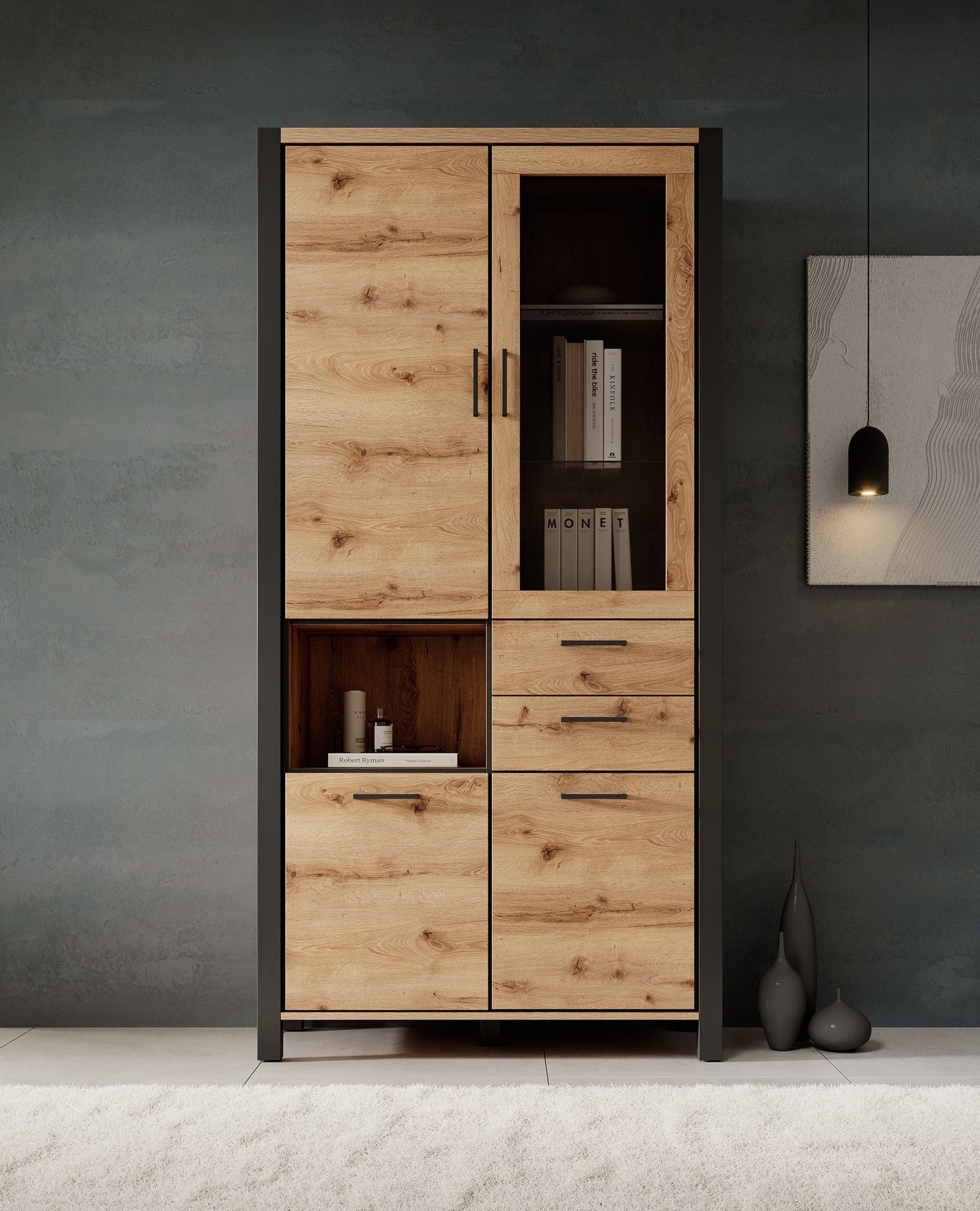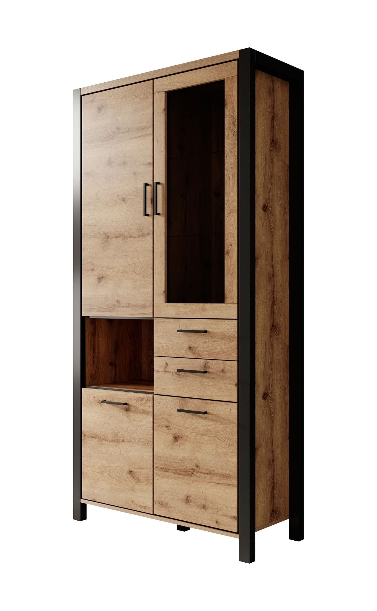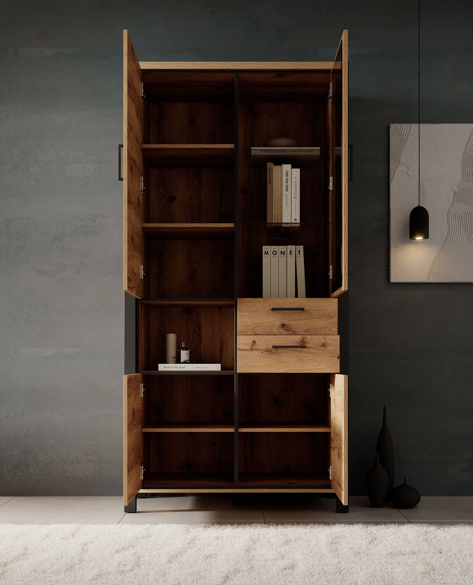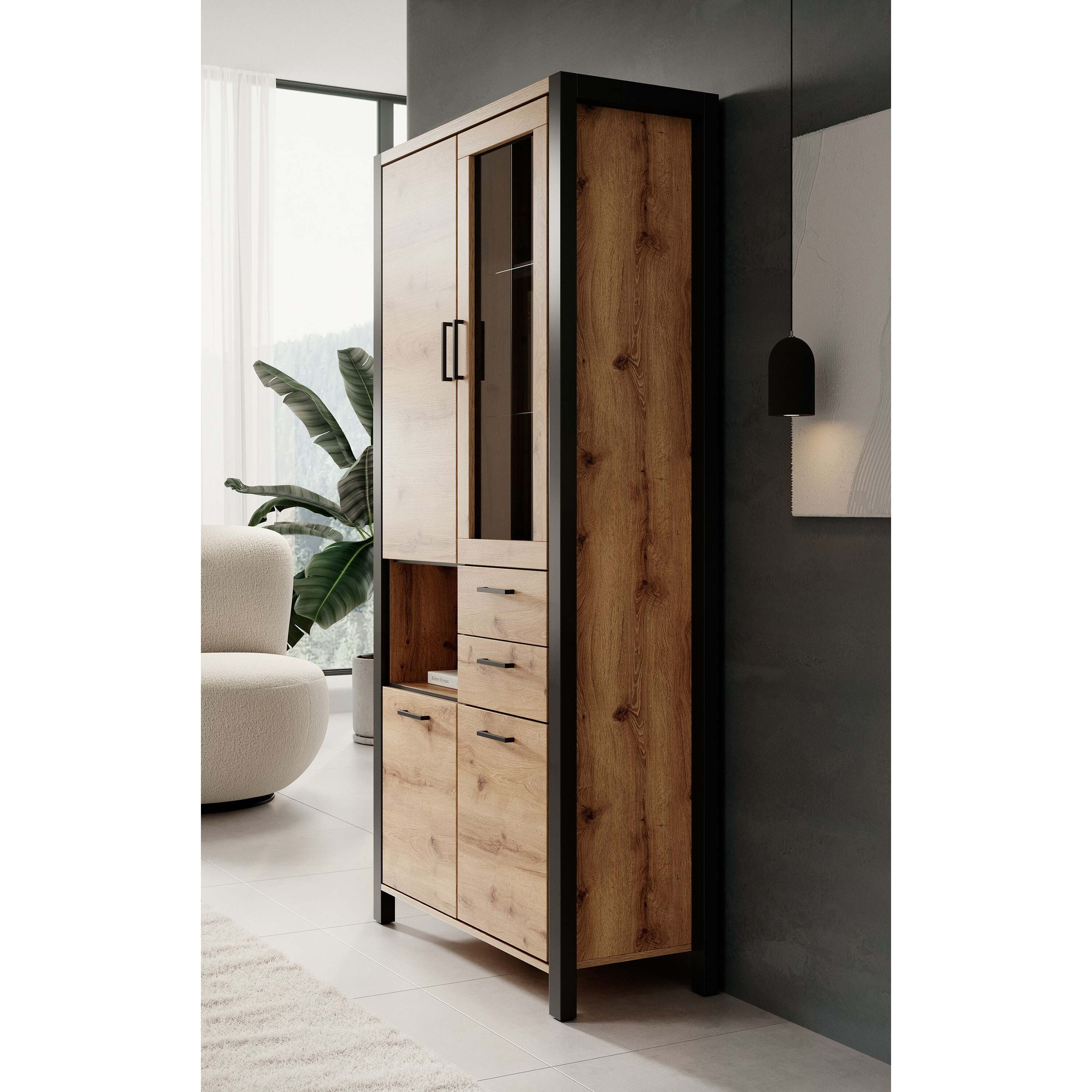 Meubella - Vitrinekast Acapulco - Eiken - Zwart - 100 cm