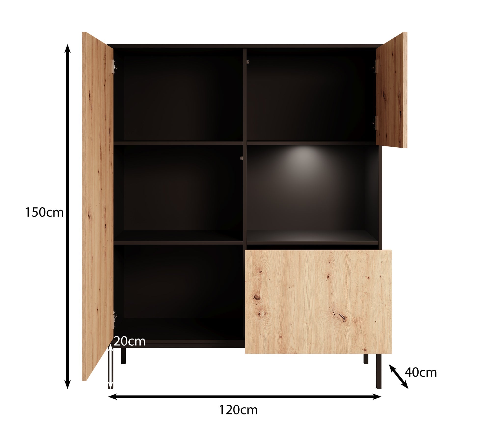 Meubella - Vitrinekast Lagos - Zwart - 120 cm