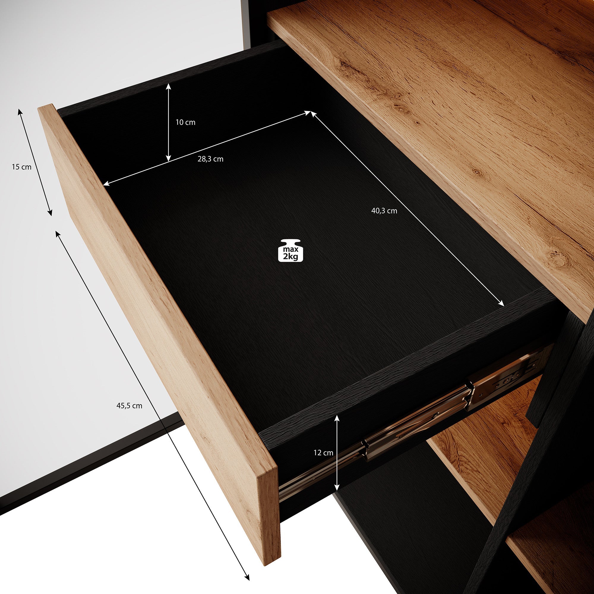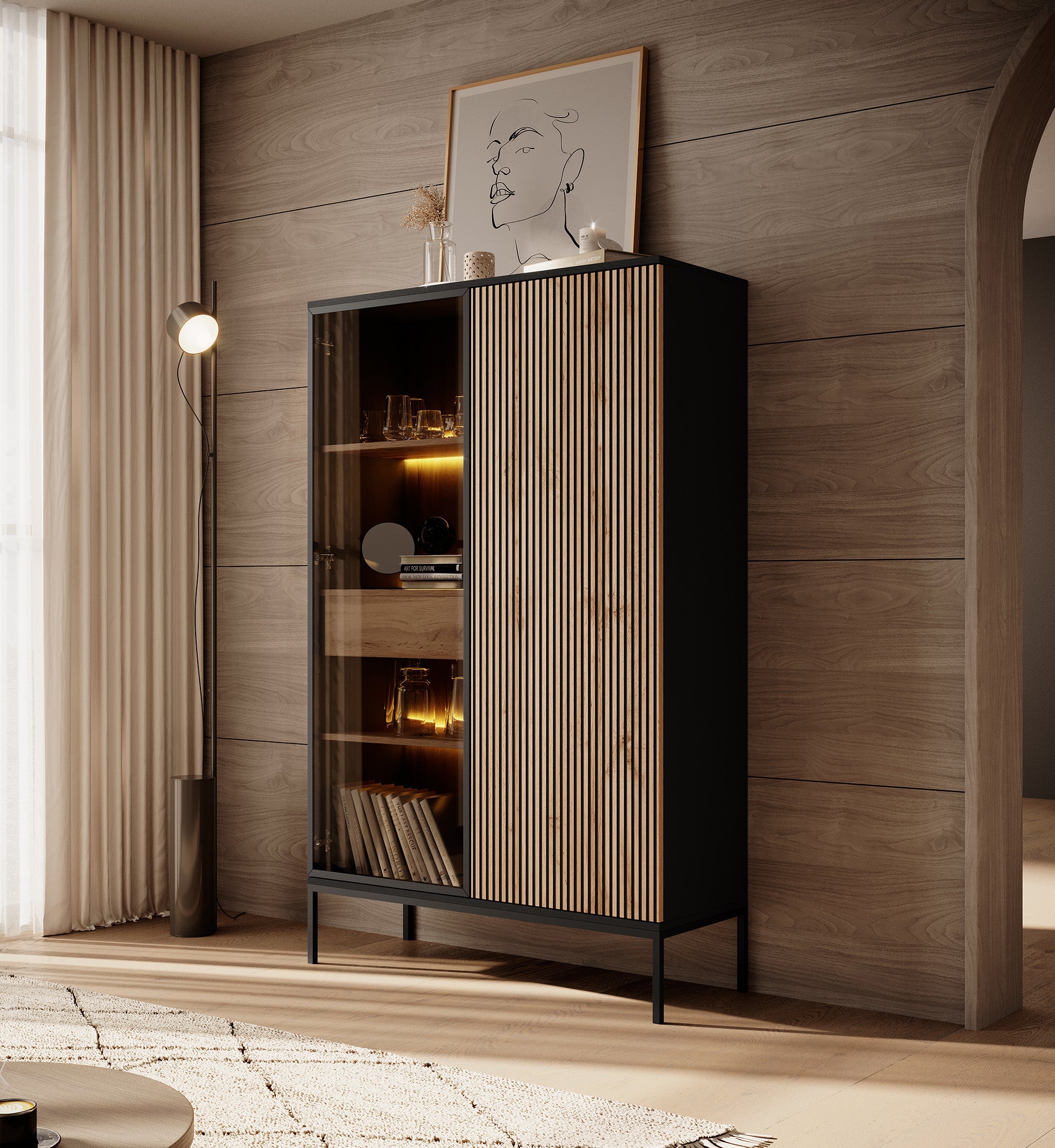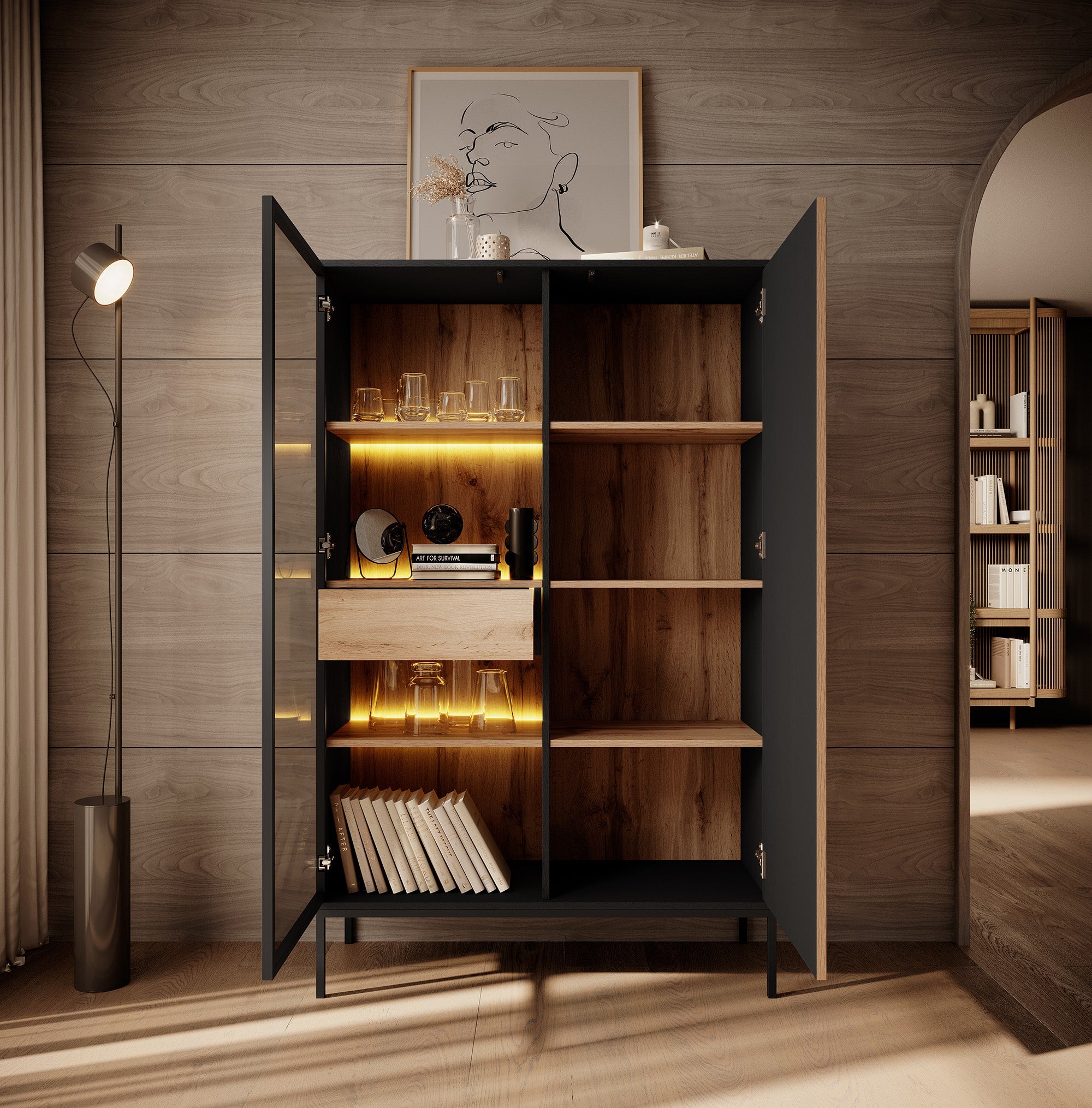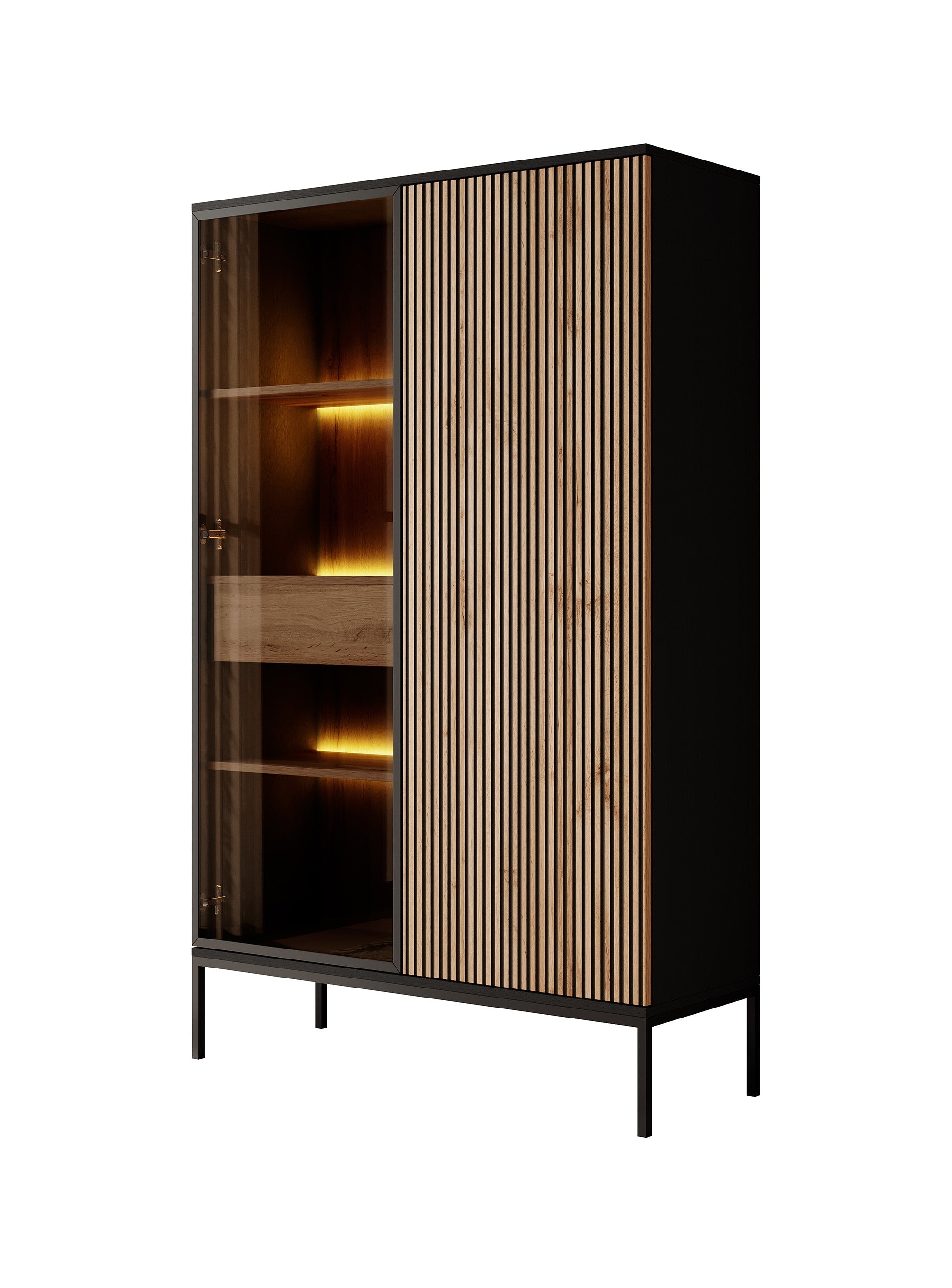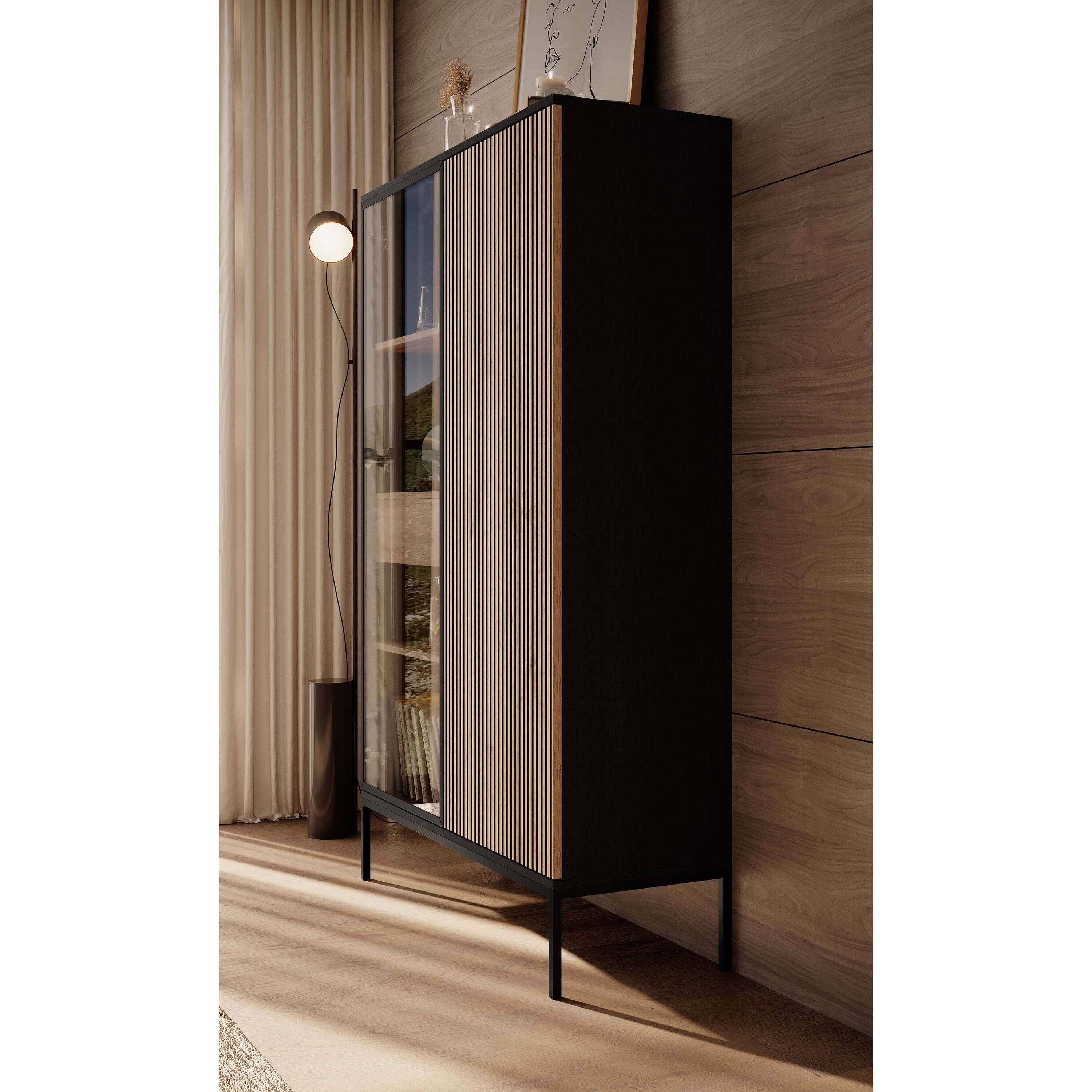 Meubella - Vitrinekast Legend - Mat zwart - Eiken - 104 cm