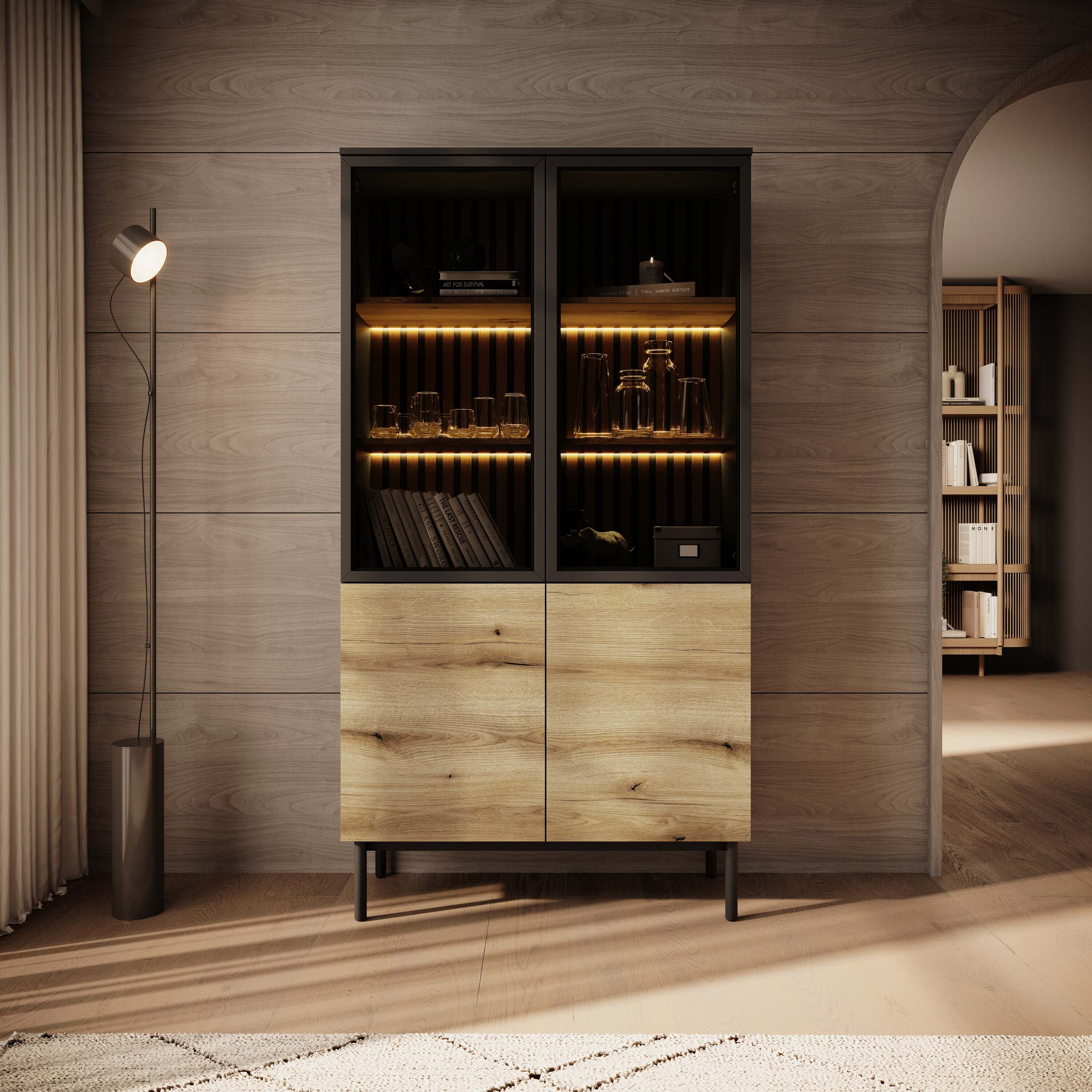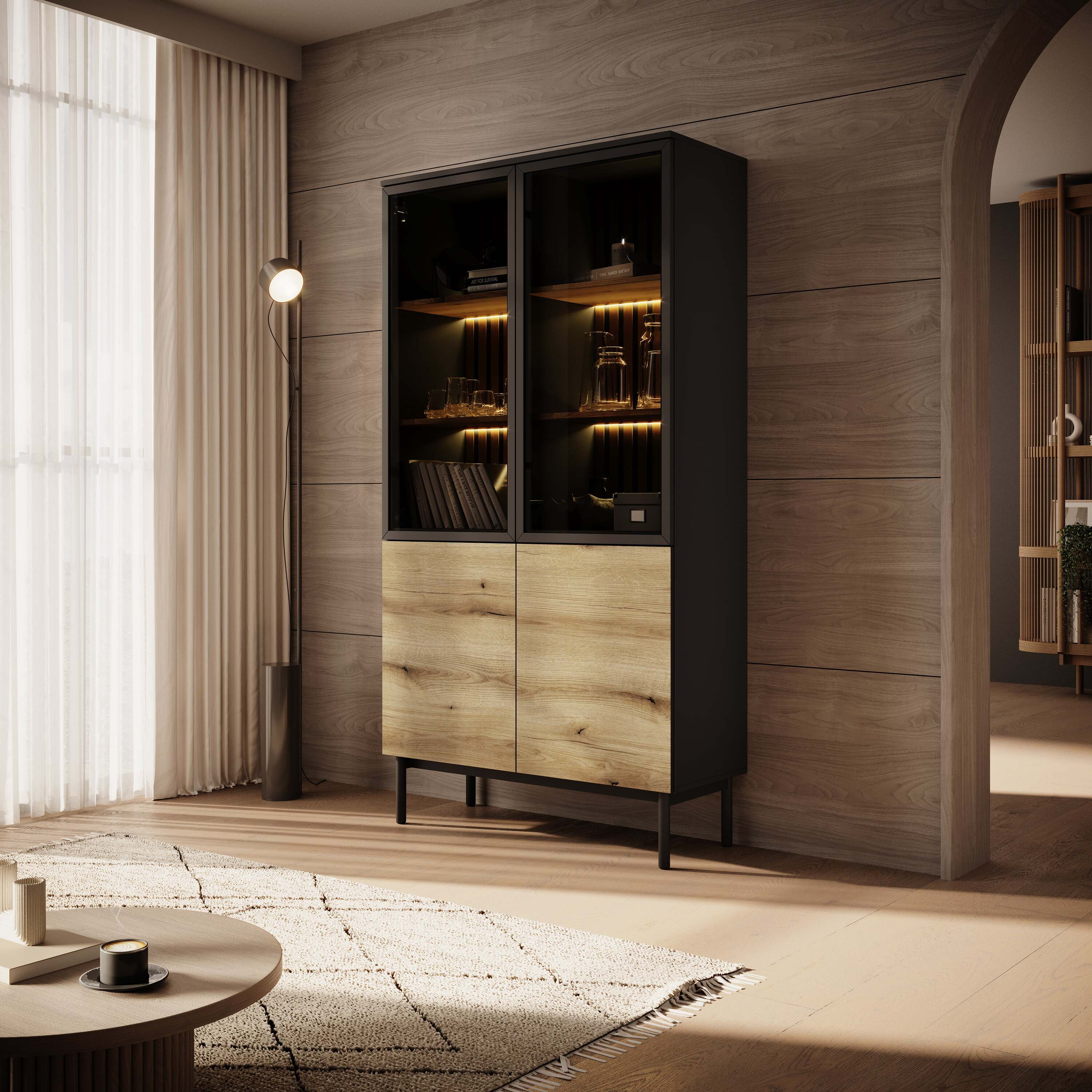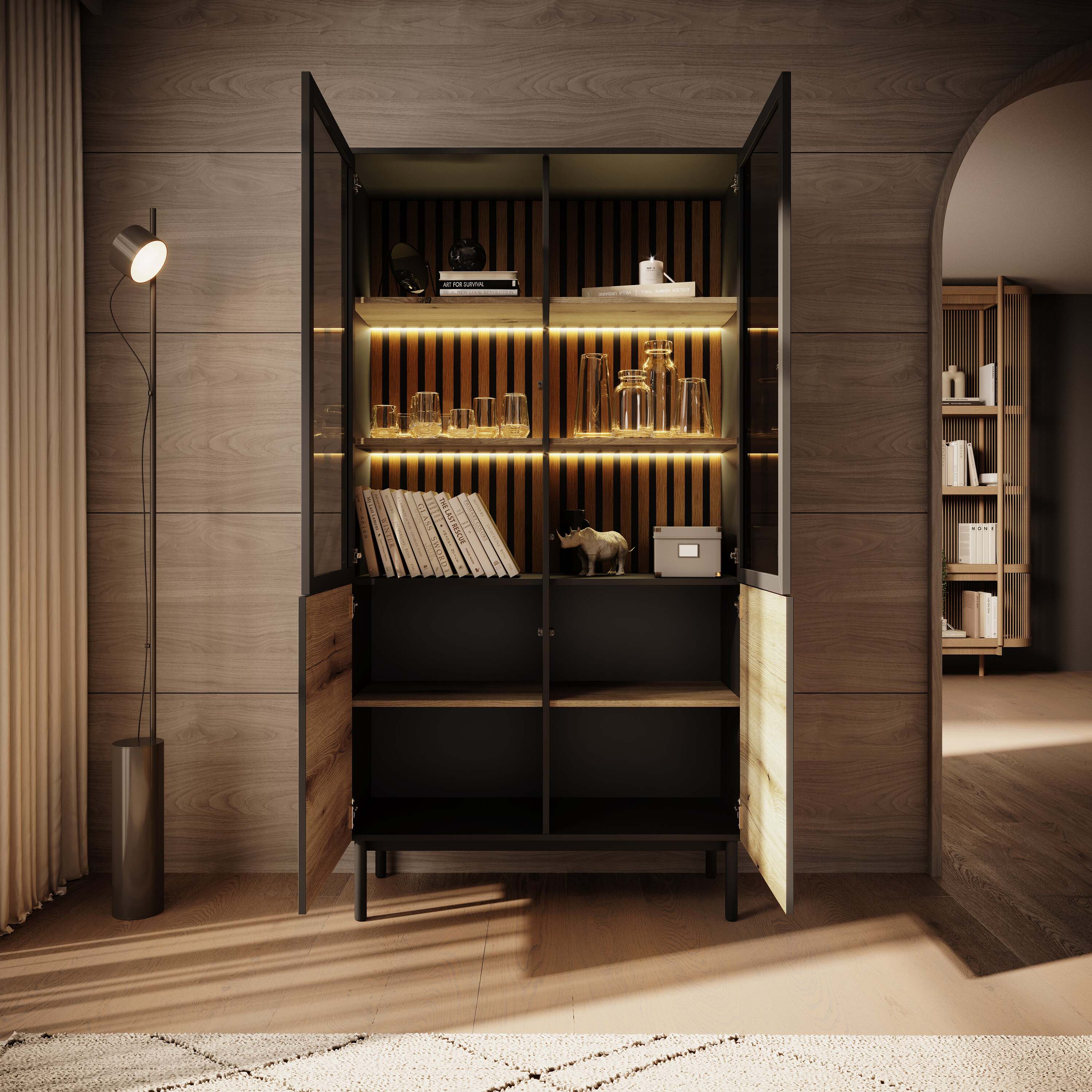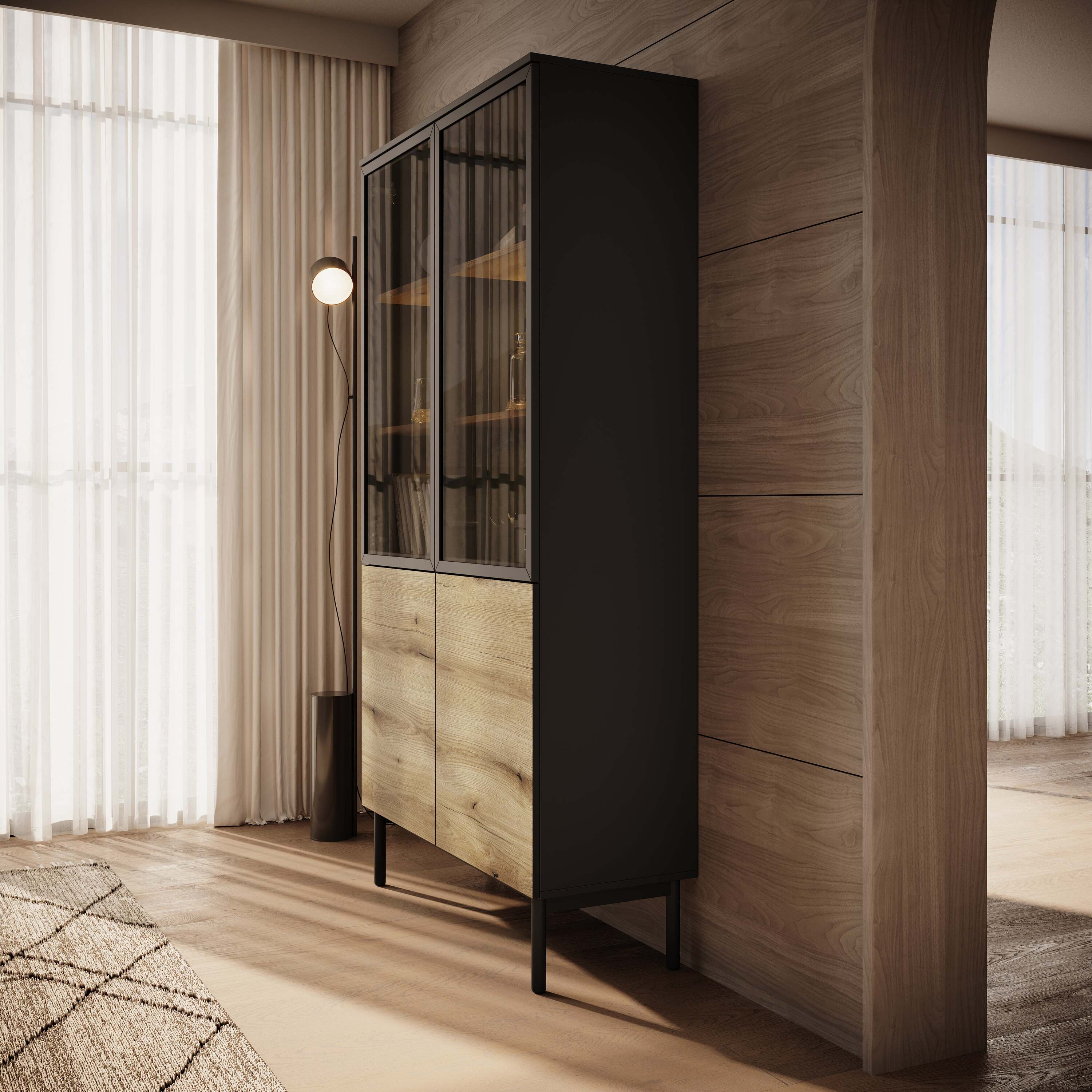 Meubella - Vitrinekast Ludwig - Zwart - Eiken - 100 cm - Hoog