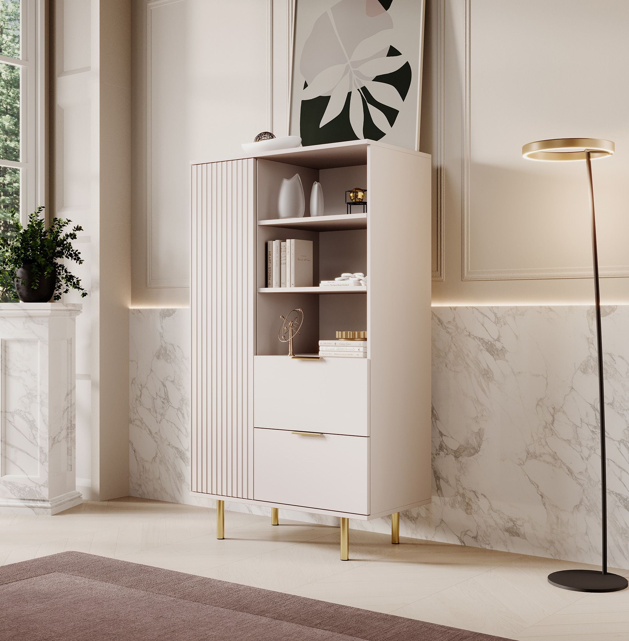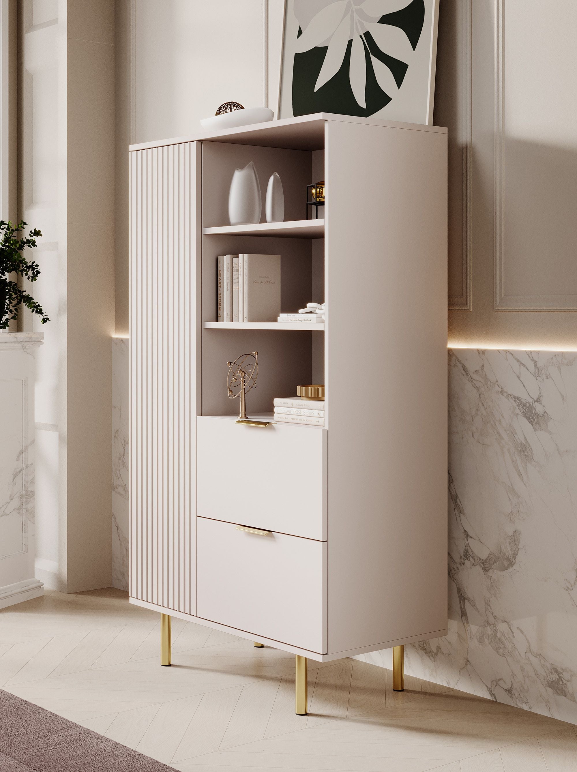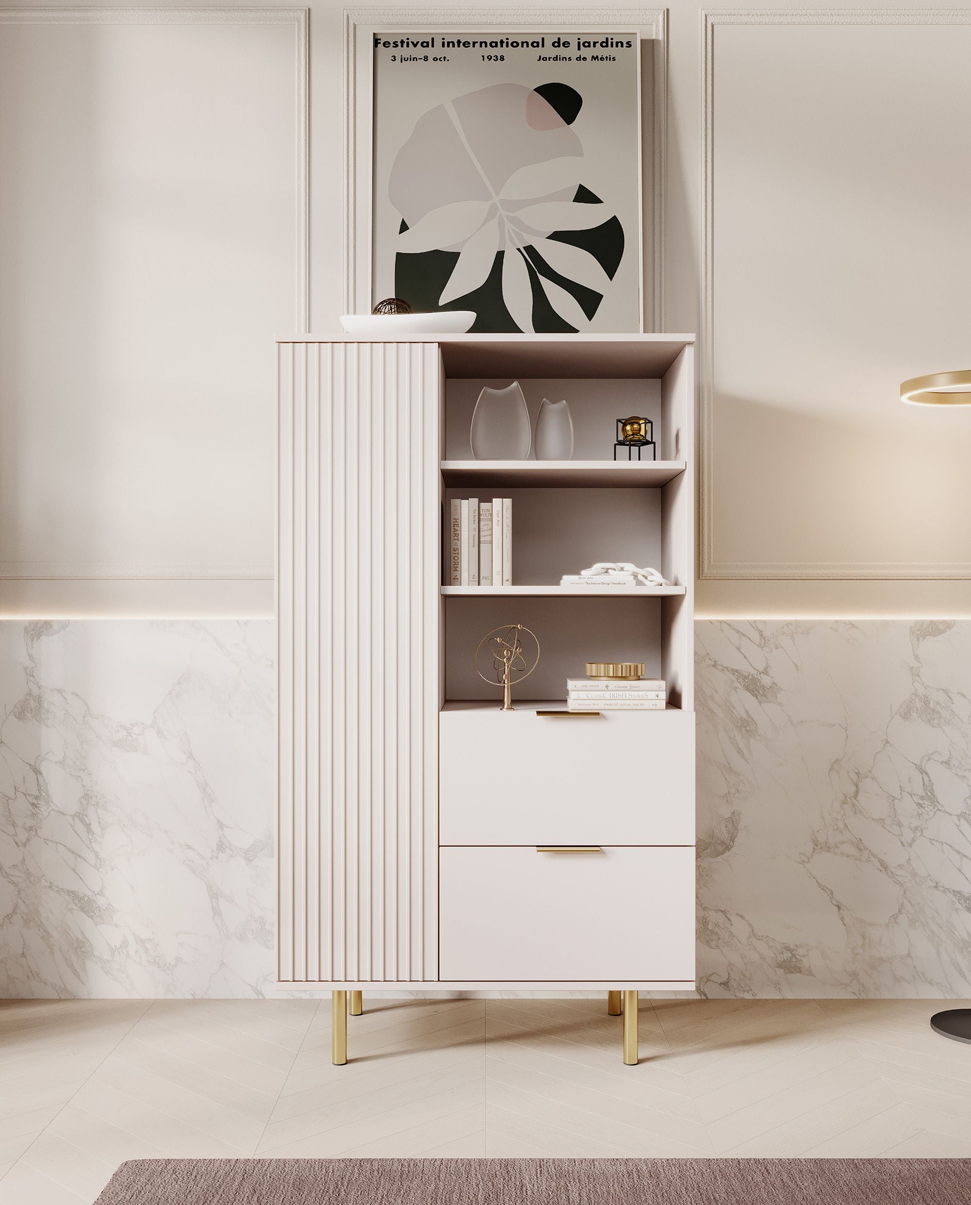 Meubella Vitrinekast Nicola - Beige - 80 cm - Laag