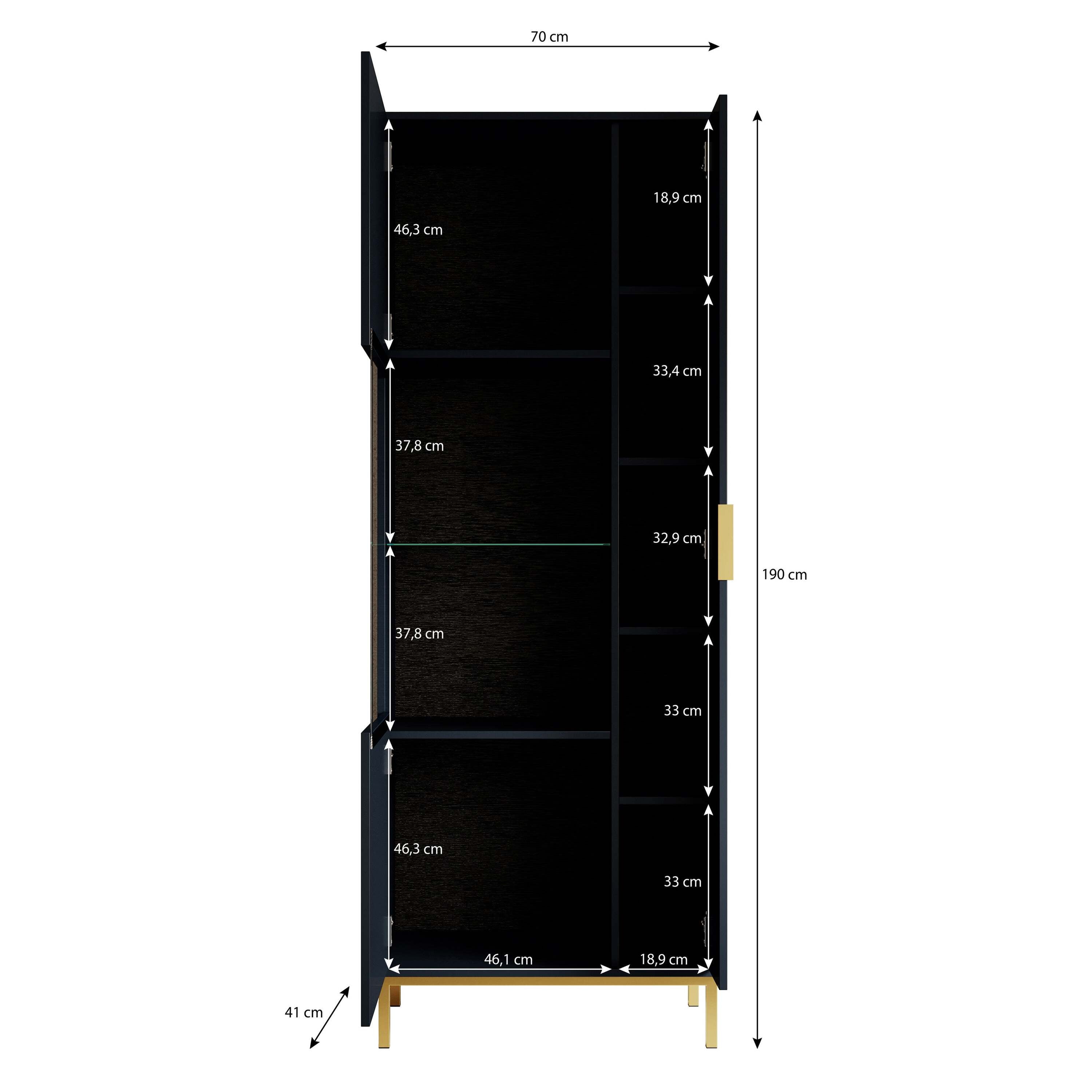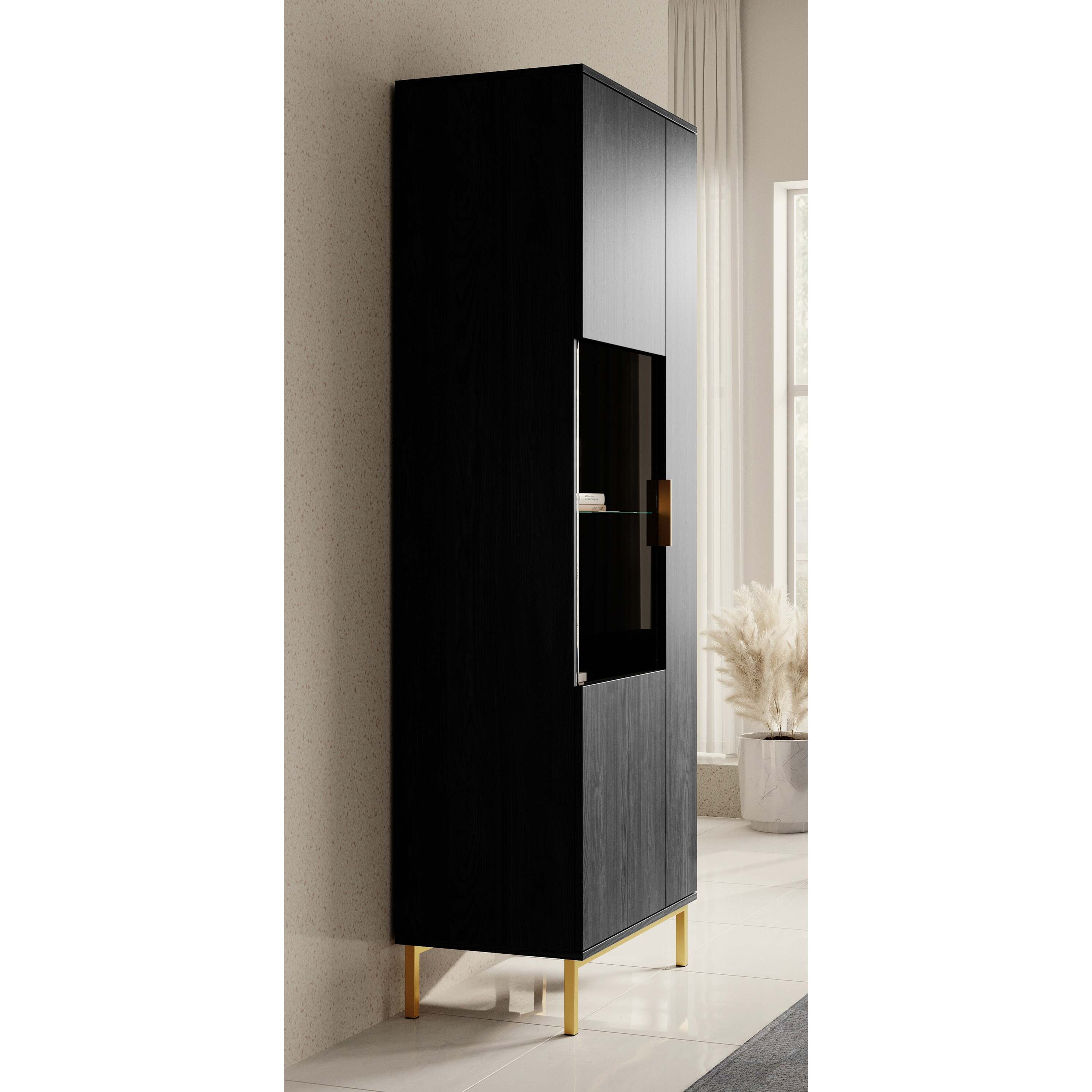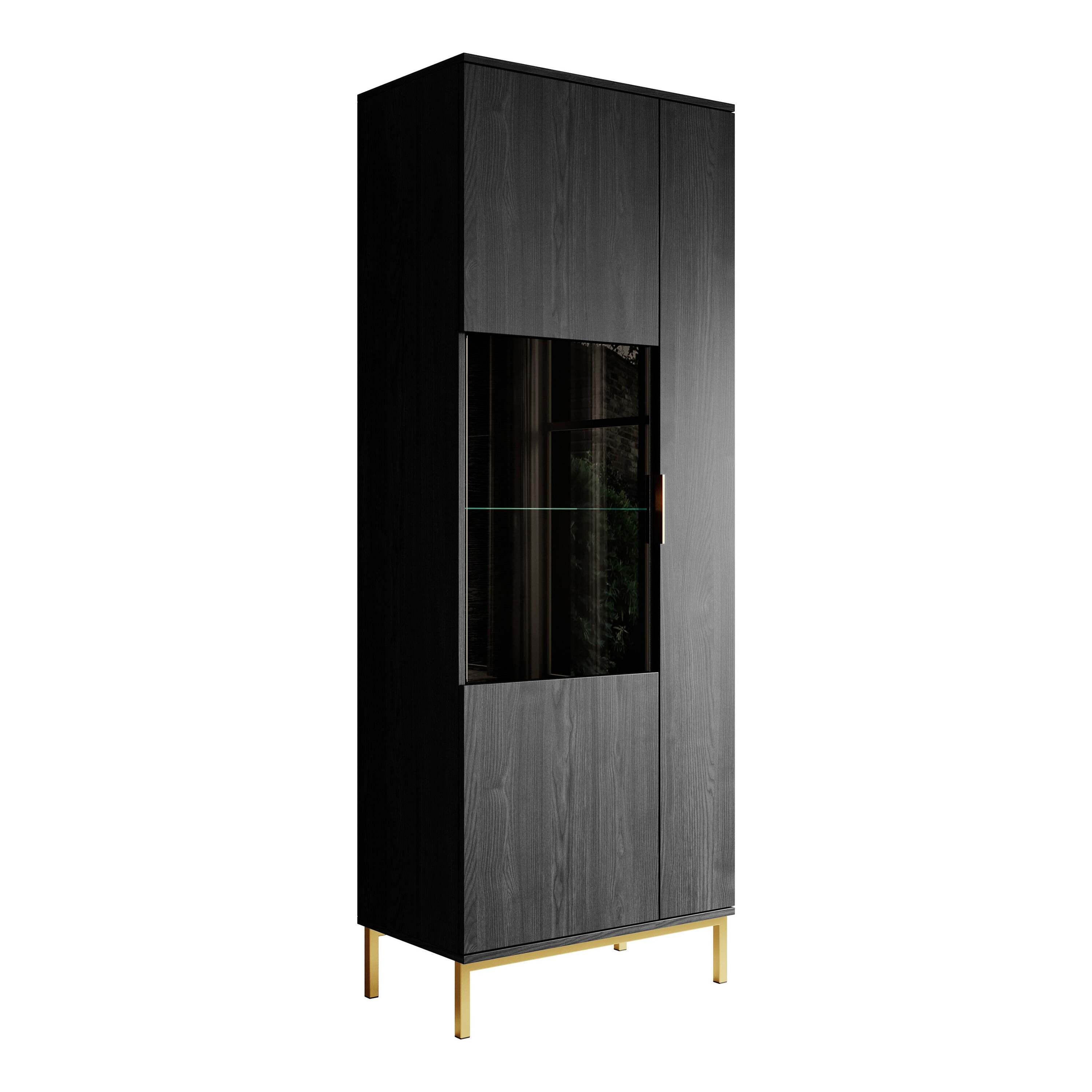 Meubella - Vitrinekast Ponchi - Zwart eiken - 70 cm