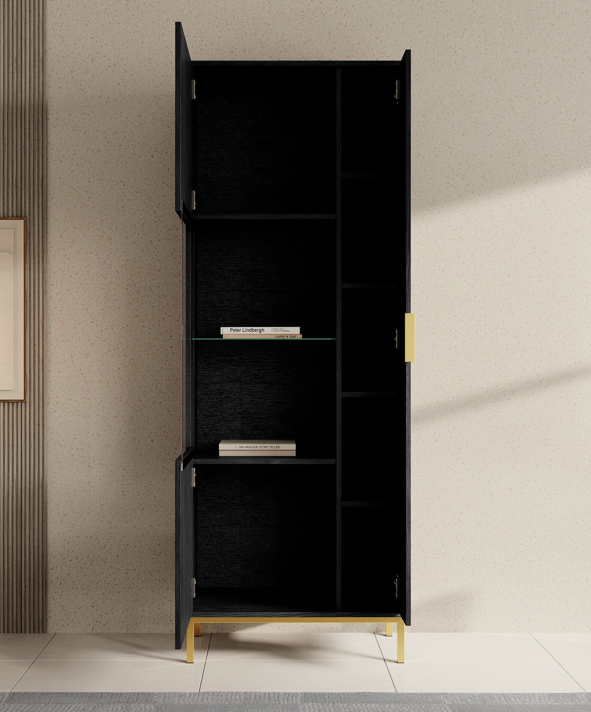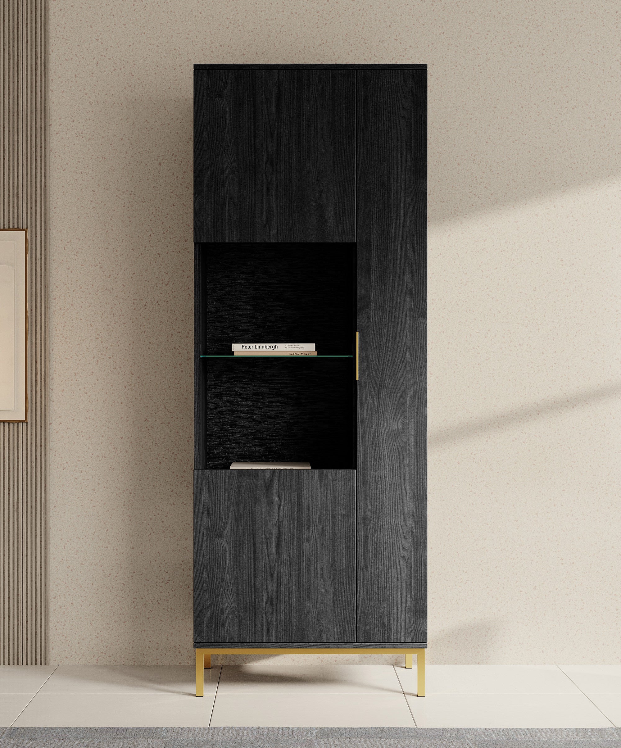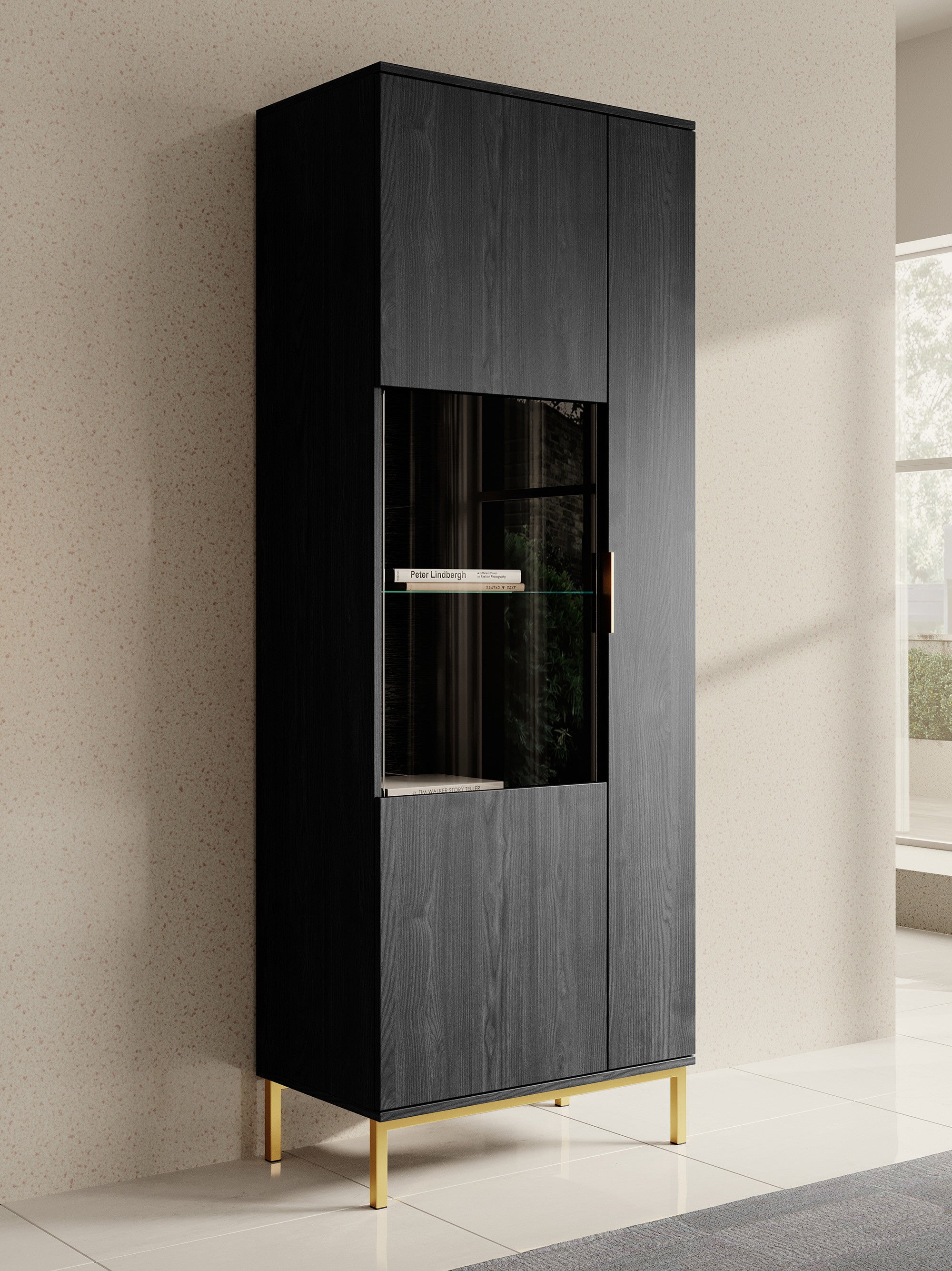 Meubella - Vitrinekast Ponchi - Zwart eiken - 70 cm