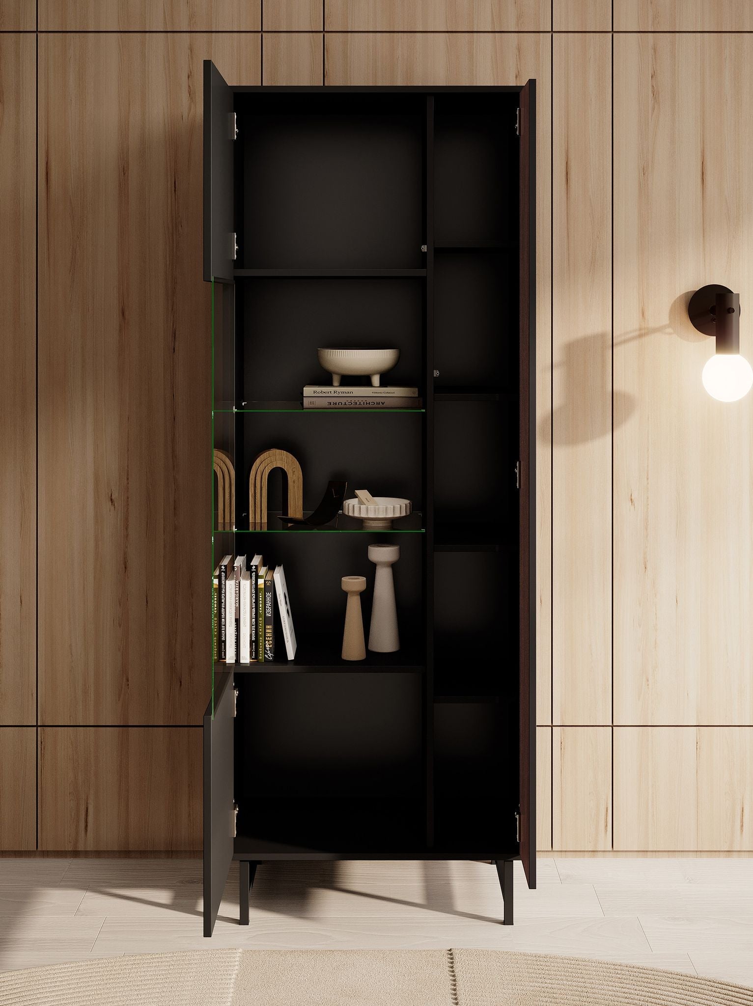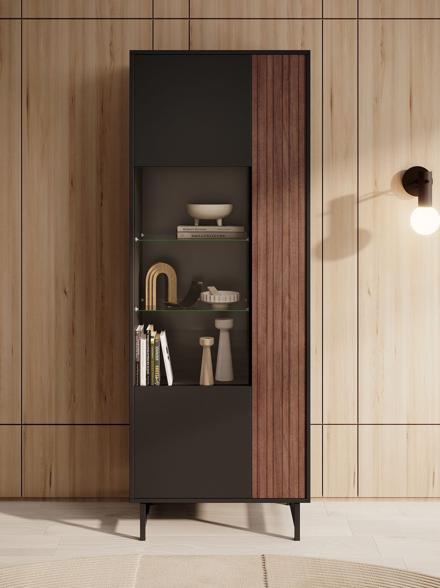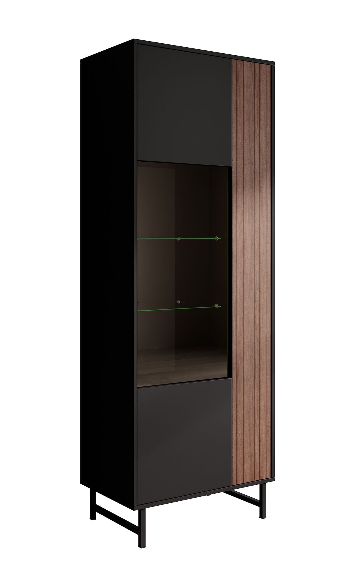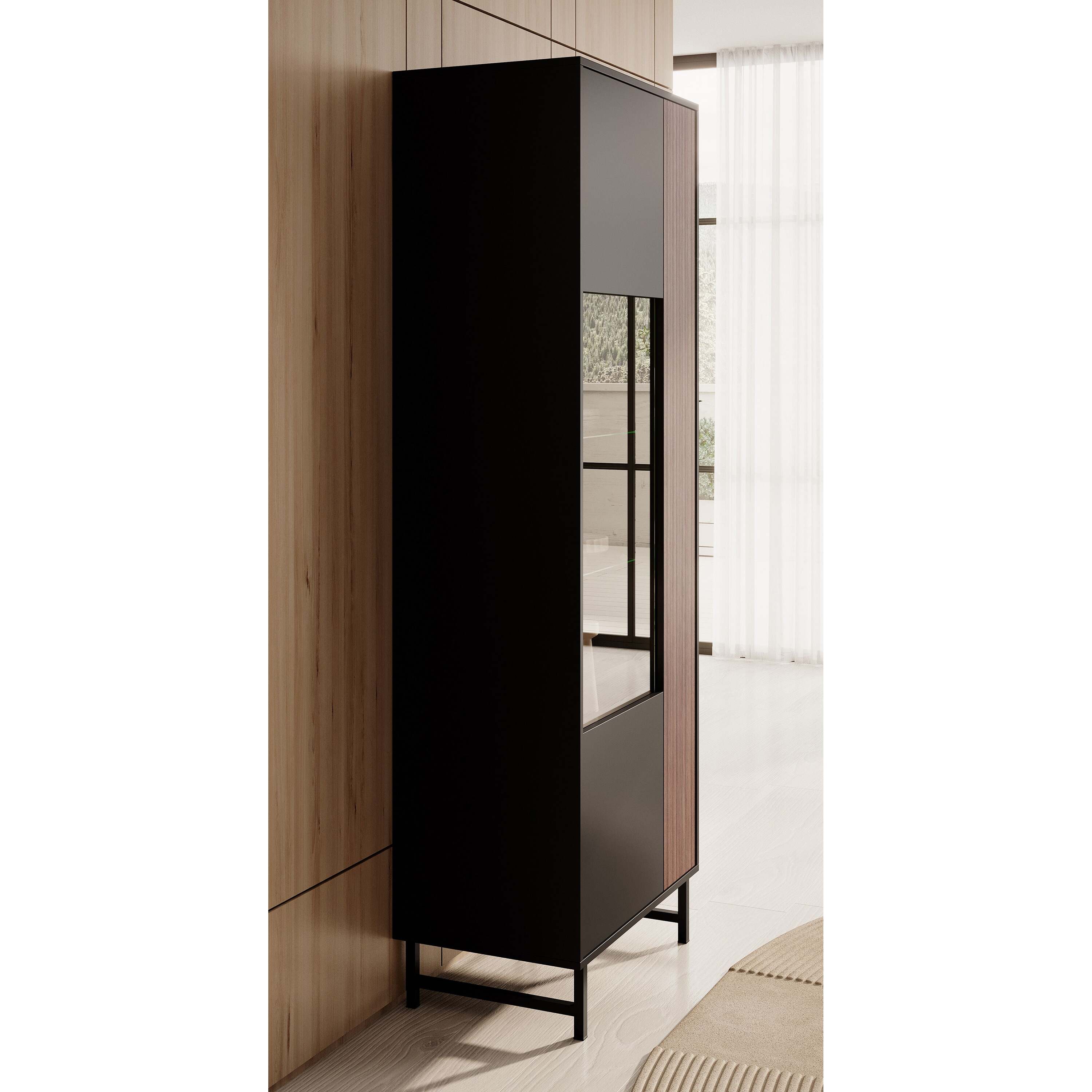 Meubella - Vitrinekast Prince - Zwart - Eiken - 70 cm