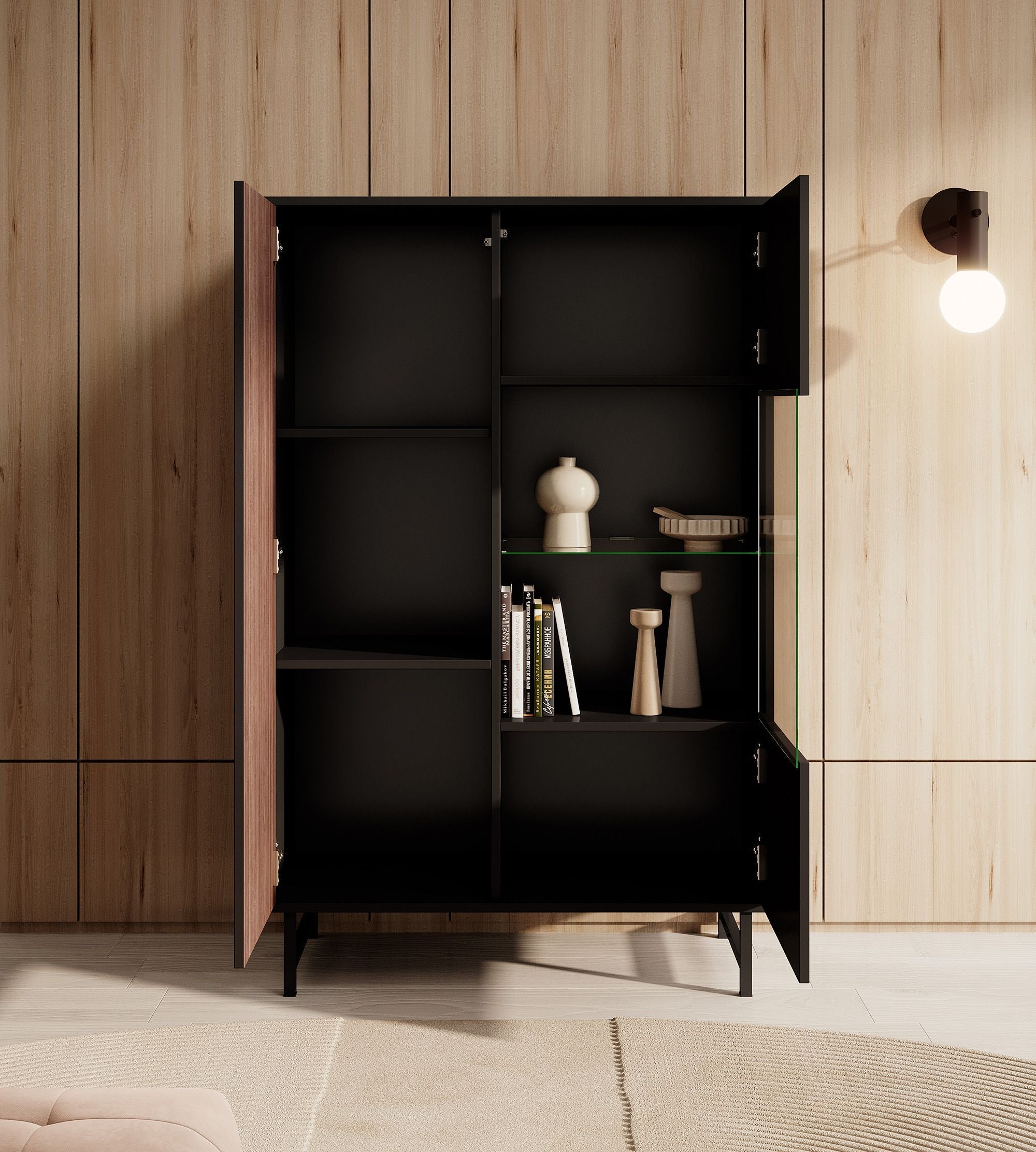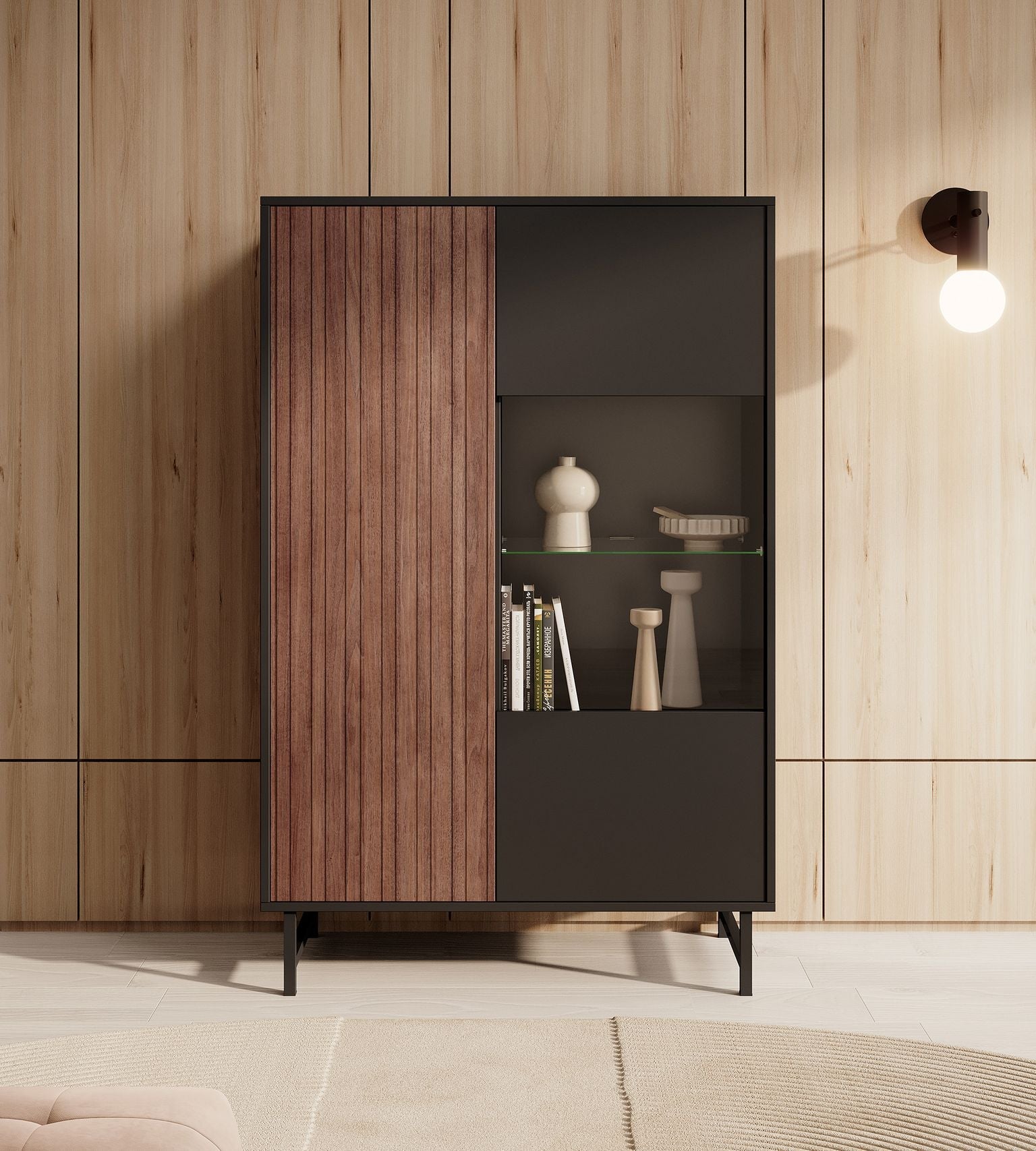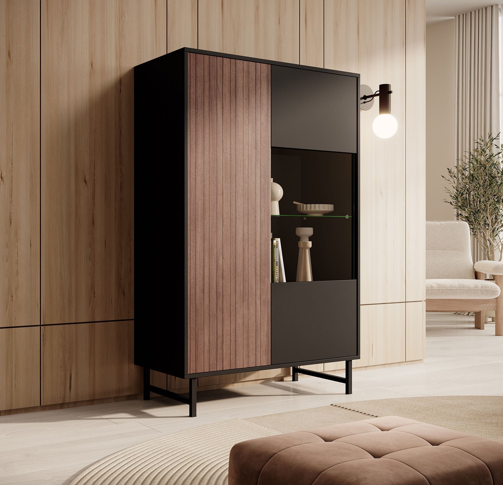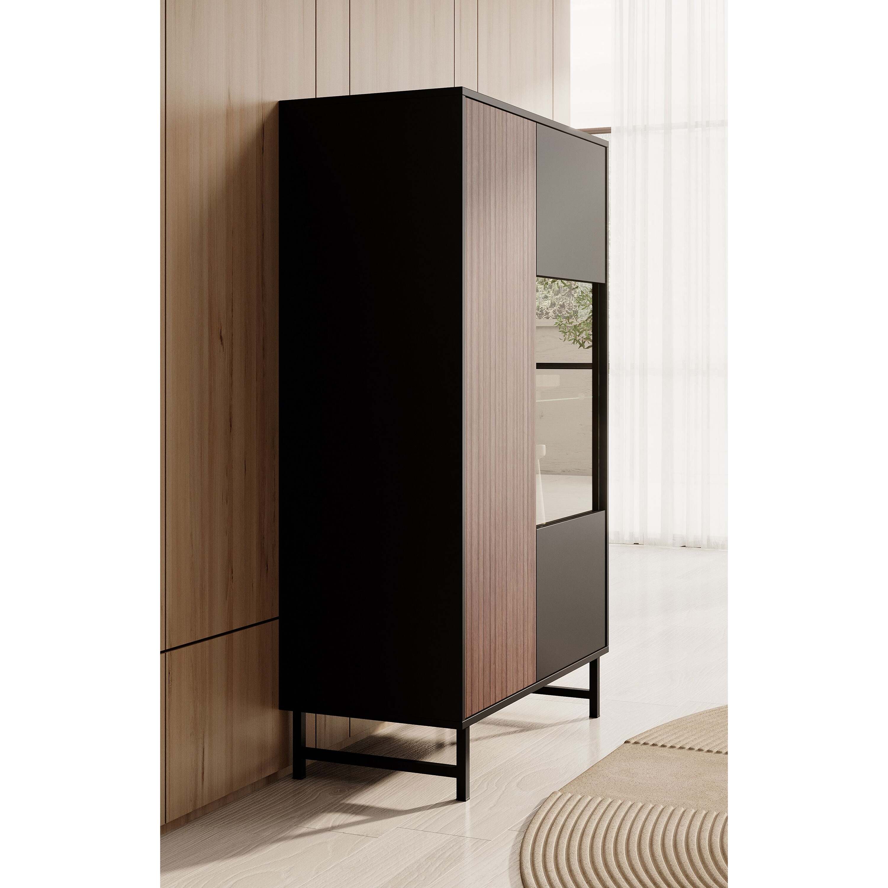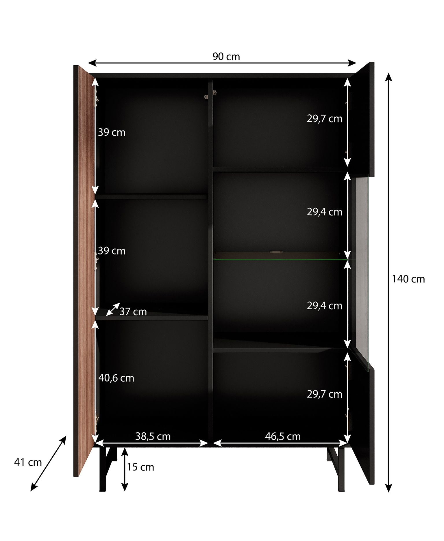 Meubella - Vitrinekast Prince - Zwart - Eiken - 90 cm