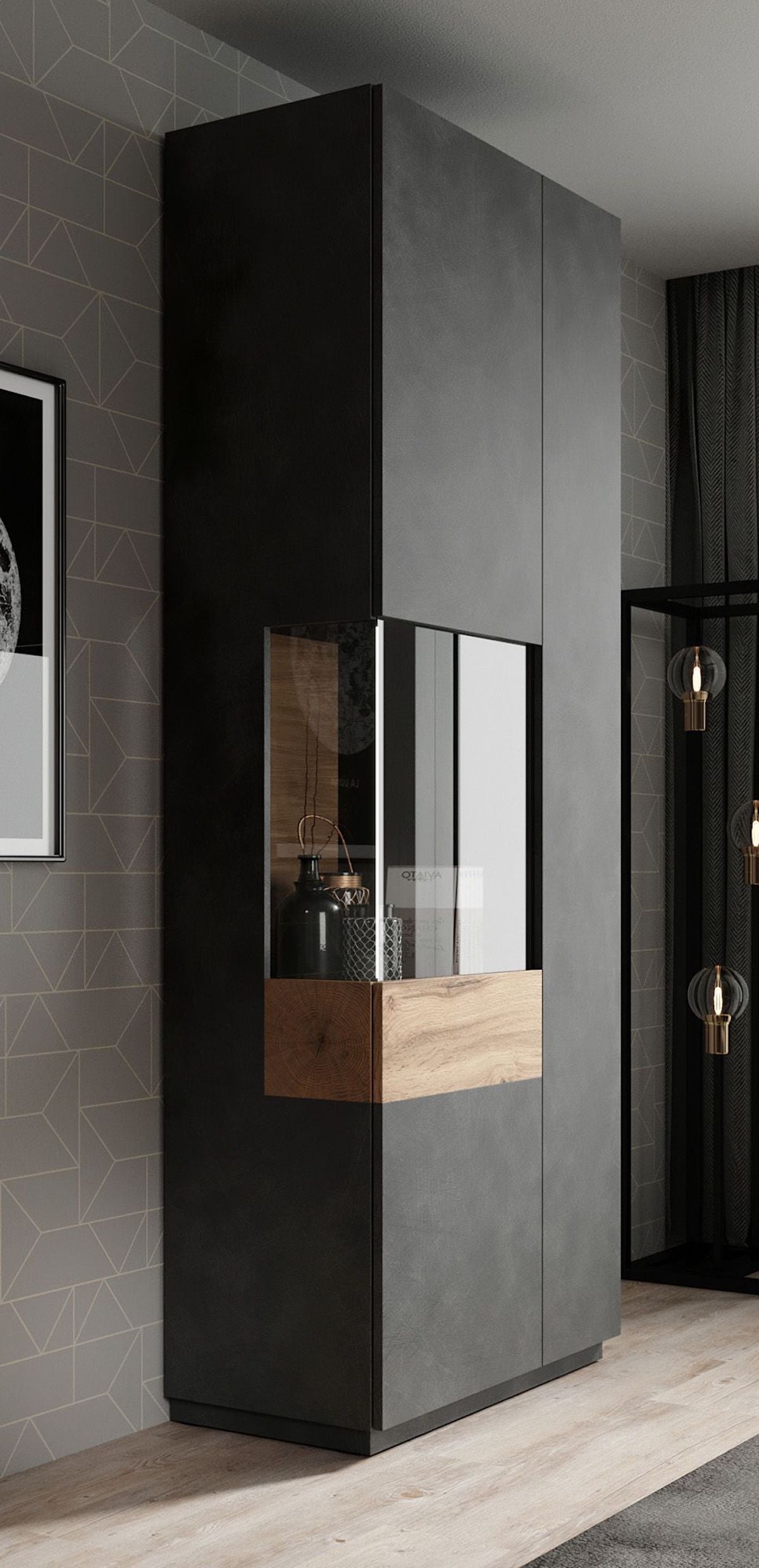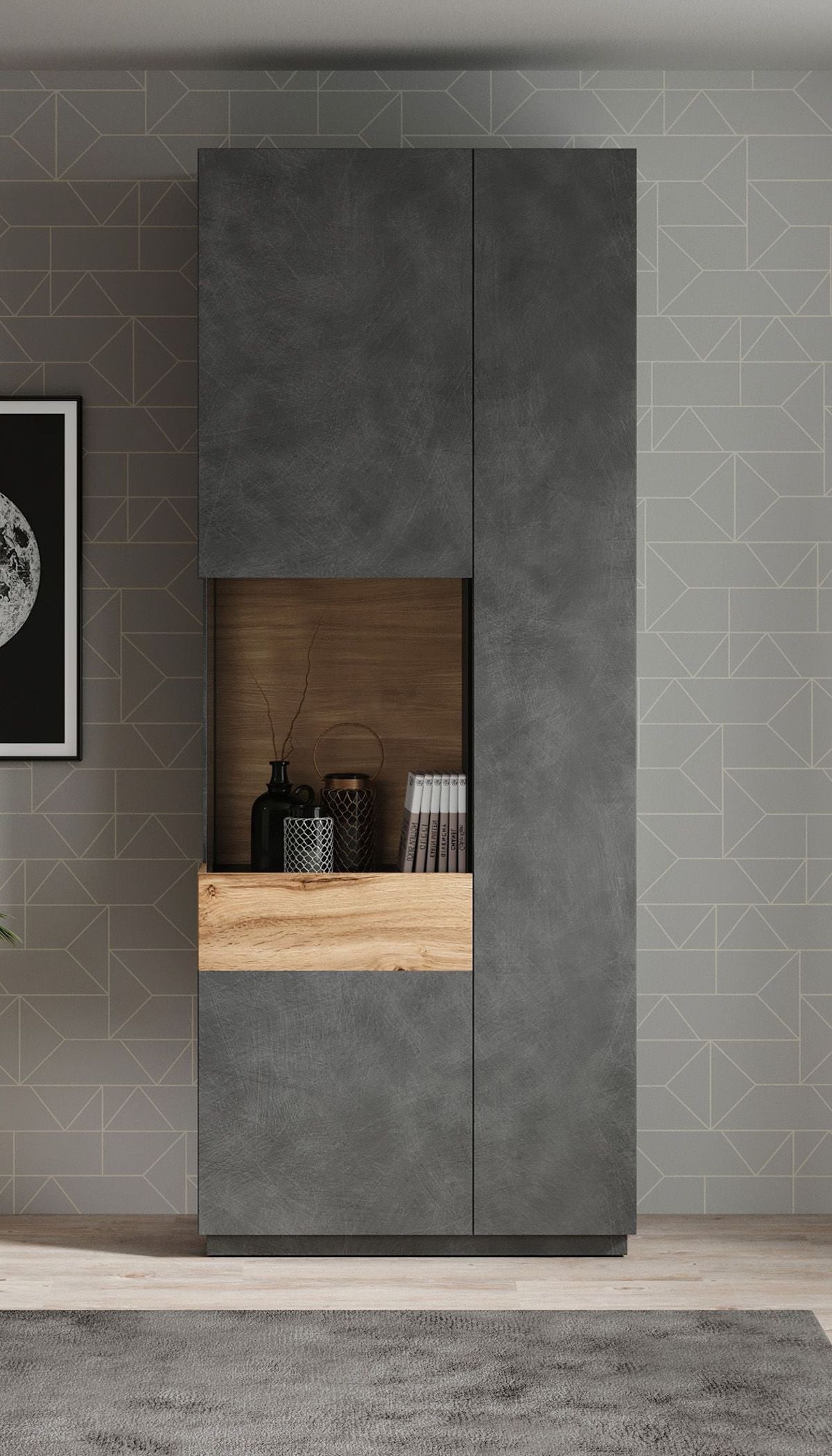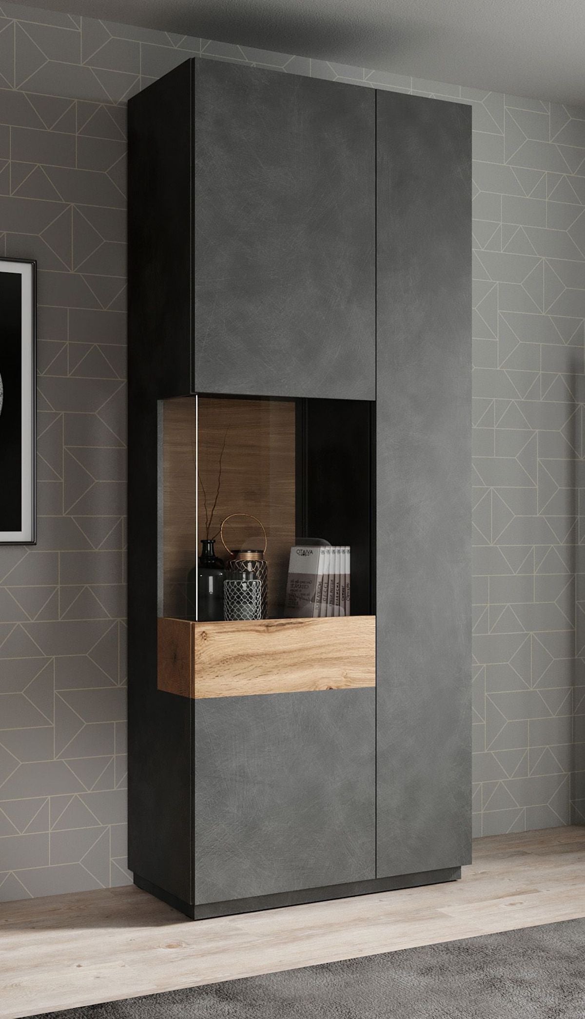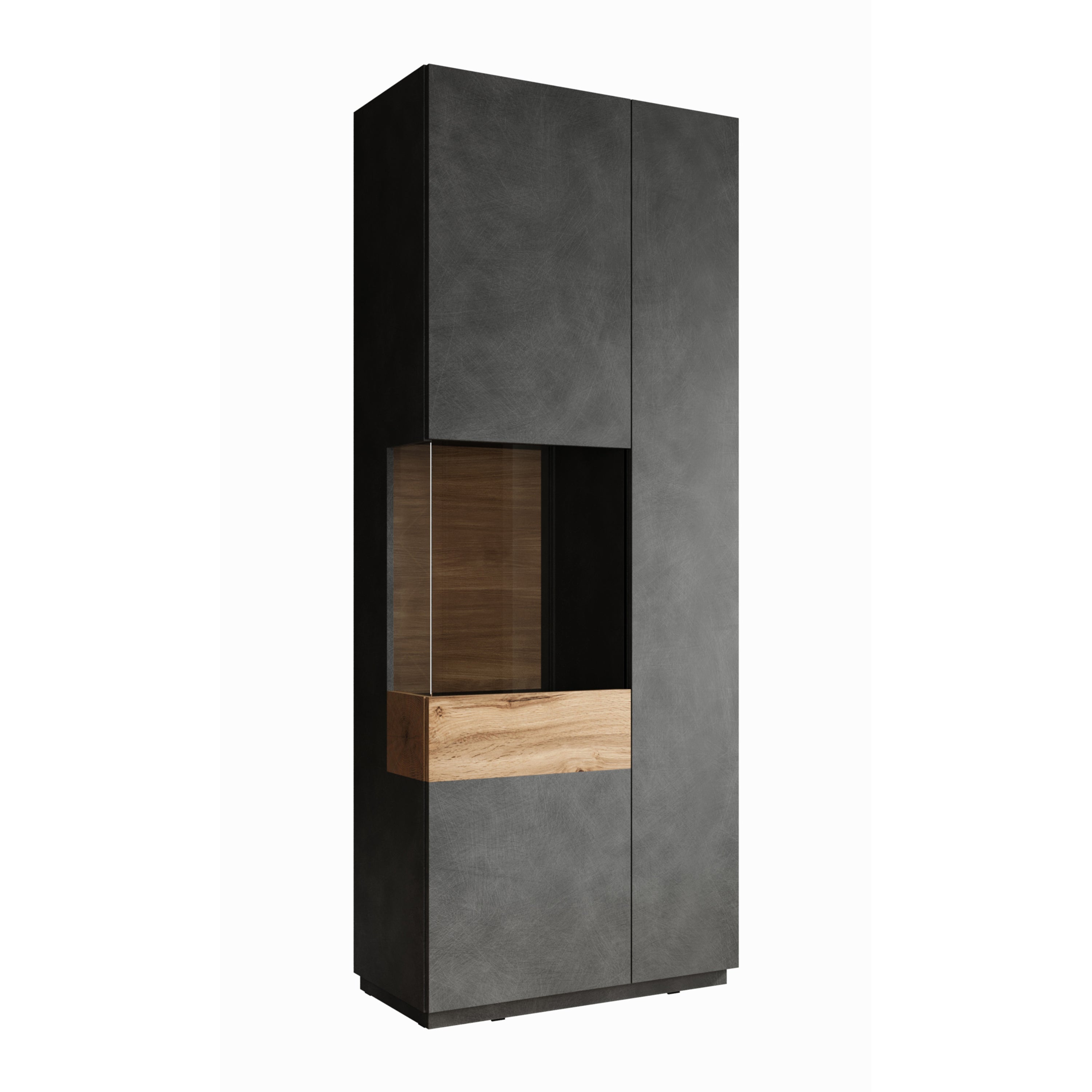 Meubella Vitrinekast Sublime - Grijs - Eiken - 80 cm - Hoog