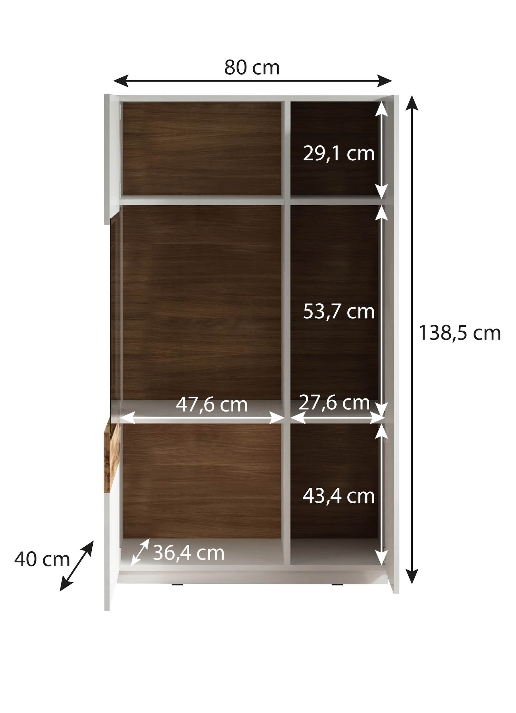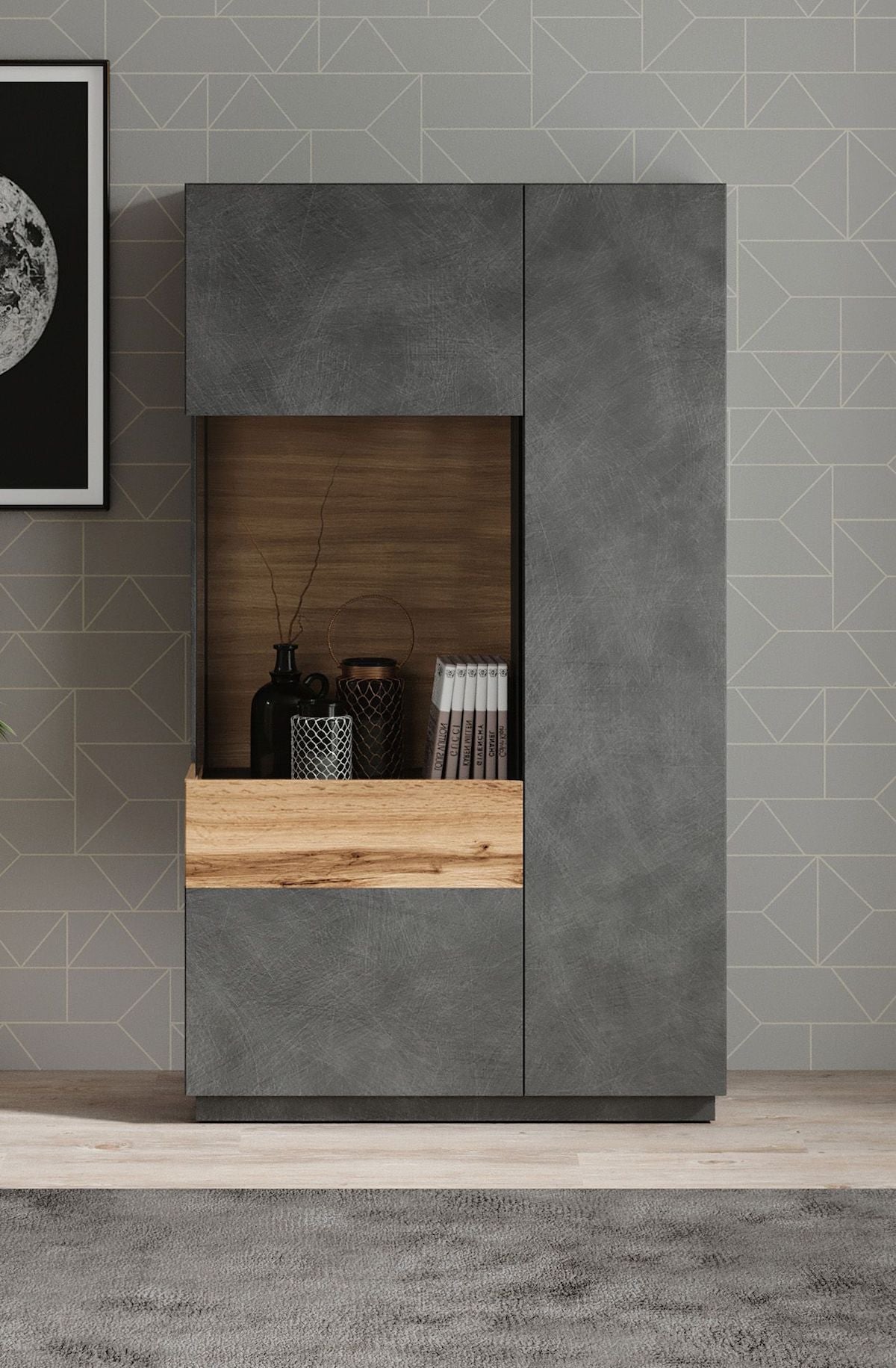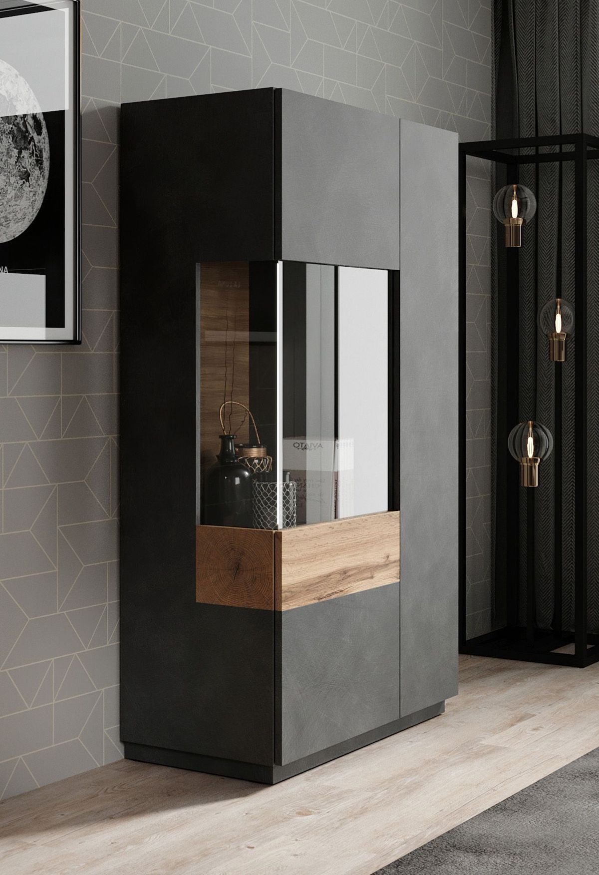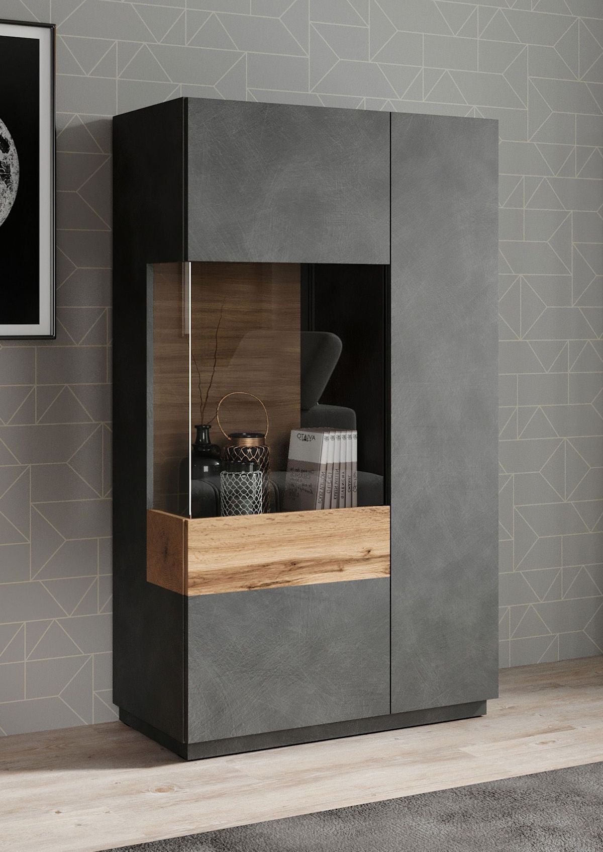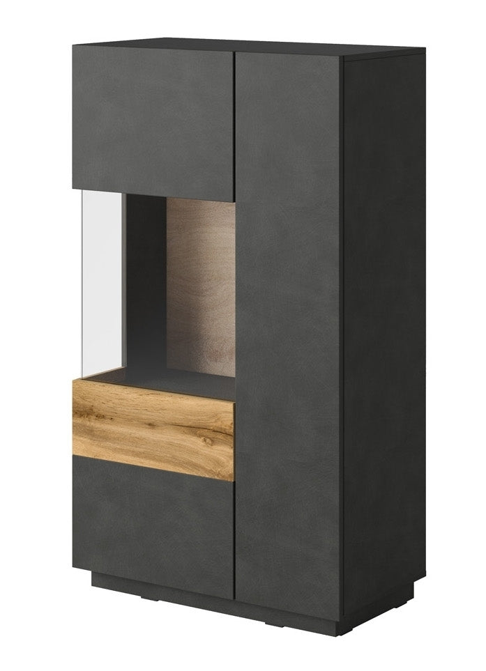 Meubella - Vitrinekast Sublime - Grijs - Eiken - 80 cm - Laag
