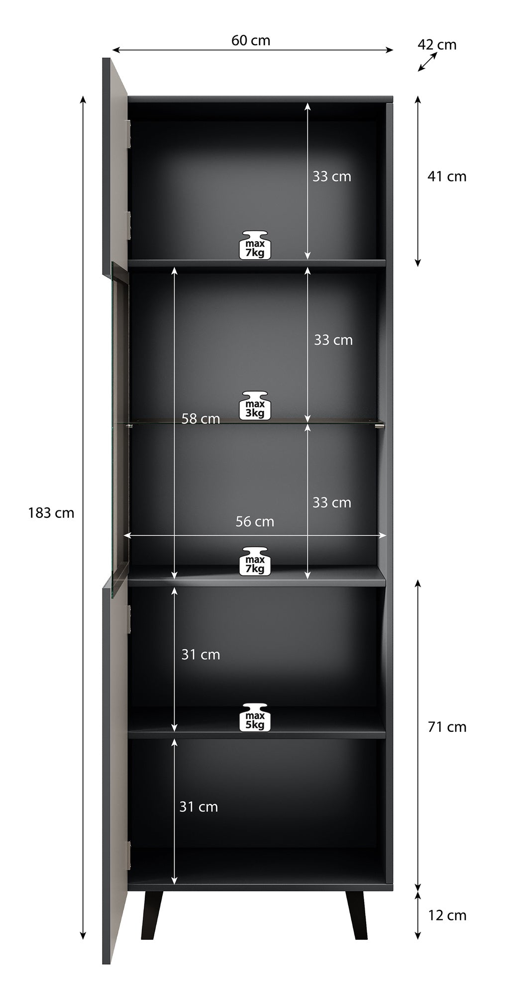 Meubella - Vitrinekast Vintar - Antraciet - 60 cm