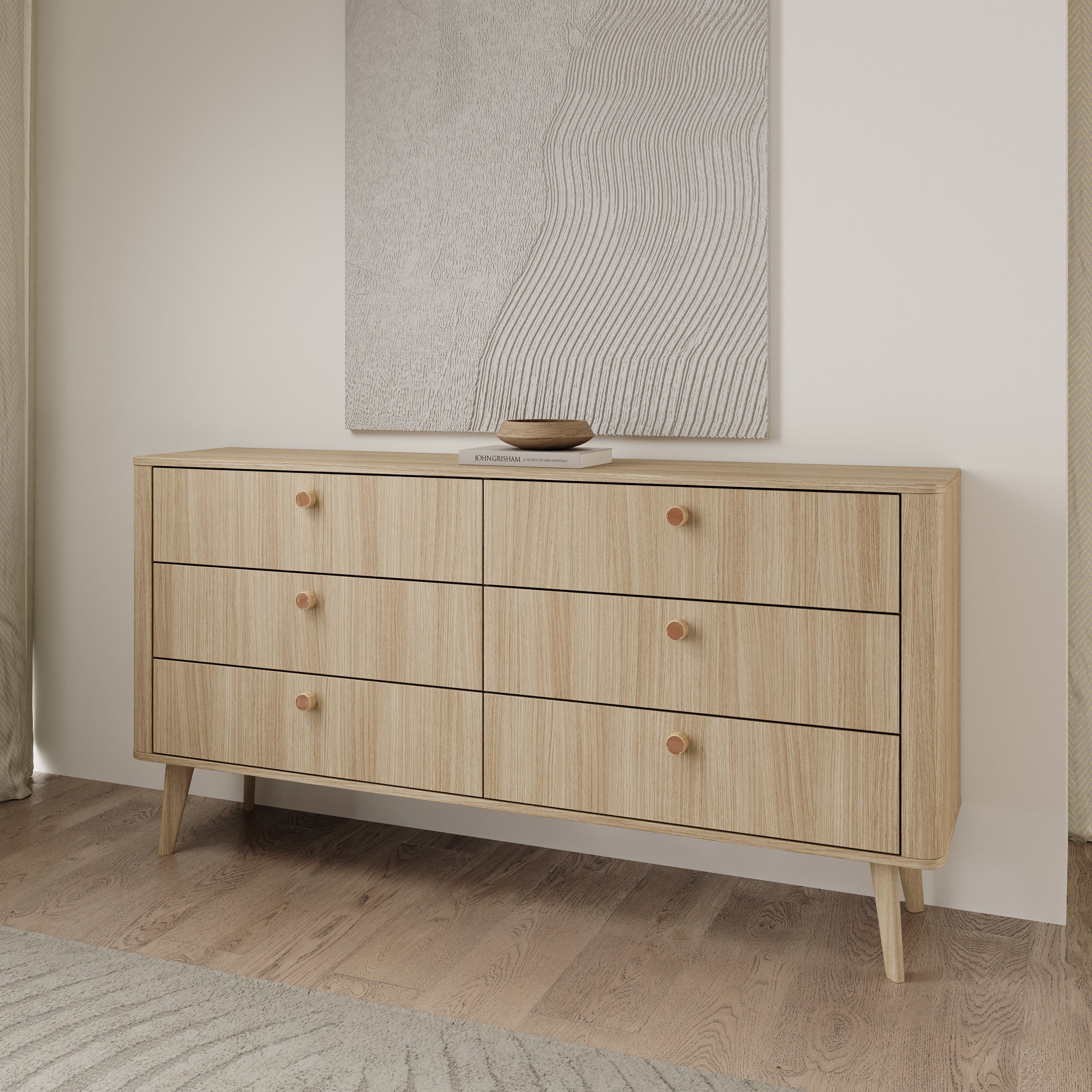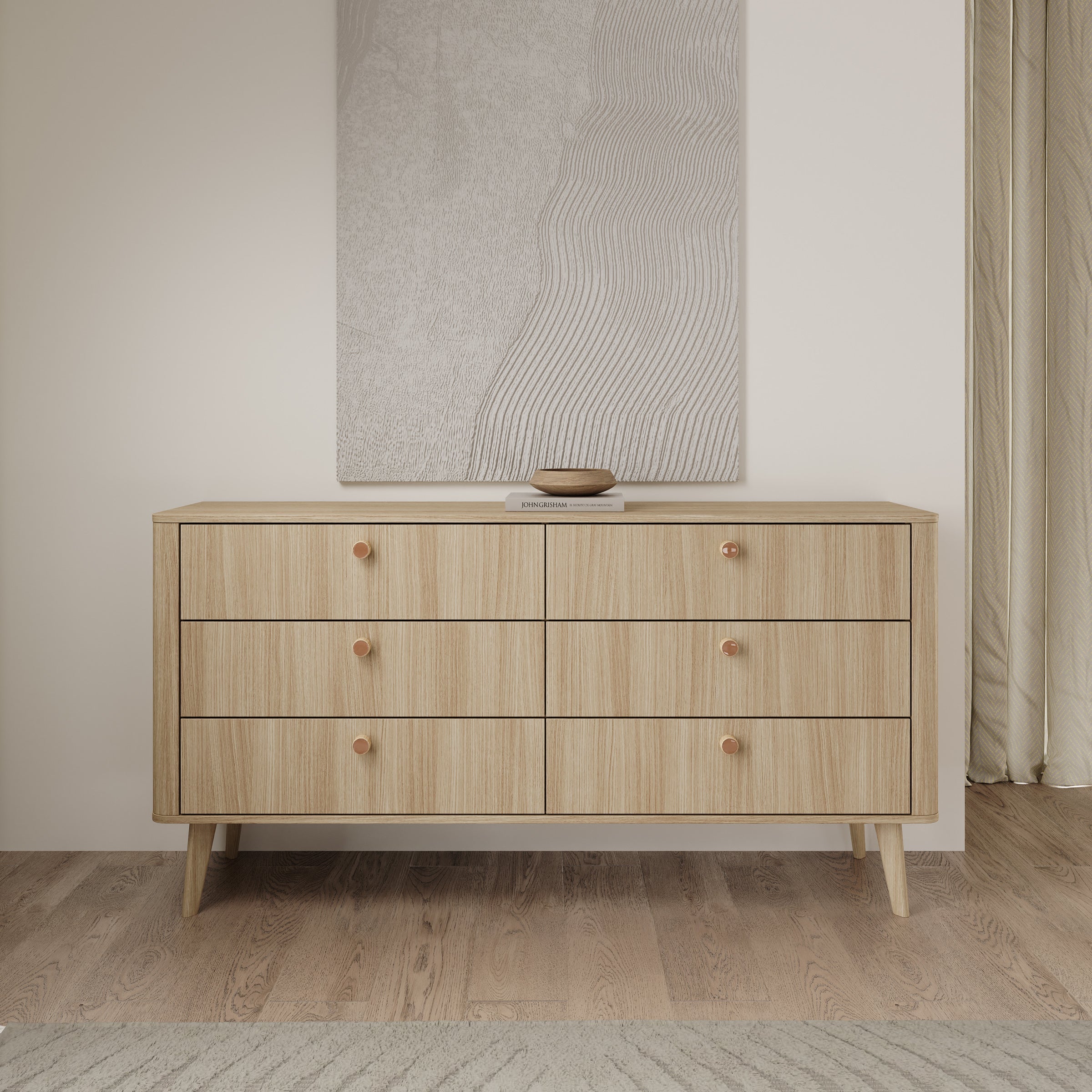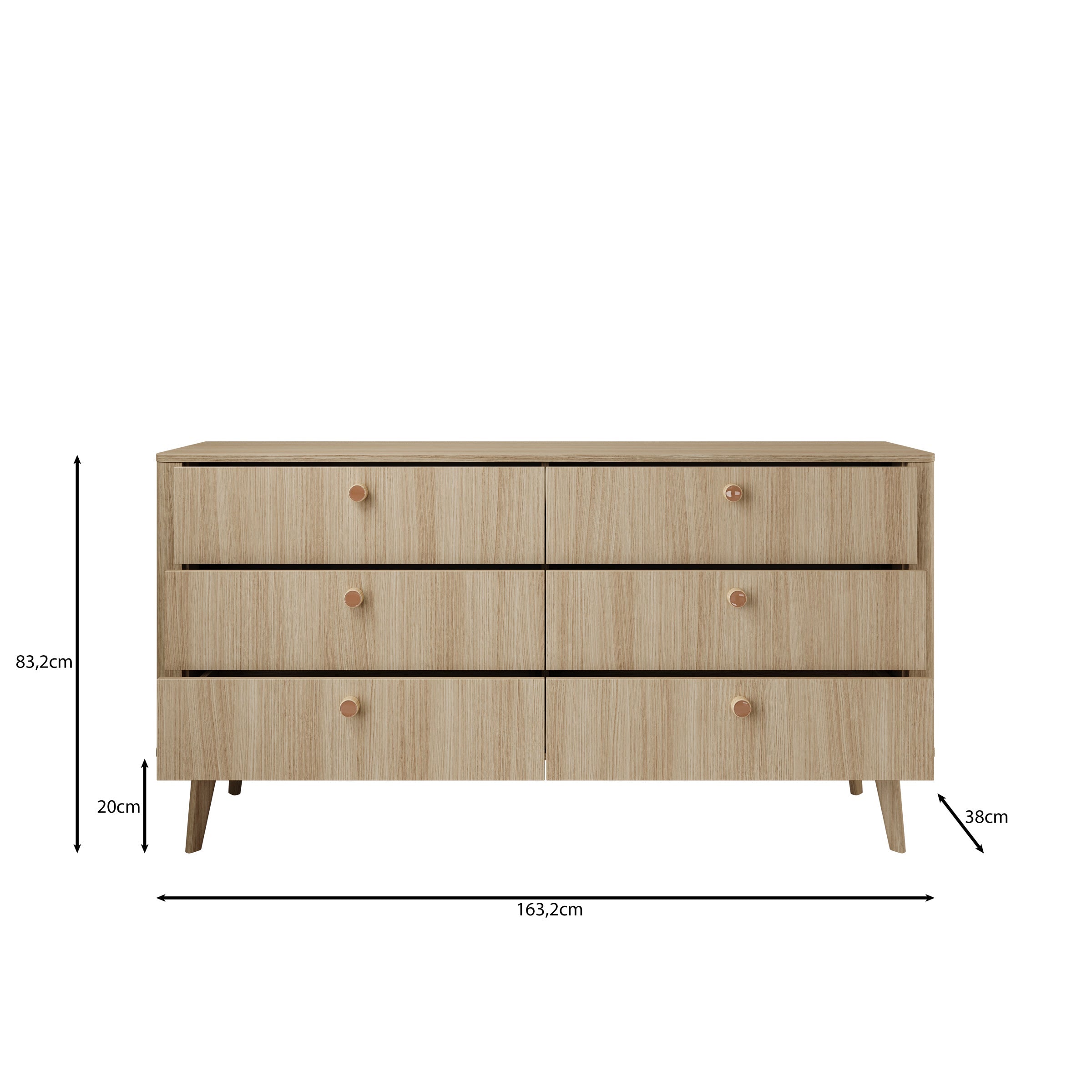 Meubella - Voorne - Ladekast met 6 lades - Eiken - 163x38x83 cm
