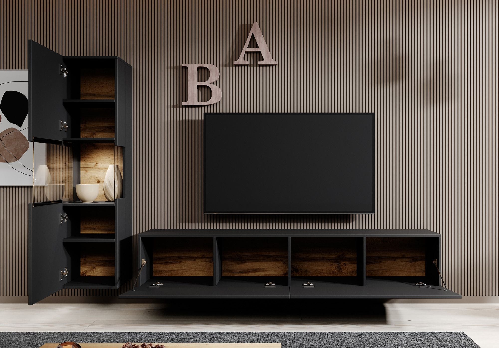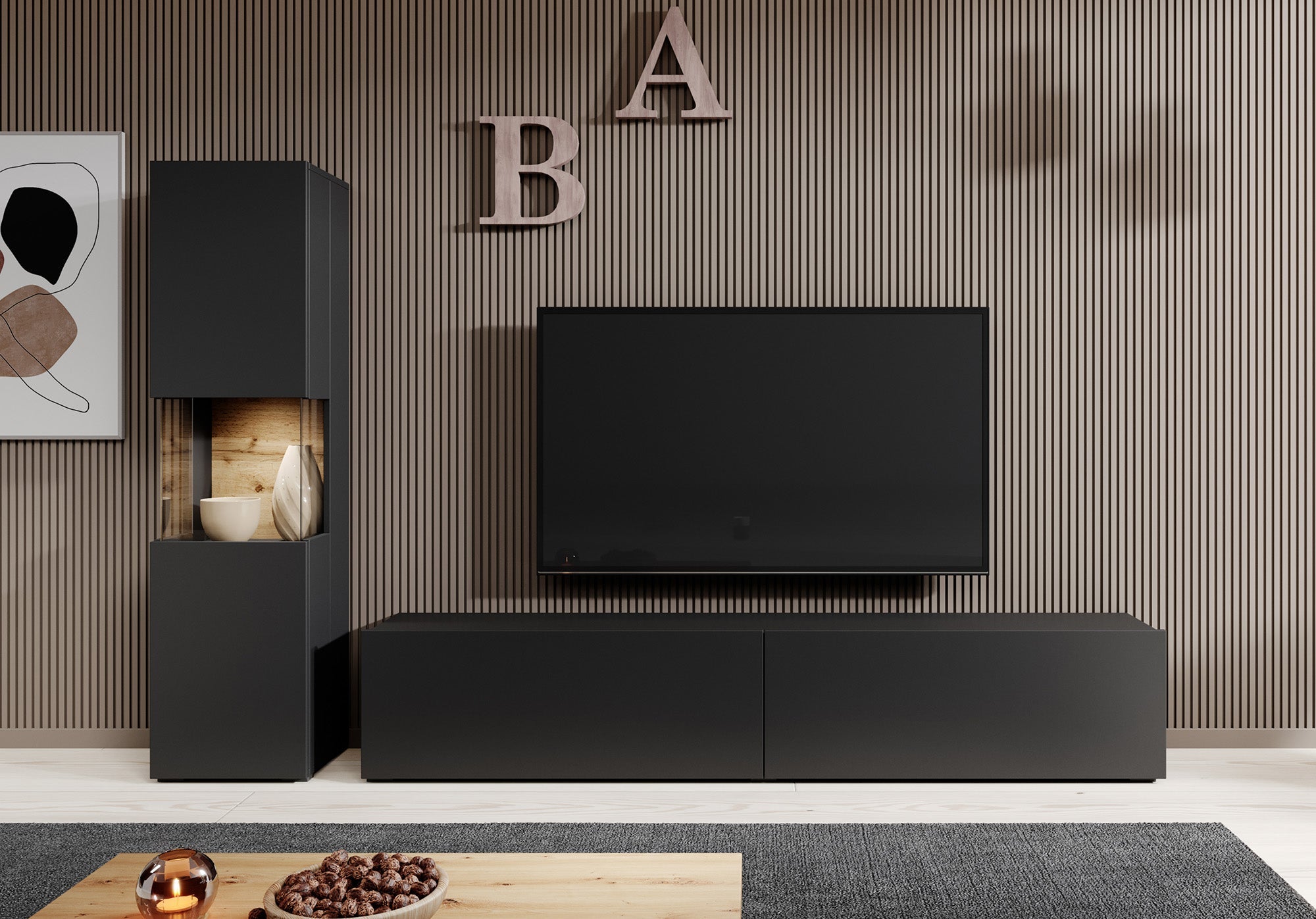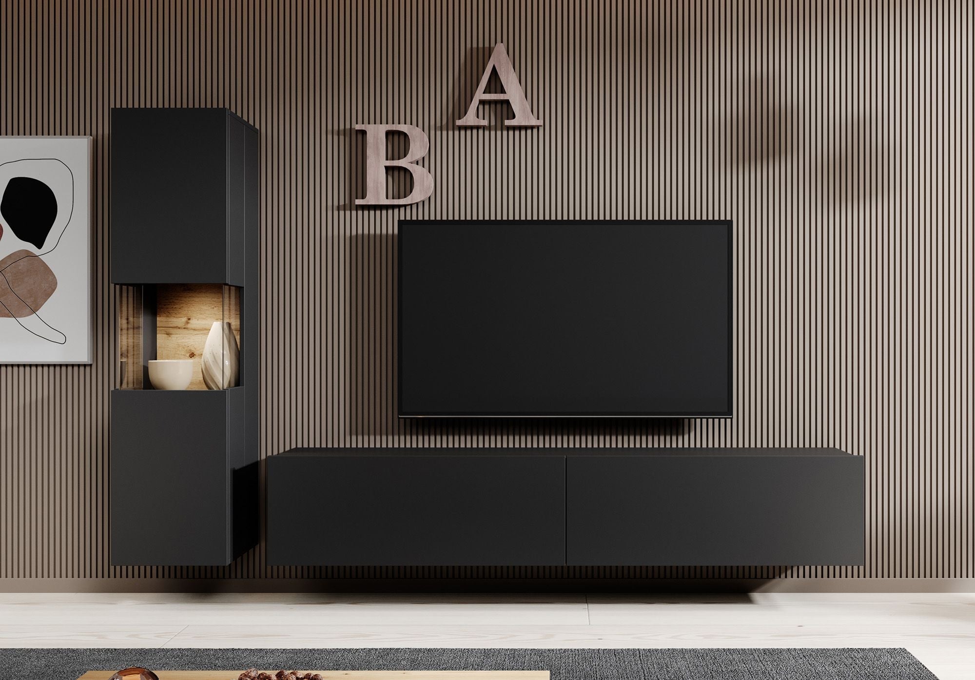 Meubella - Wandmeubel Asilento 1 - Mat zwart
