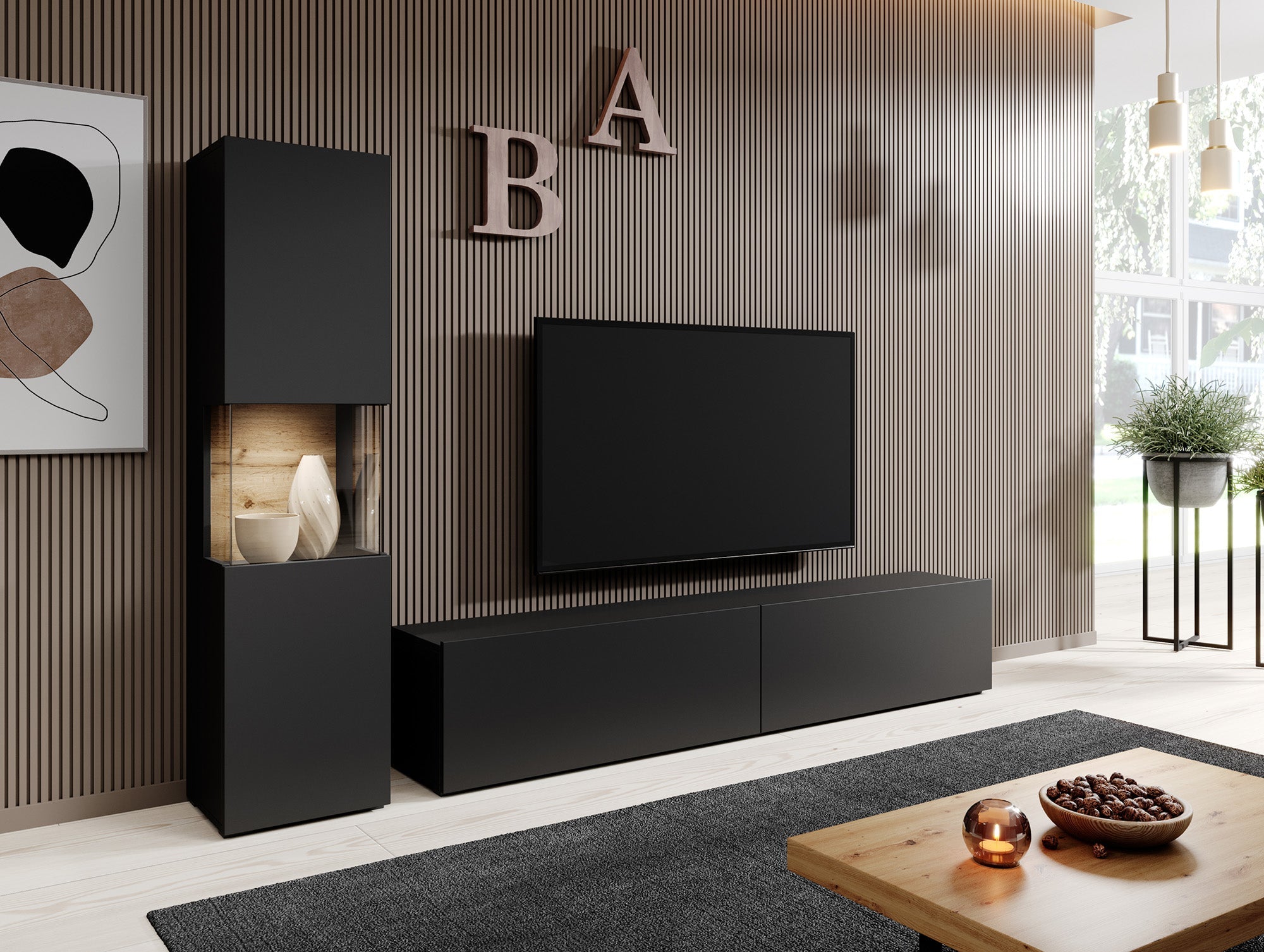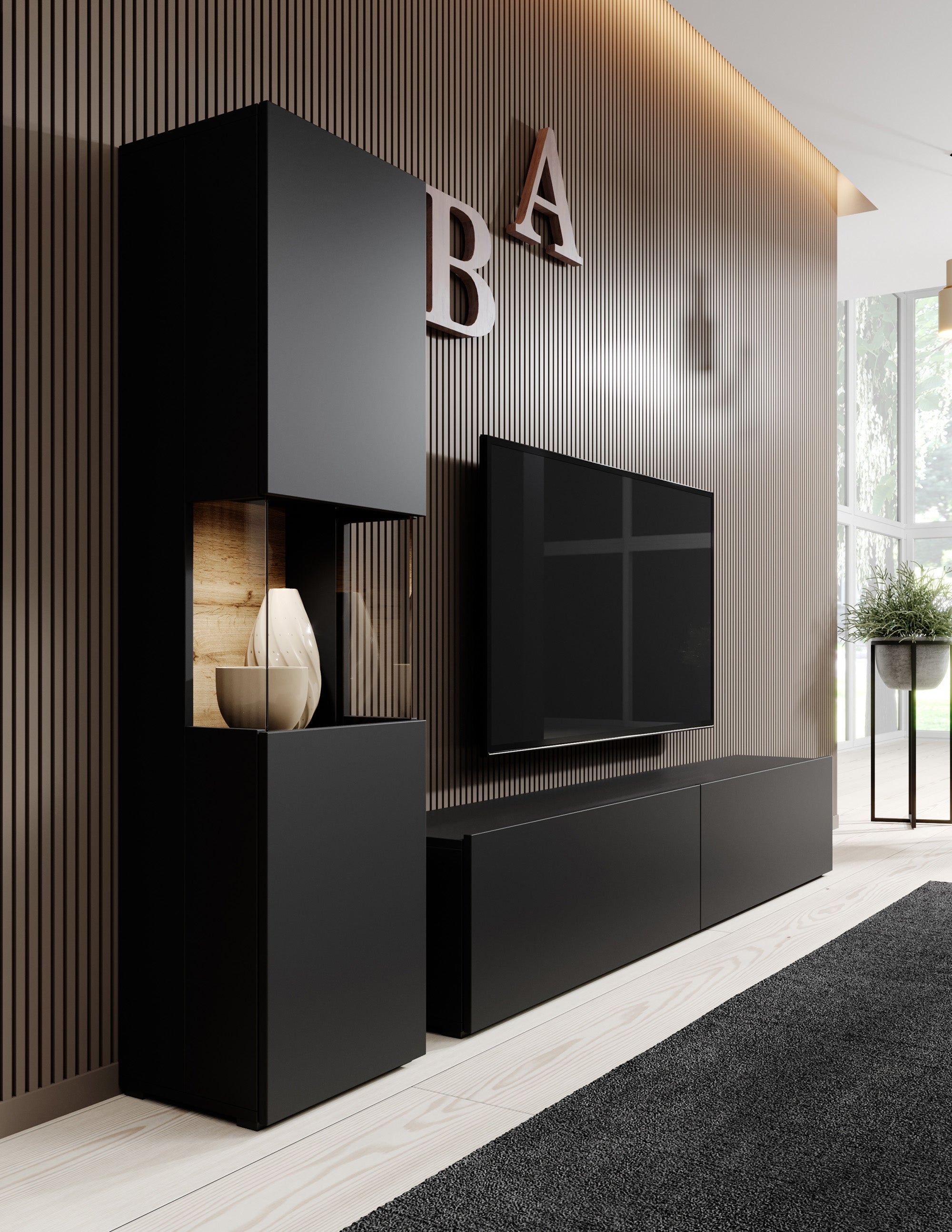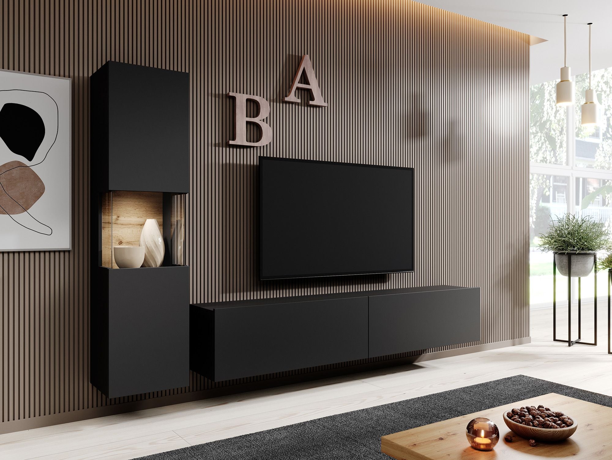 Meubella - Wandmeubel Asilento 1 - Mat zwart