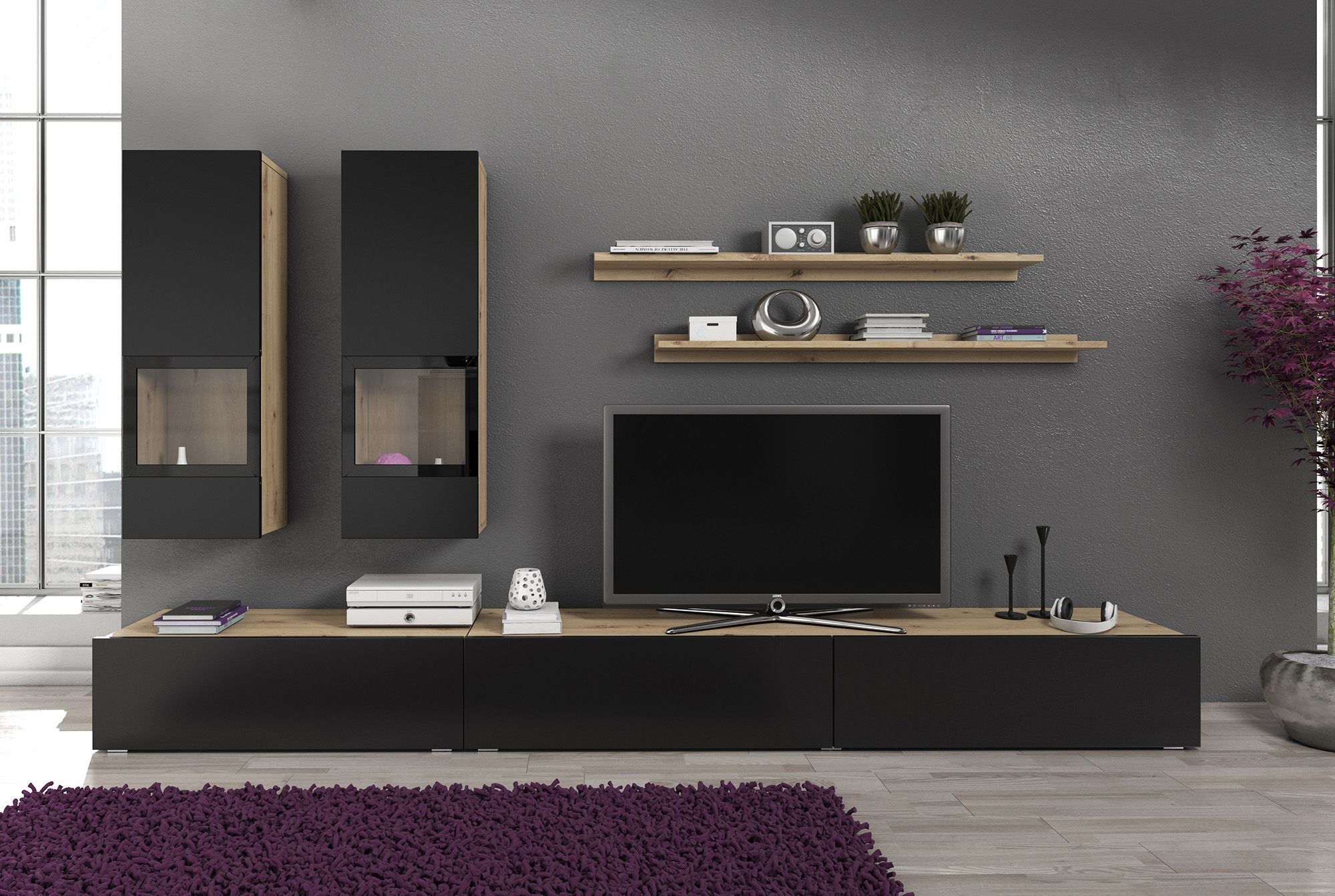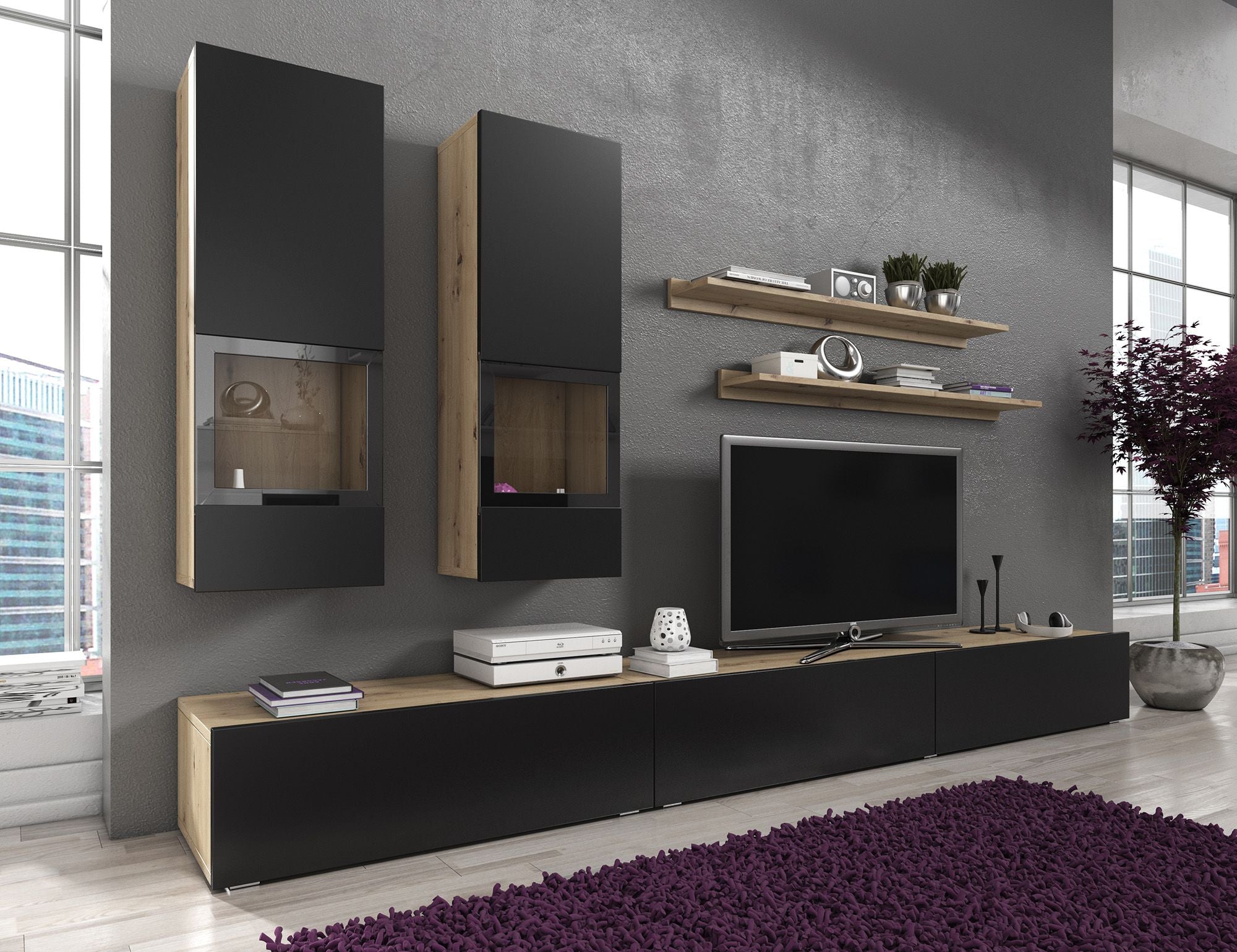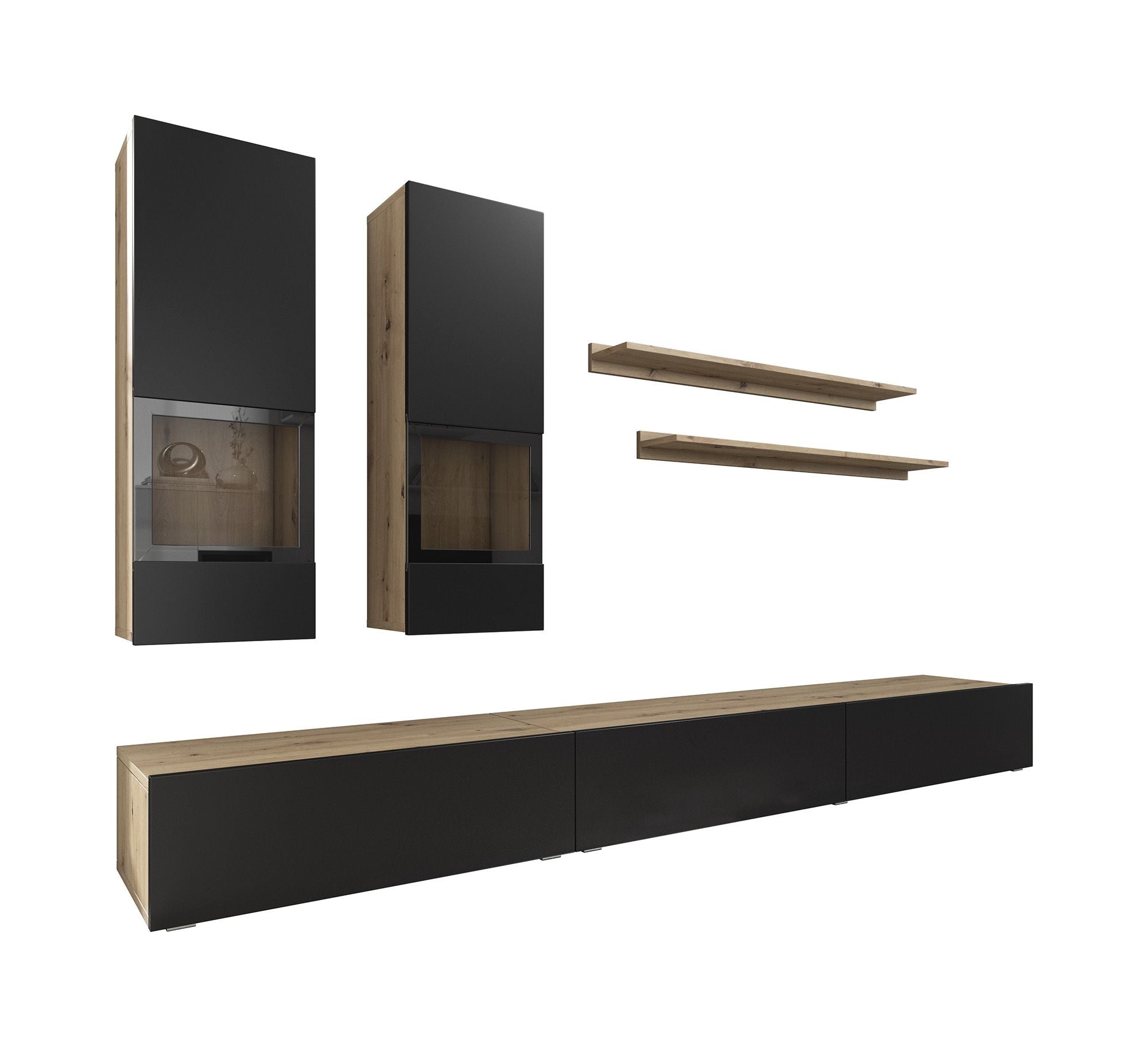Meubella - Wandmeubel Bolivar - Zwart - Eiken