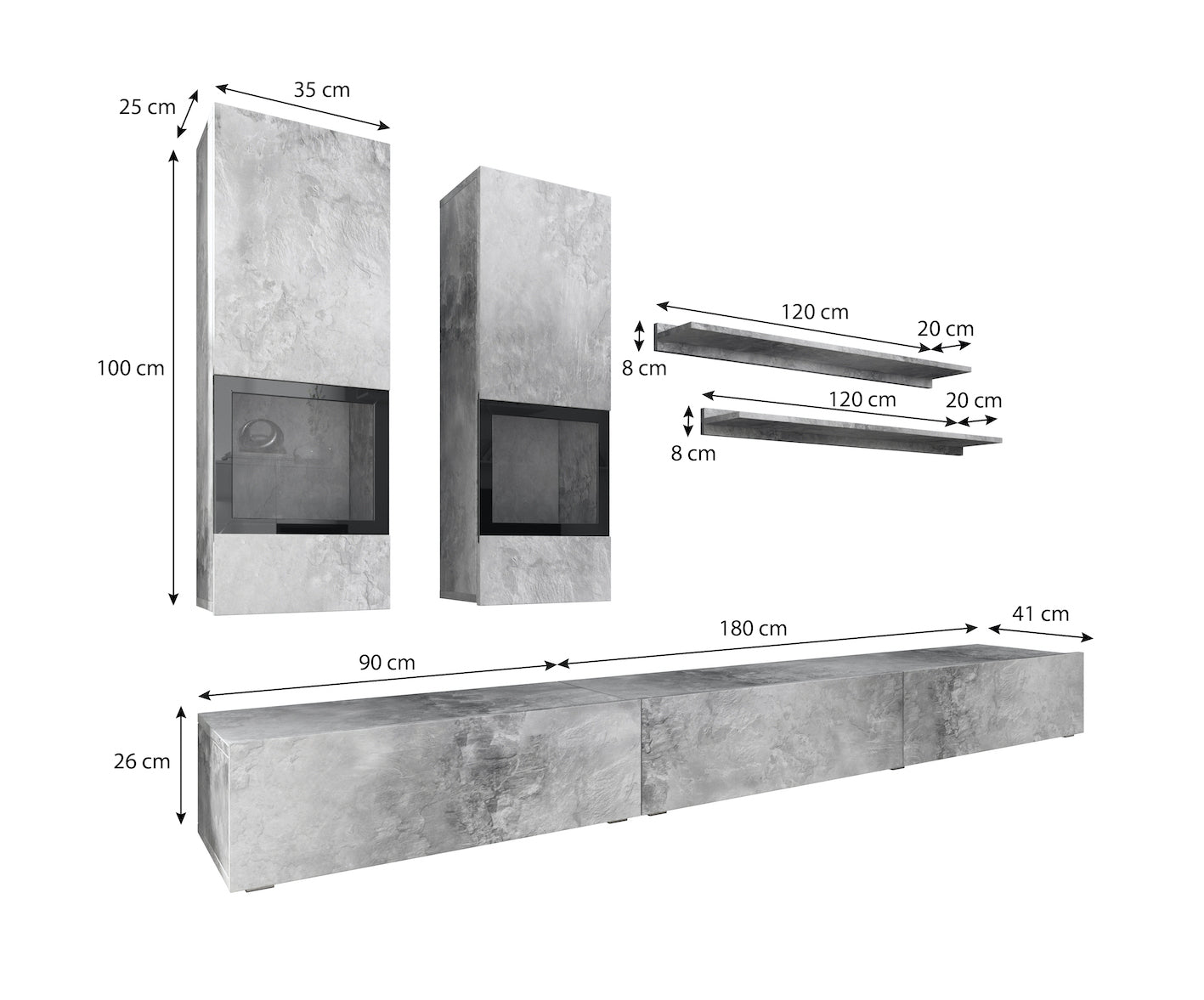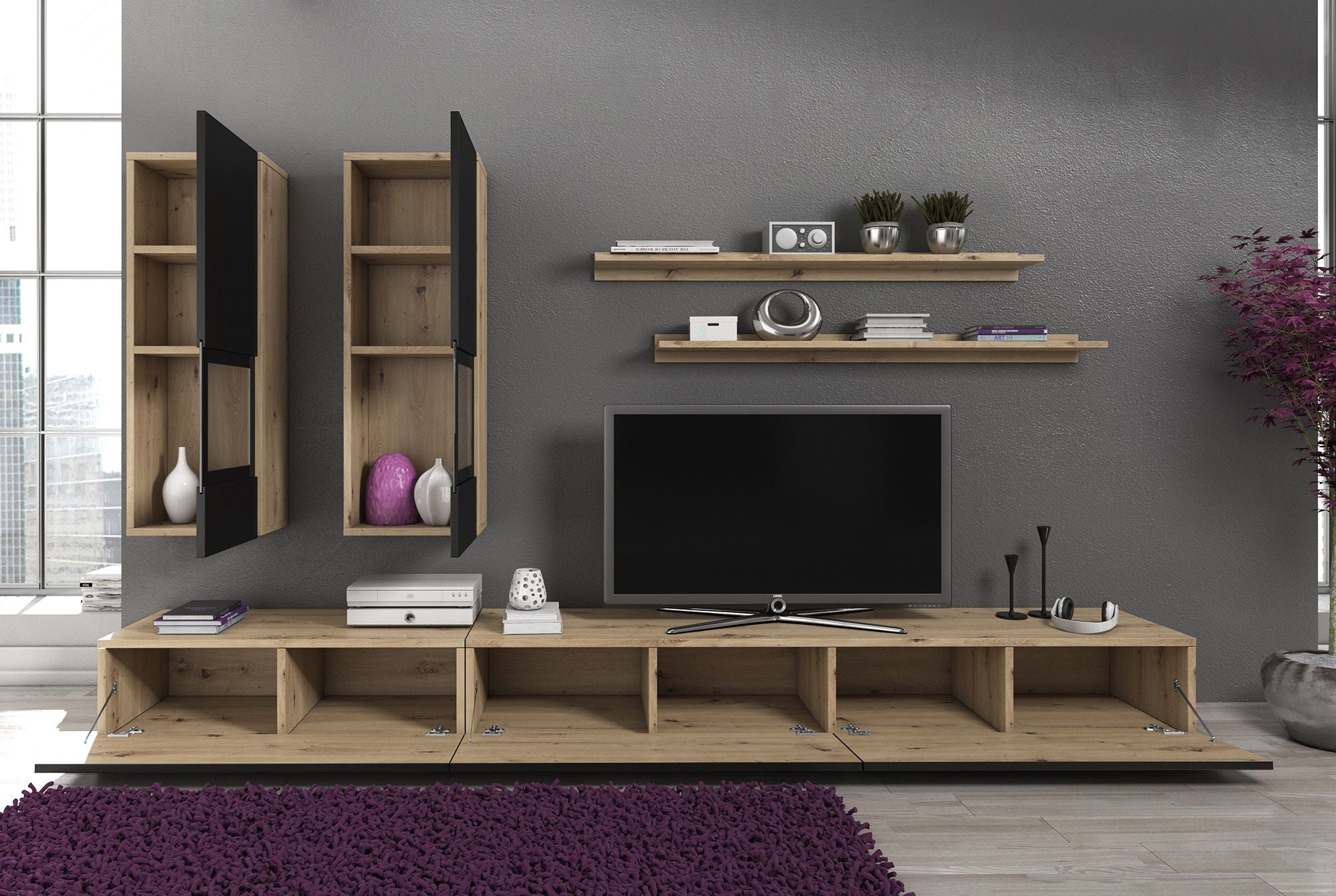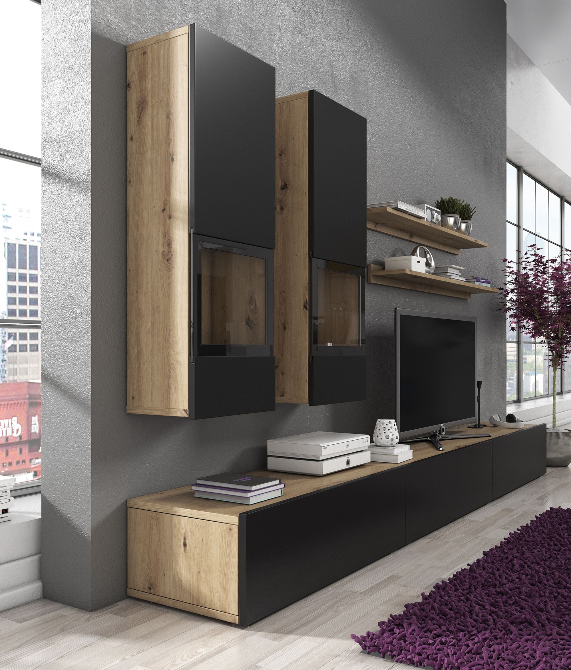 Meubella - Wandmeubel Bolivar - Zwart - Eiken