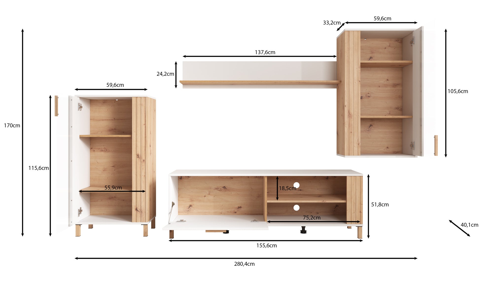 | Maat | H 52 x B 156 x D 40 cm |