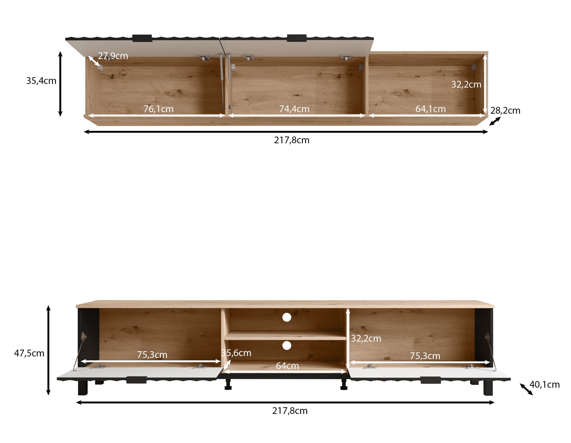 - TV-Meubel met 2 kleppen en 2 open vakken