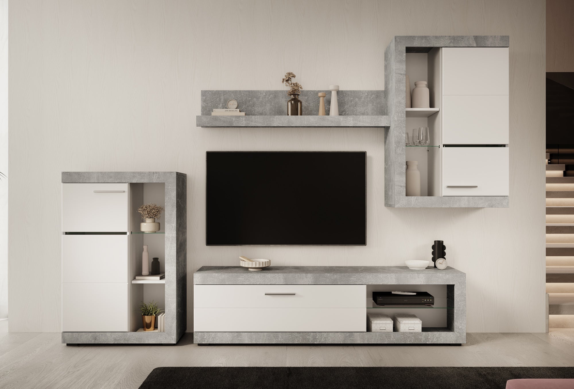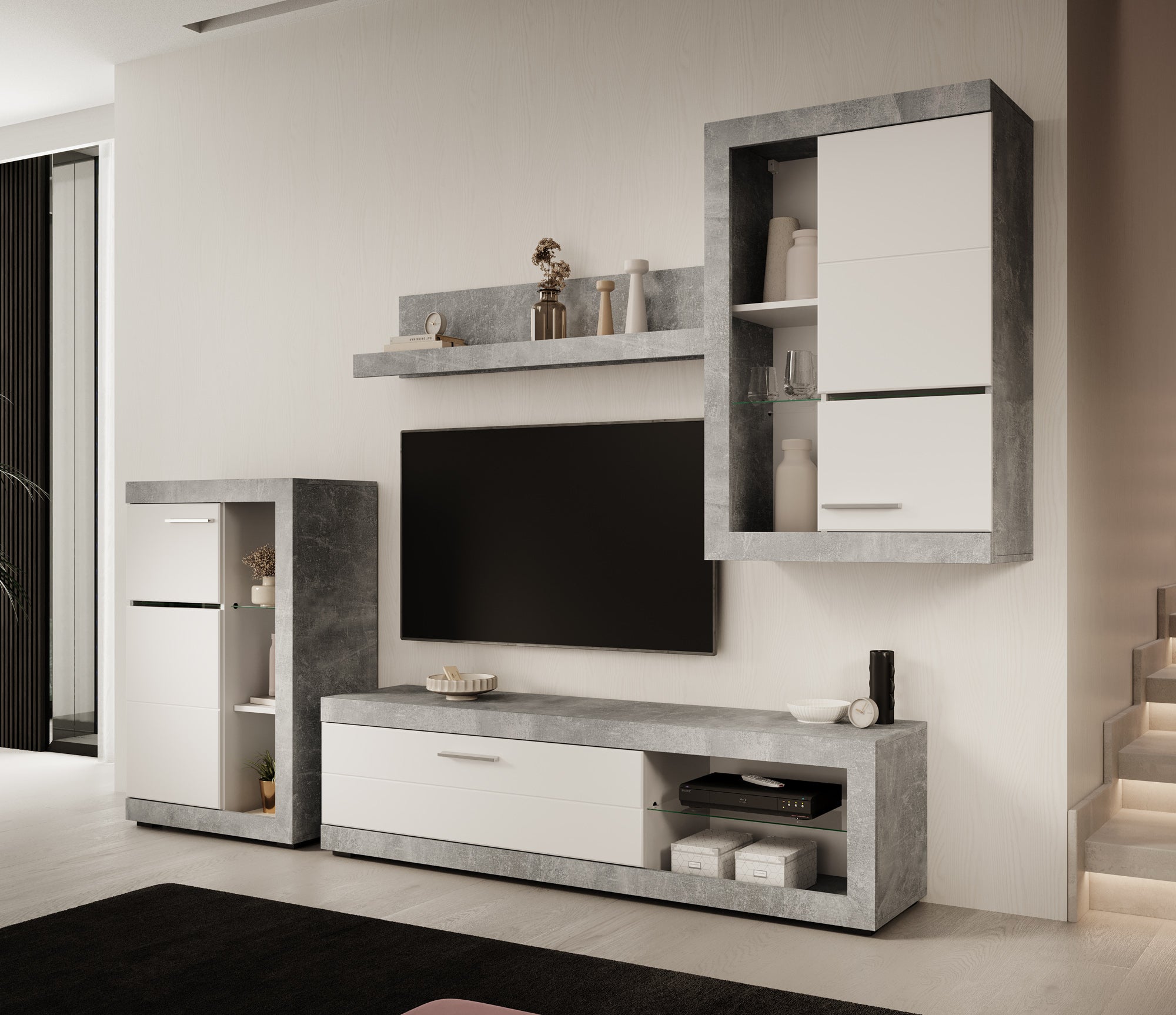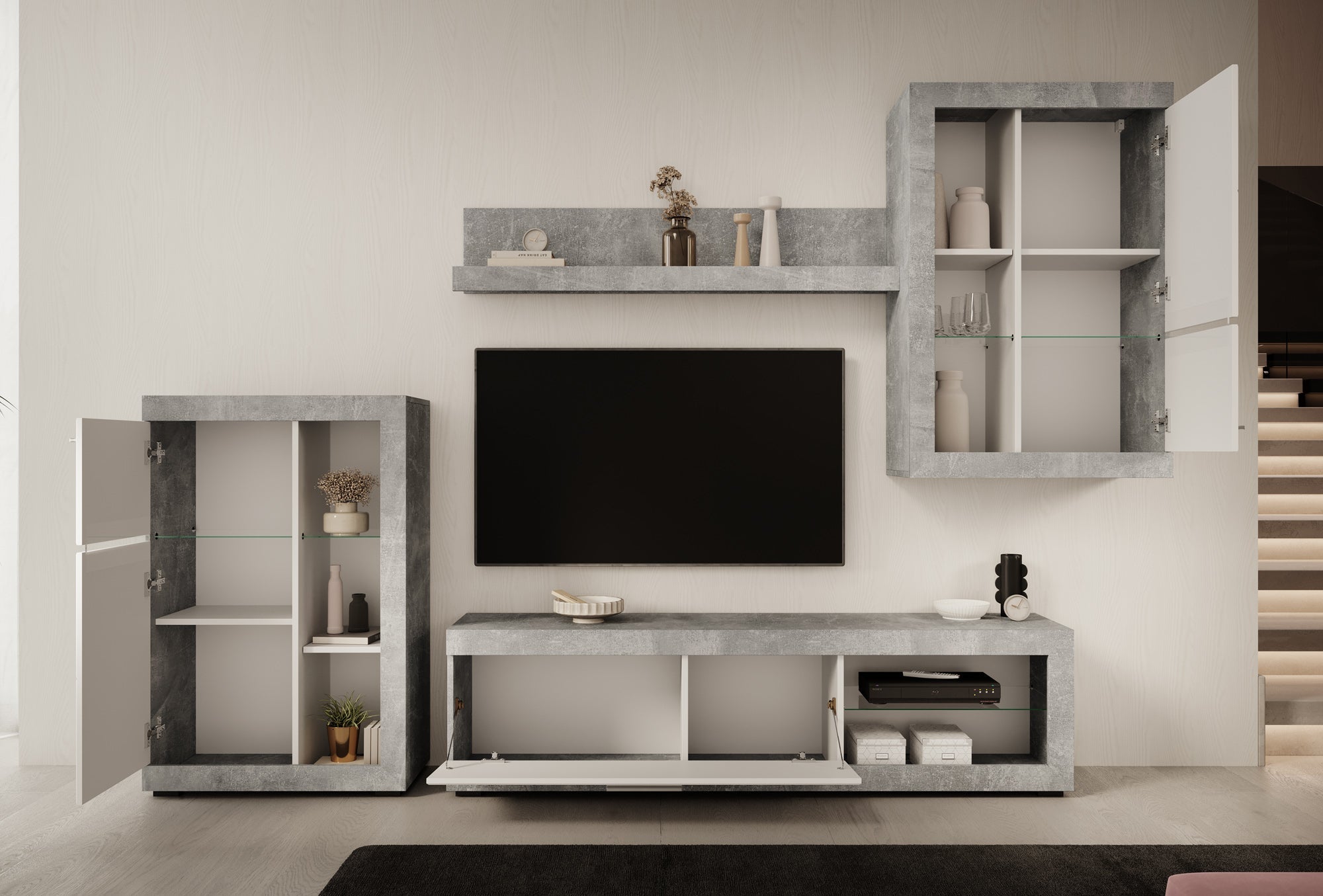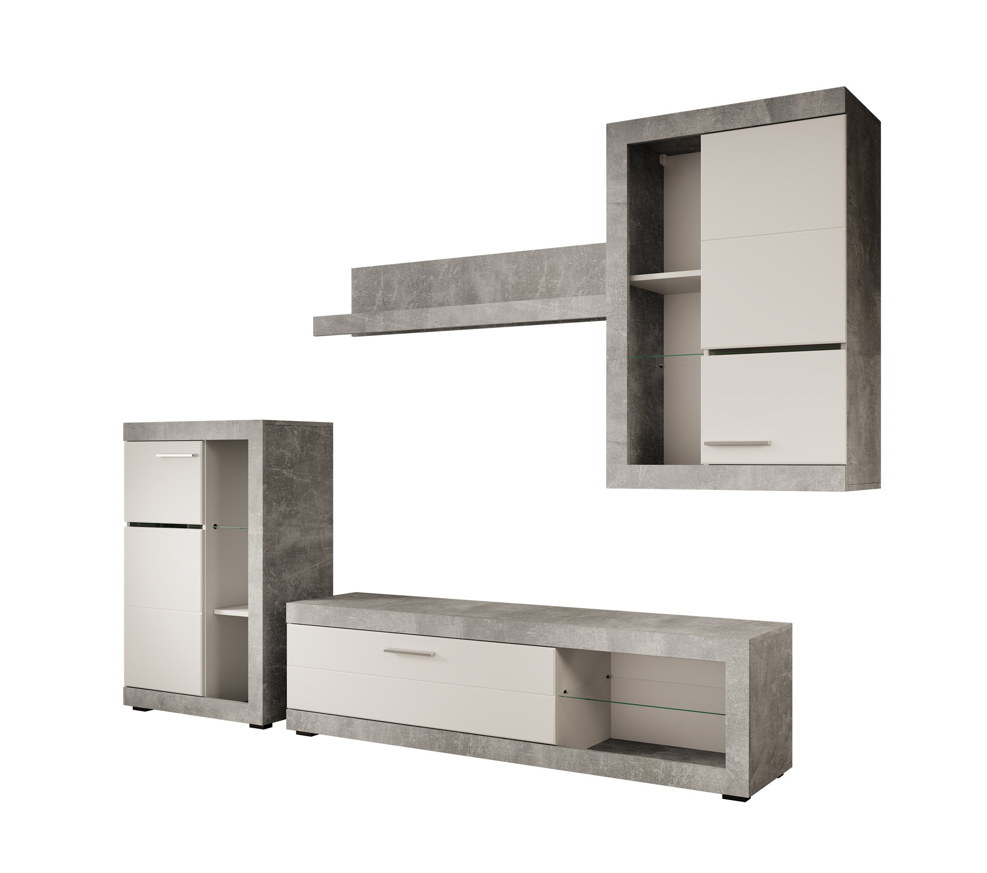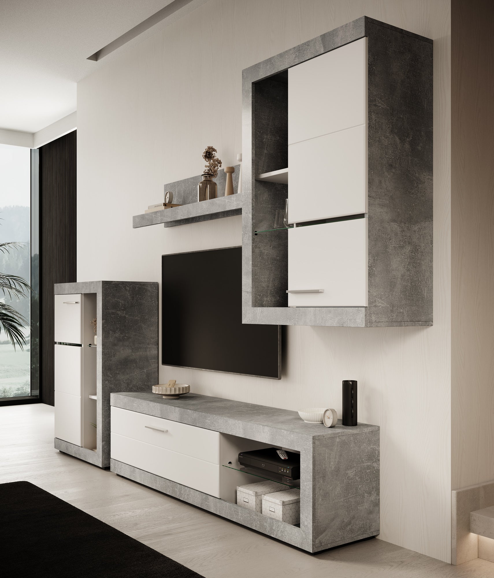 - TV-meubel, 2 opbergkasten en 1 wandplank