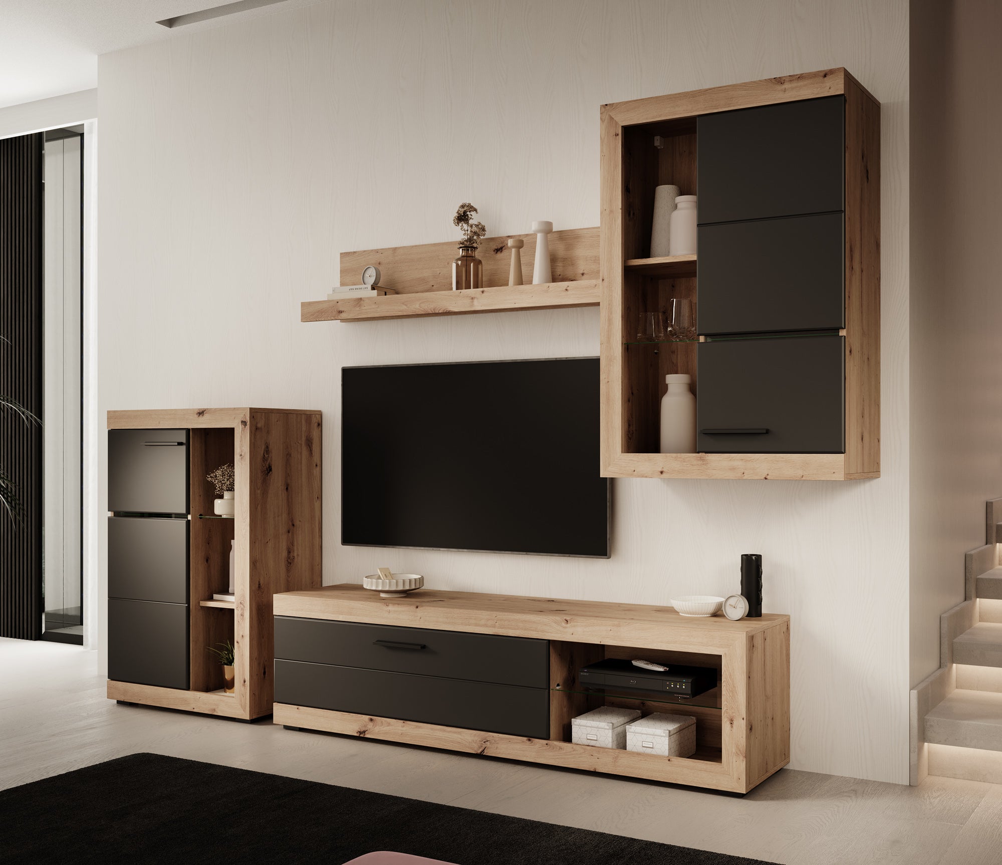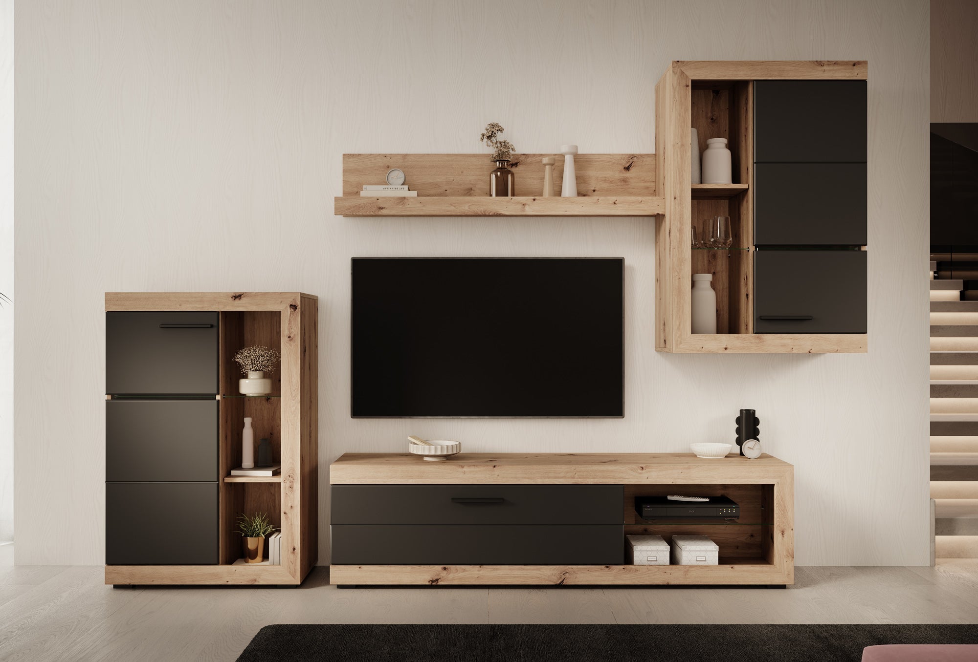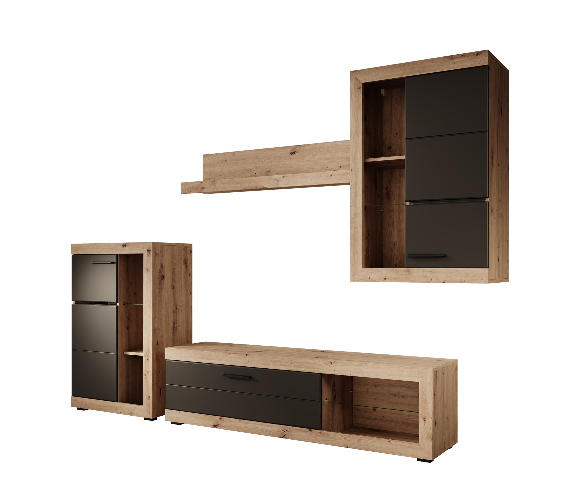- TV-meubel, 2 opbergkasten en 1 wandplank