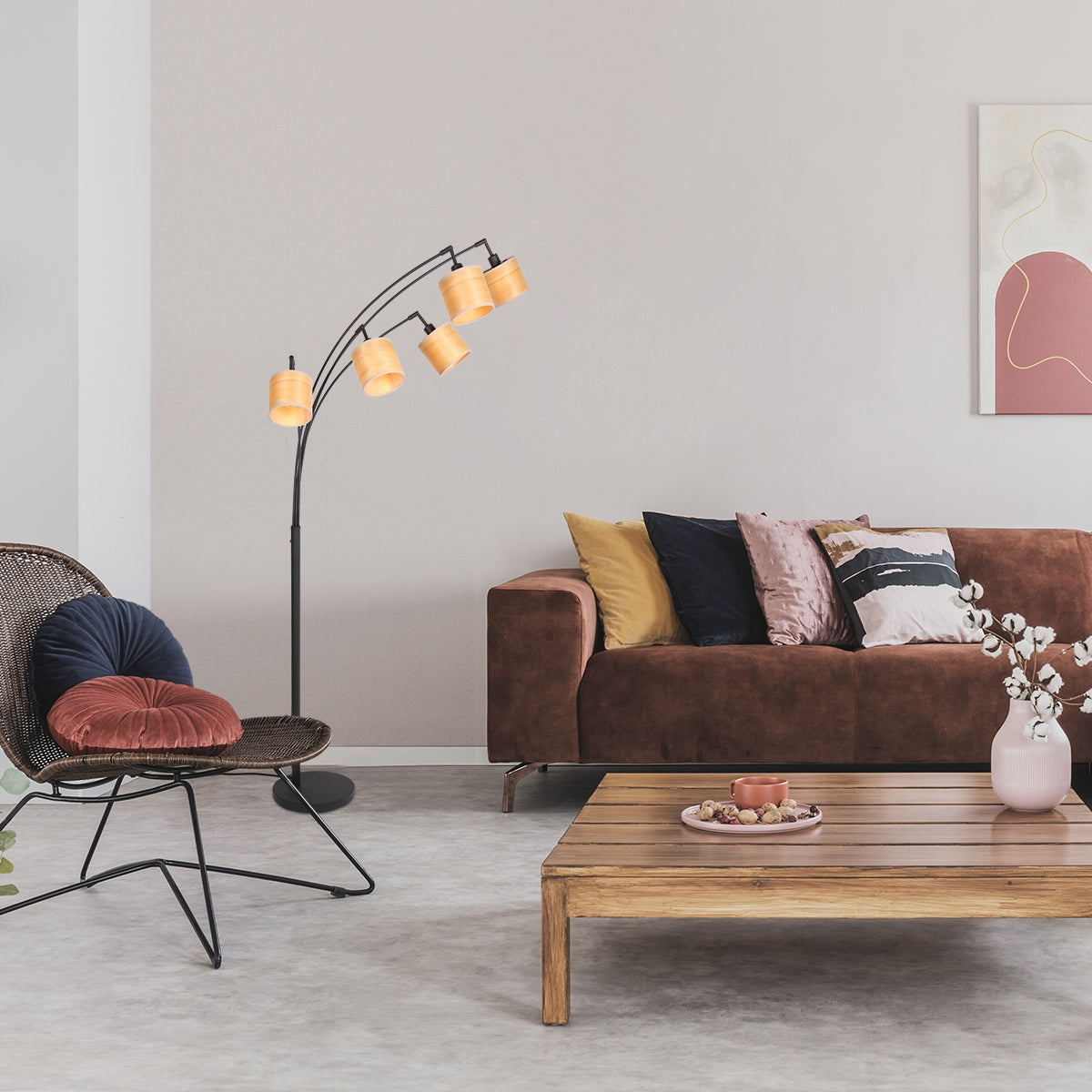 Mexlite - vloerlamp - Bambus - zwart - bamboe - booglamp - E14 -