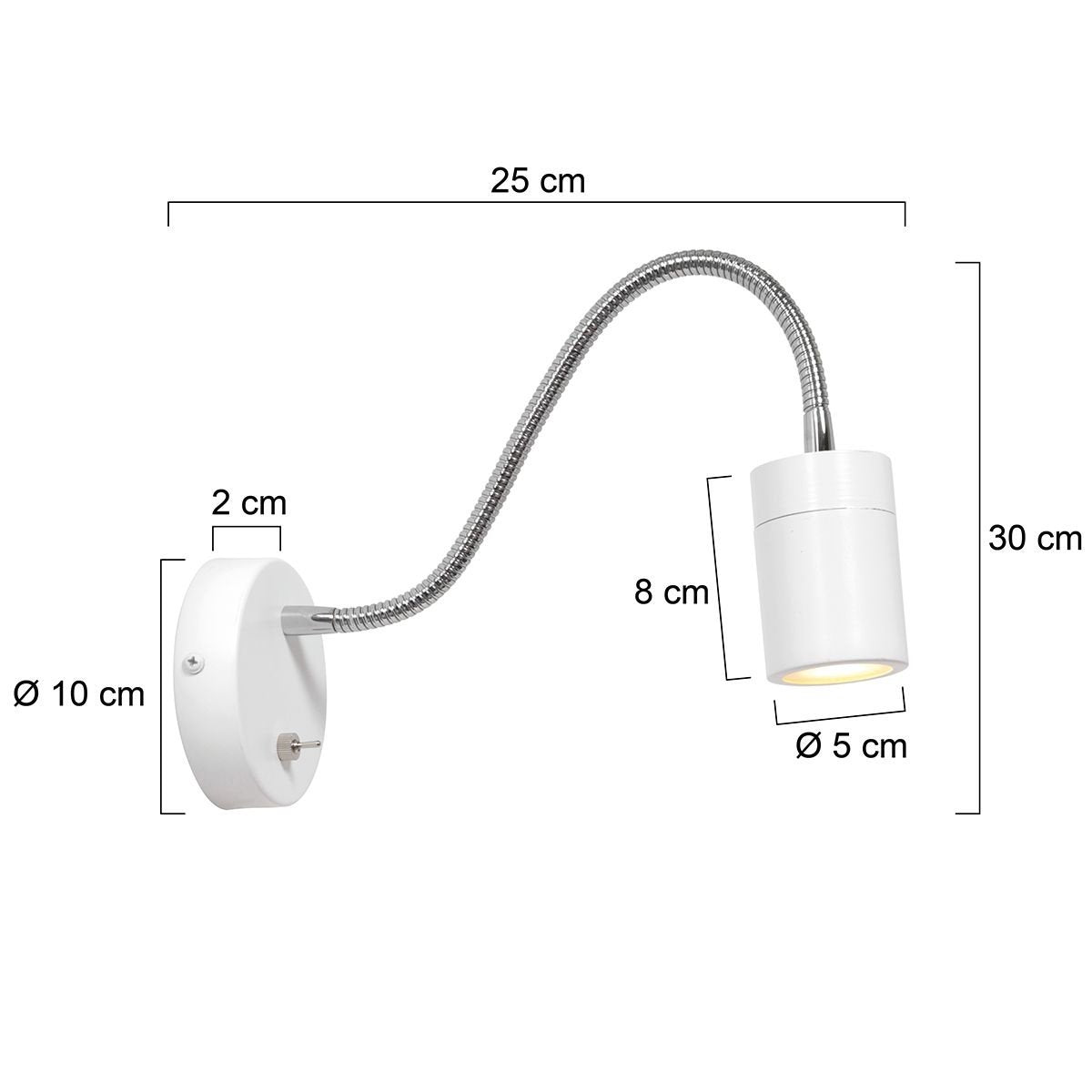 Mexlite - wandlamp - Upround - wit - metaal staal - bedlampje - GU10