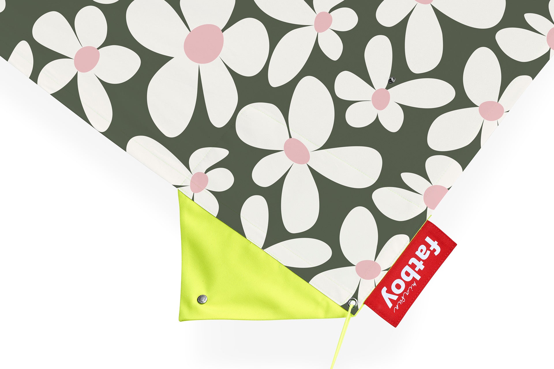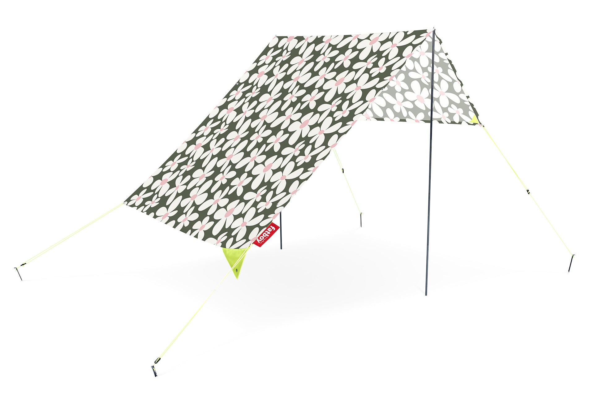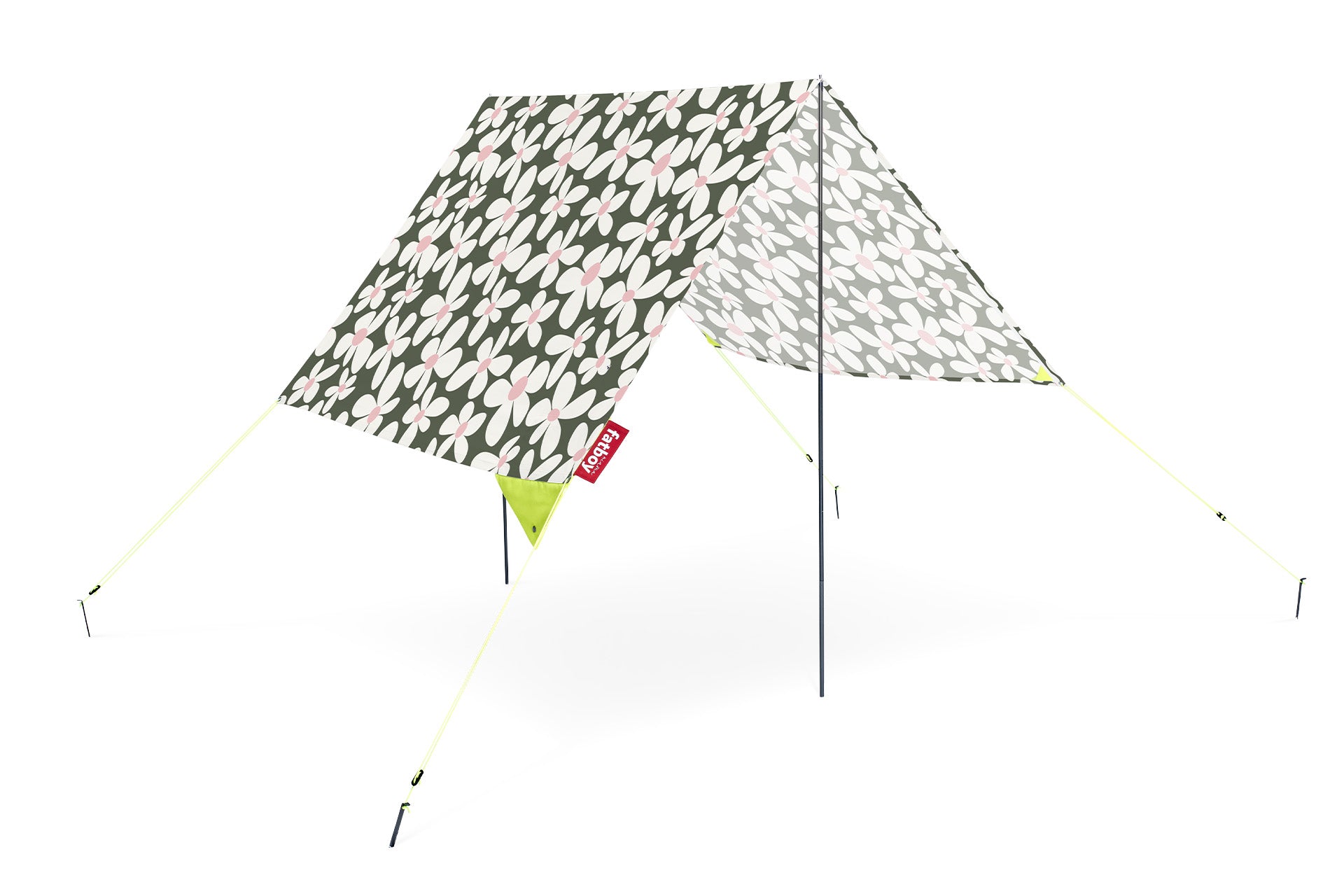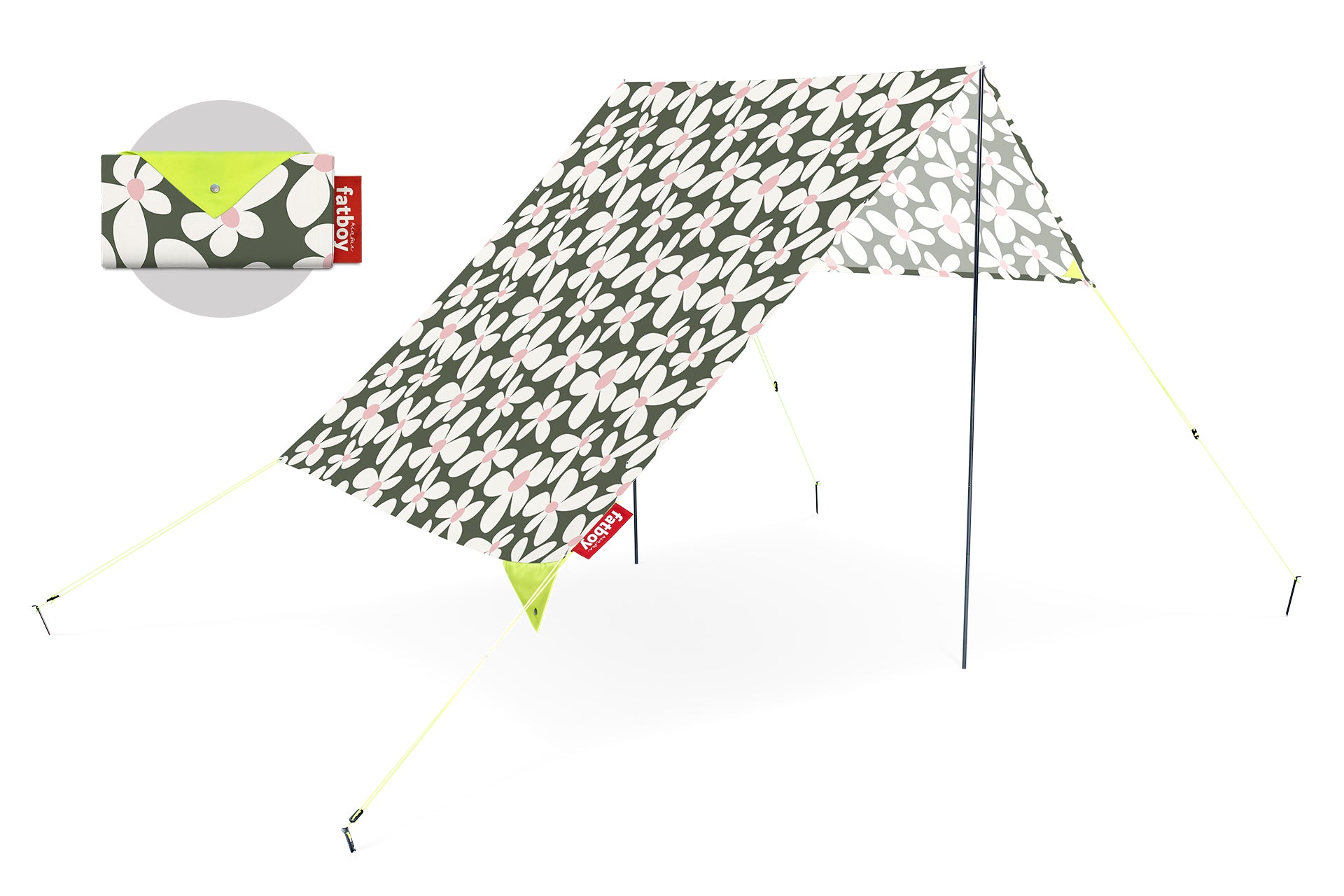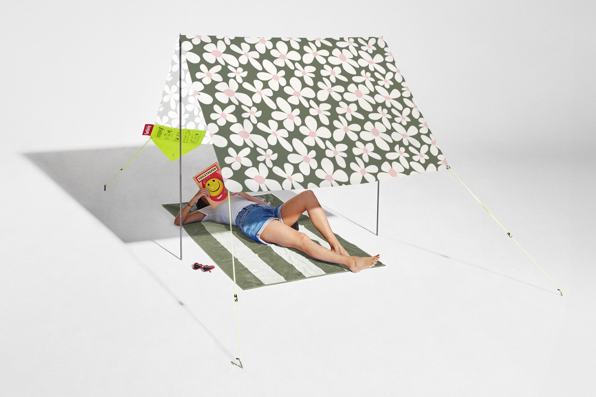 - Je eigen schaduw to go: Uitklapbare aluminium stokken. Een katoenen doek dat je beschermt tegen de zon. En dat een lekker briesje doorlaat.