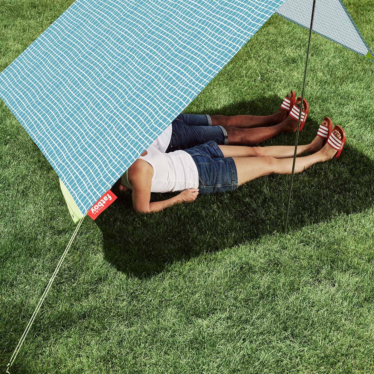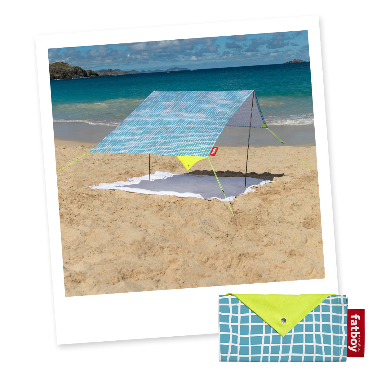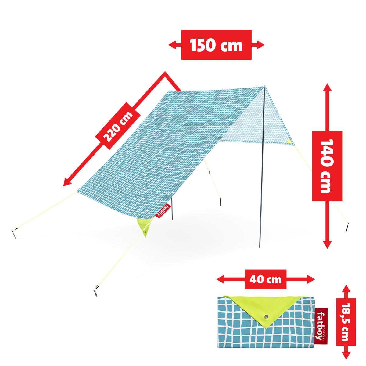 - Je eigen schaduw to go: Uitklapbare aluminium stokken. Een katoenen doek dat je beschermt tegen de zon. En dat een lekker briesje doorlaat.