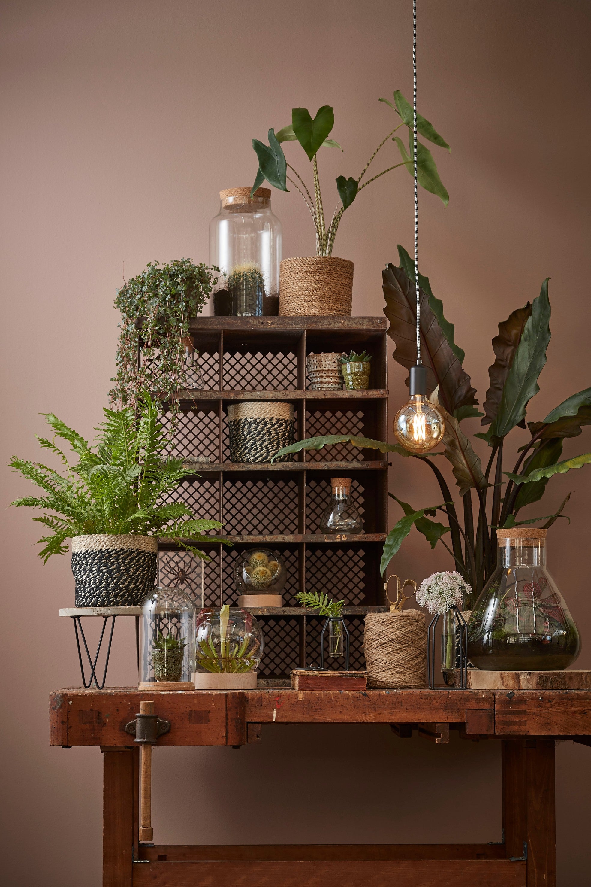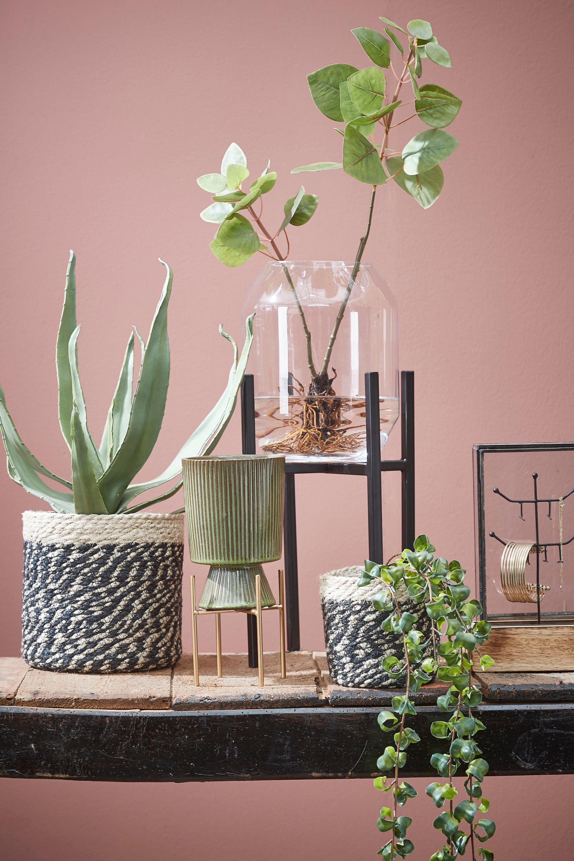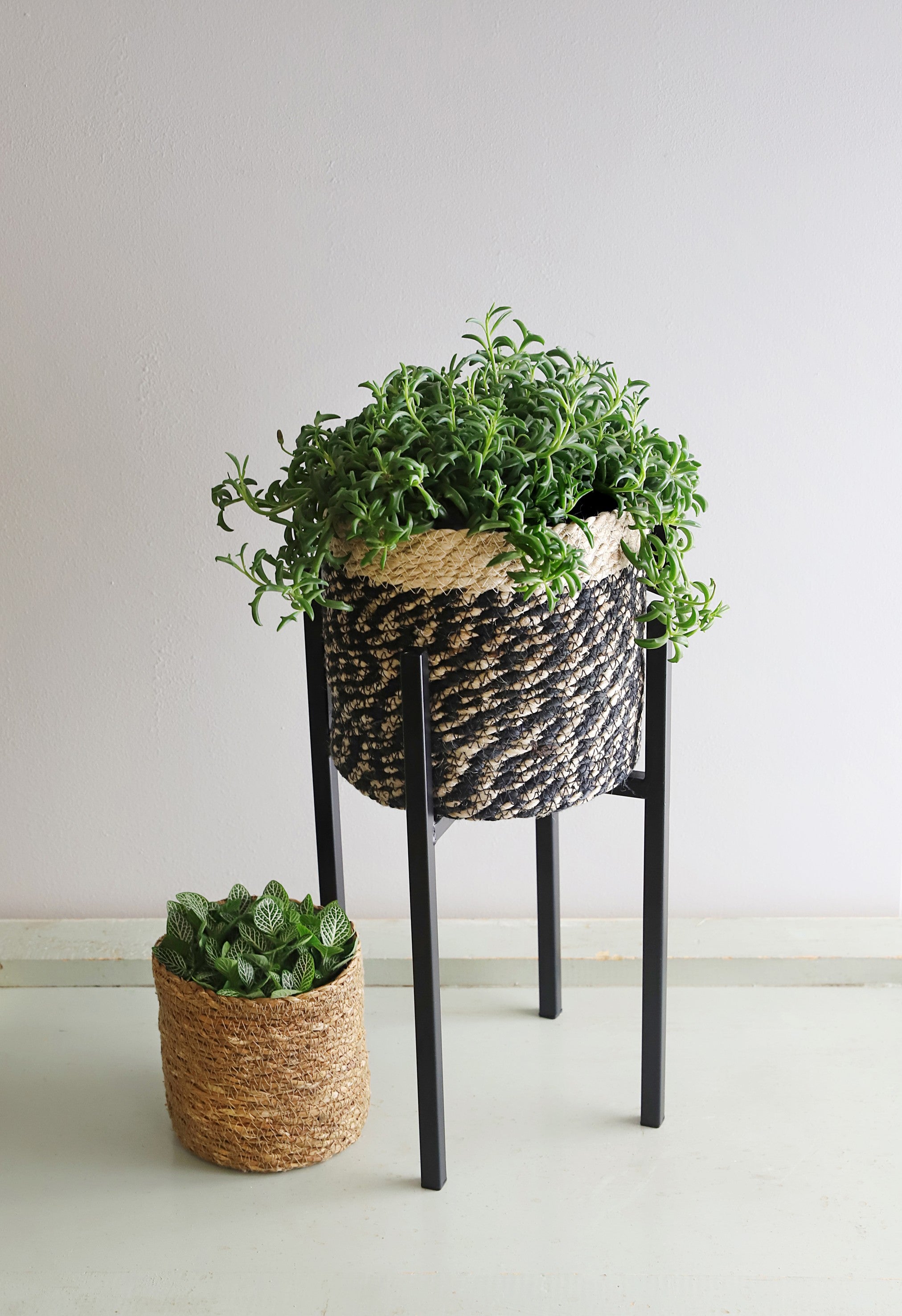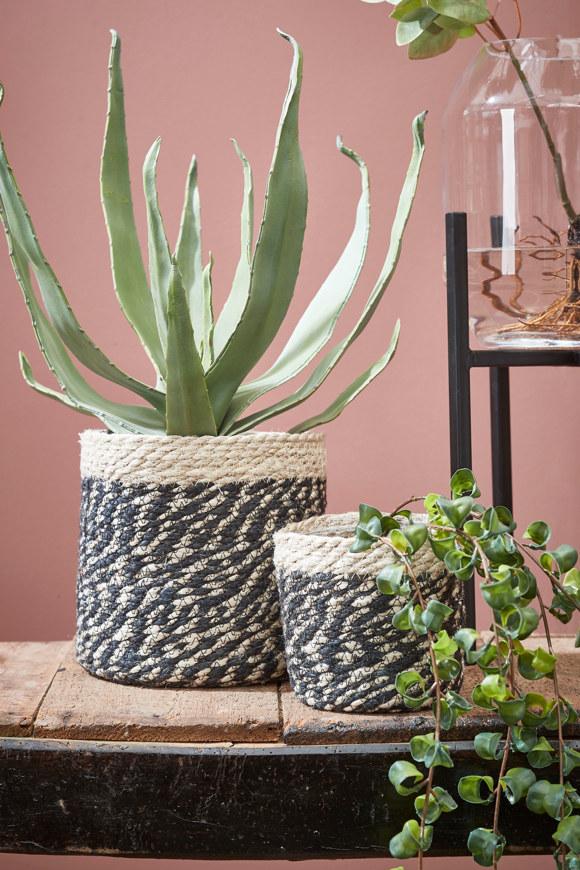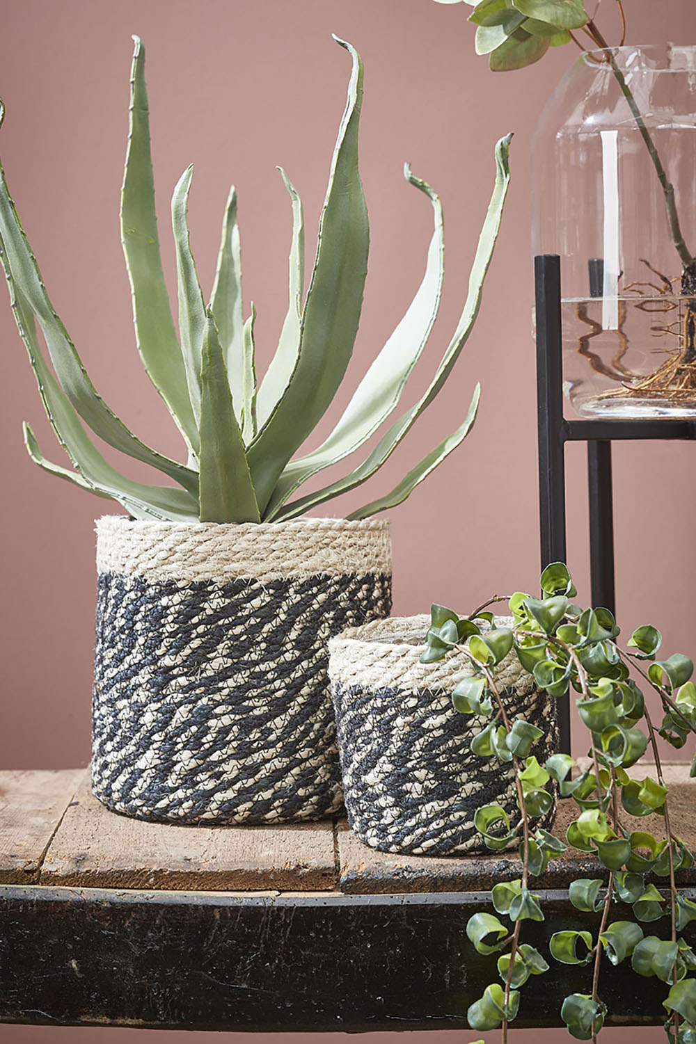 - Set van drie jute plantenmanden