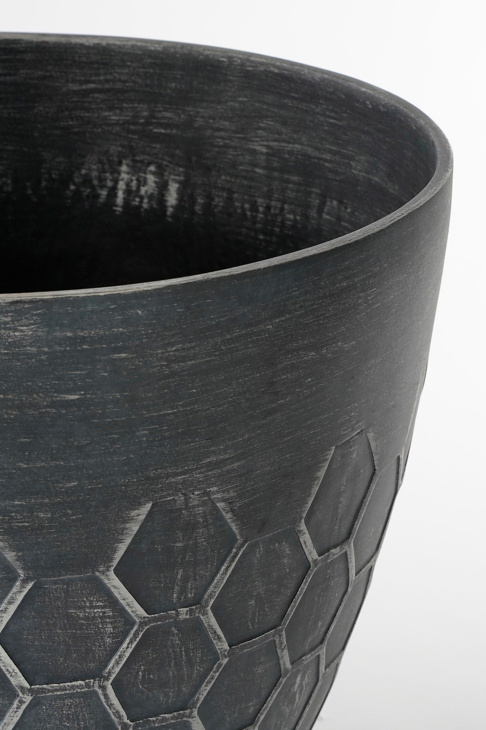 Deze Bravo bloempot van Mica Decorations heeft alle kenmerken van een stenen bloempot, op één ding na: het gewicht. De pot is namelijk gemaakt van lichtgewicht kunststof. De zwarte pot voor buiten valt op door de stijlvolle, honingraat structuur. He…