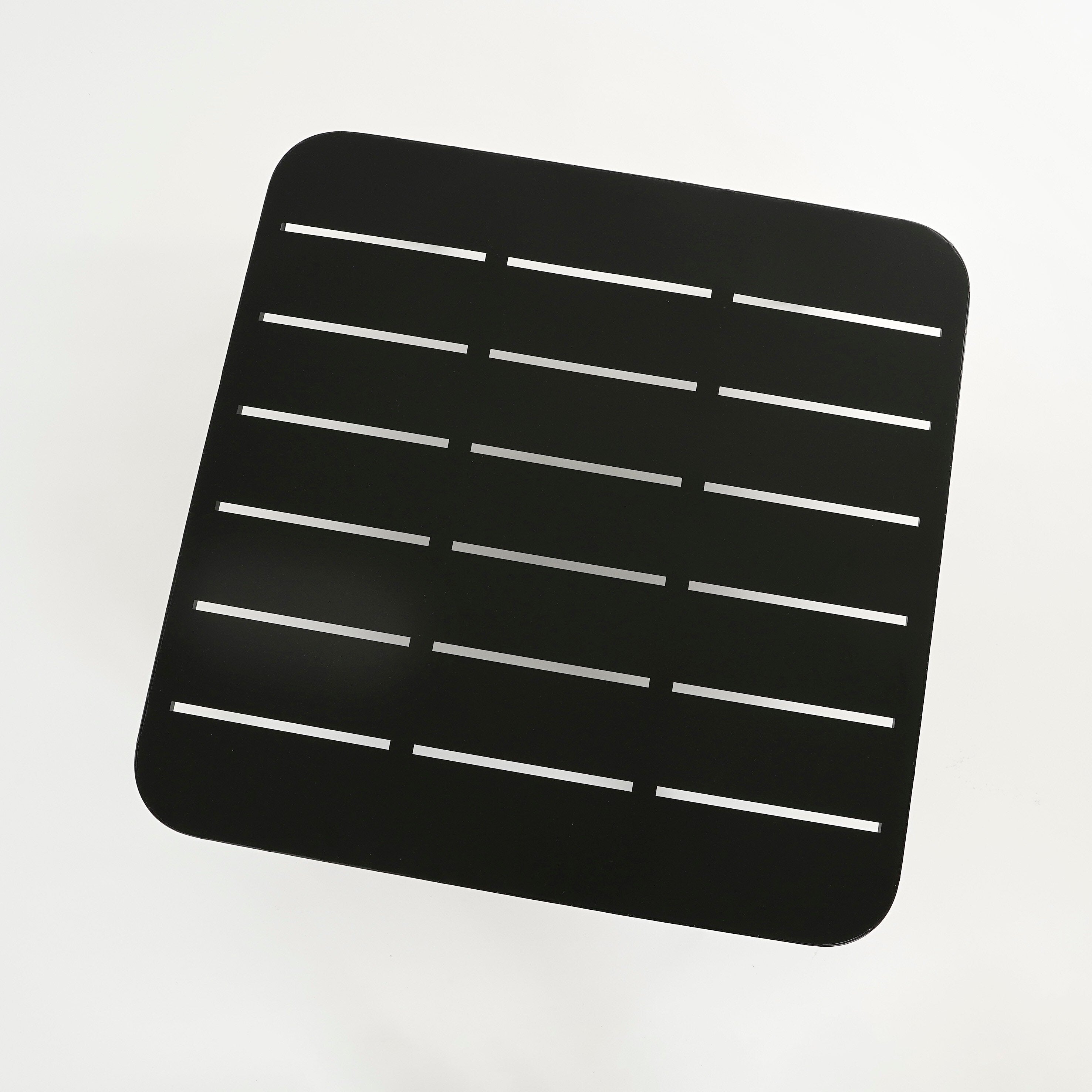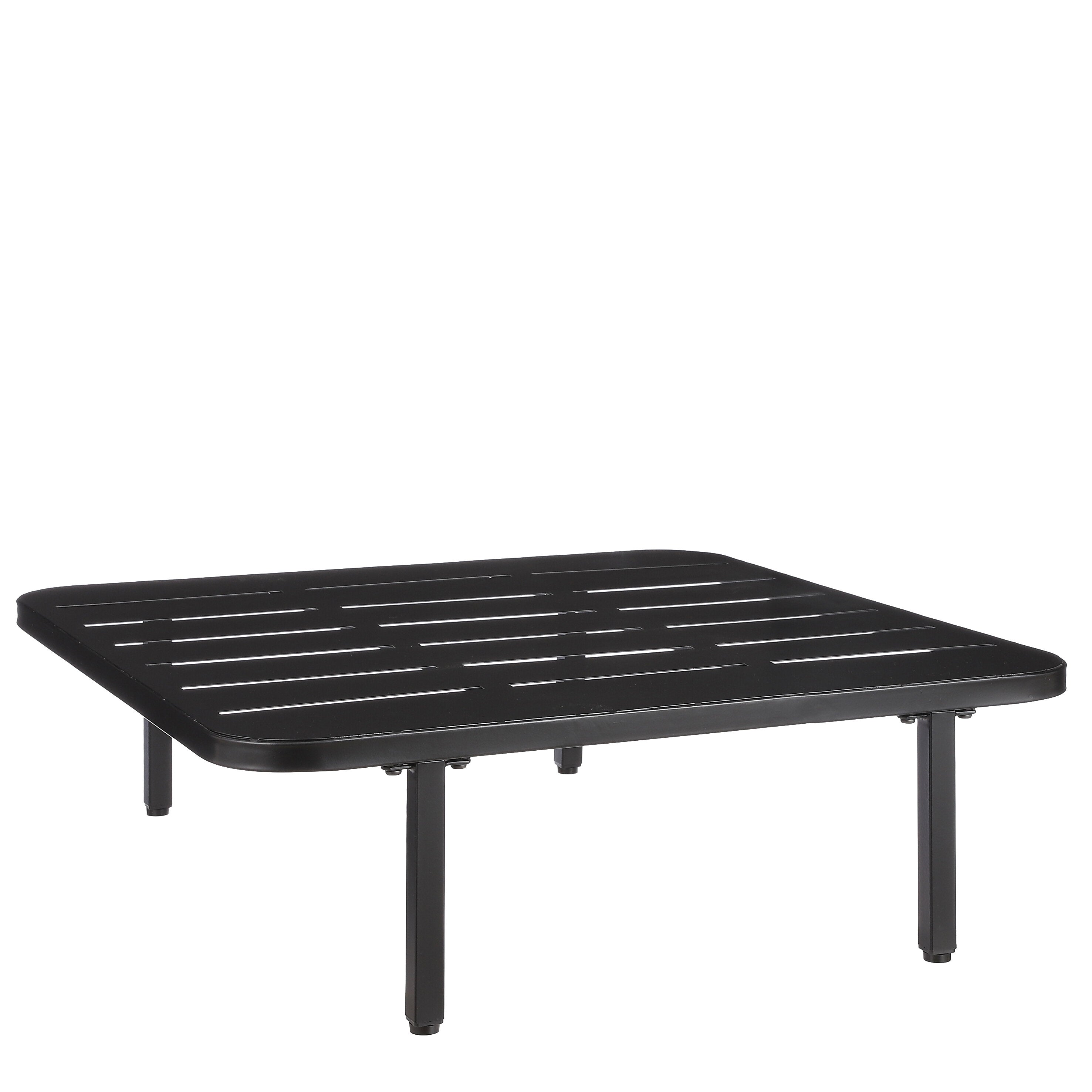 Stijlvolle hocker gemaakt van zwart metaal om je tuin een modern tintje te geven. De zwarte loungetafel voor buiten is 80 cm lang, 80 cm breed en 23 cm hoog.