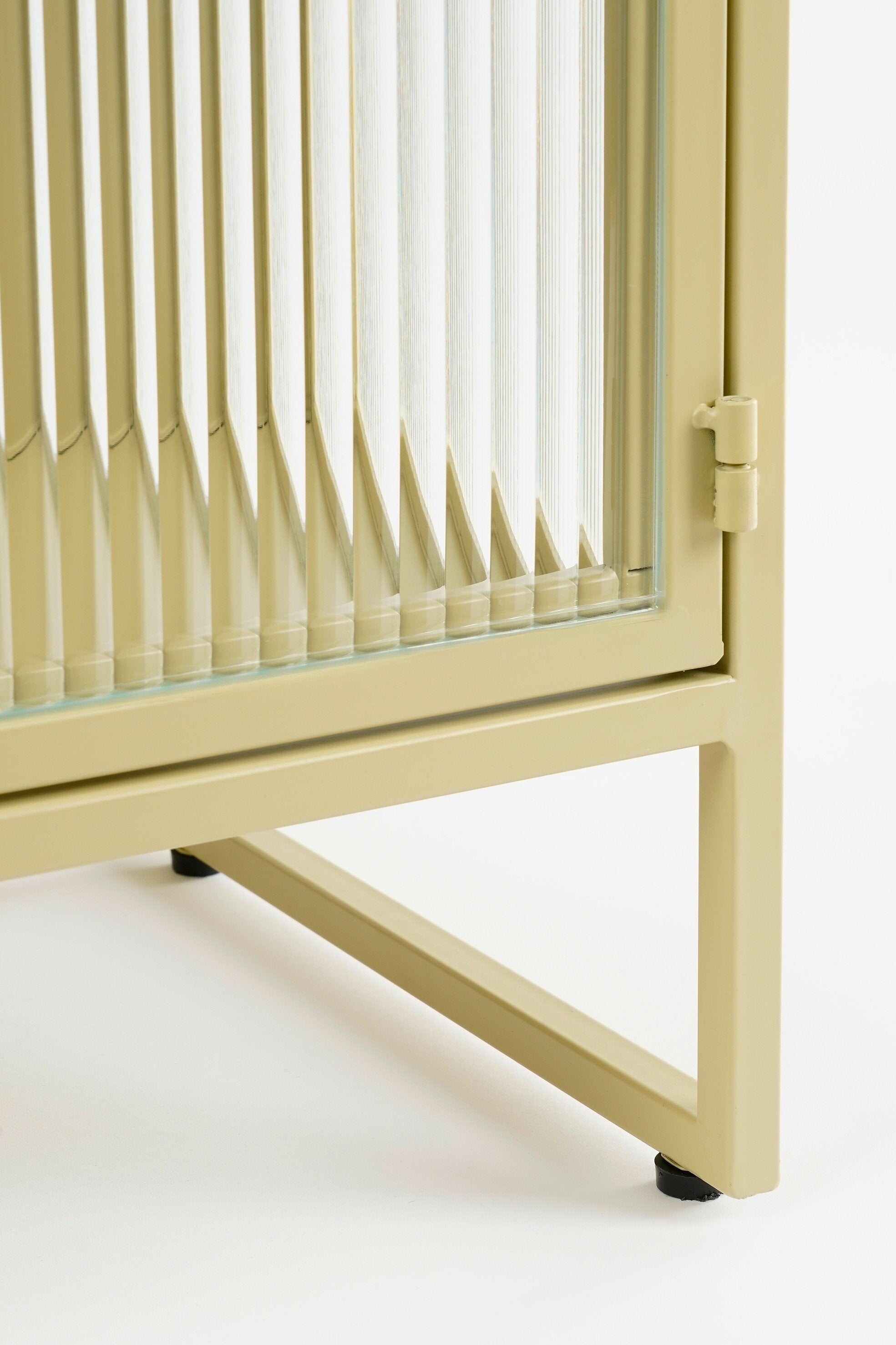 - Compact kastje met een trendy geribbeld glazen paneeldeur voor een moderne uitstraling